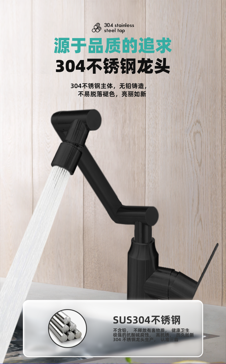 304 Stainless Steel Universal Hot and Cold Folding Basin with Rotatable Faucet for Washing Hands, Washing Hair, and Bathroom Use