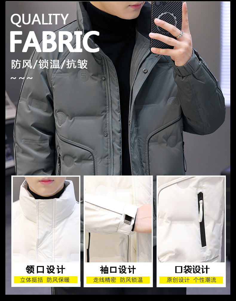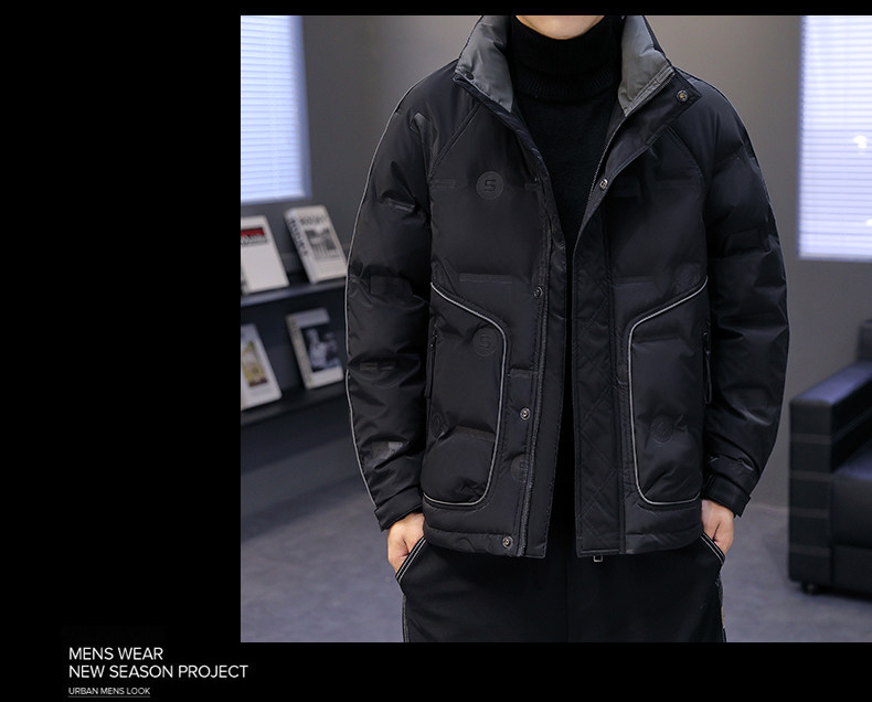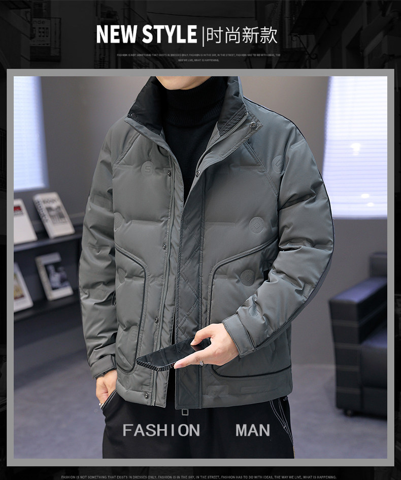 Down jacket 2025 new men's winter trendy brand trend coat short thickened white duck down stand collar top clothes
