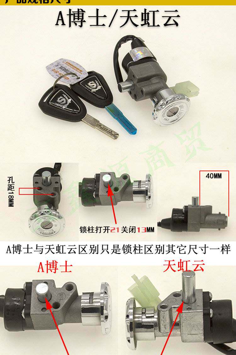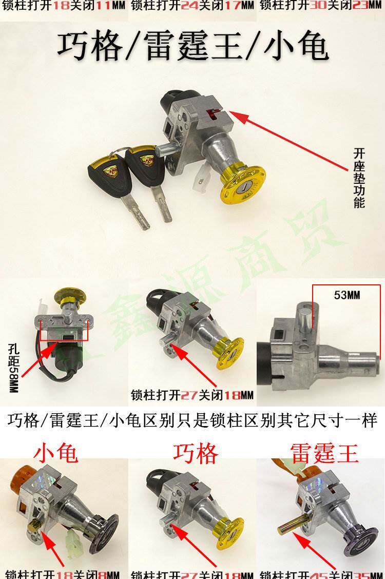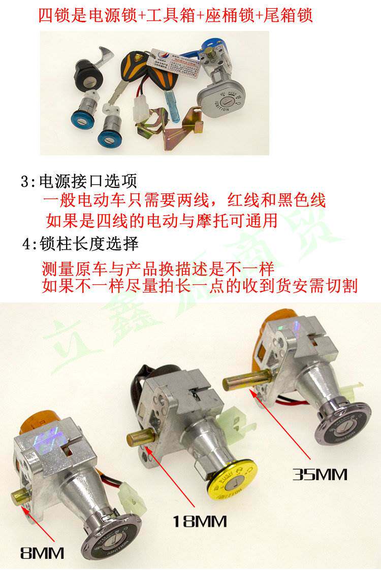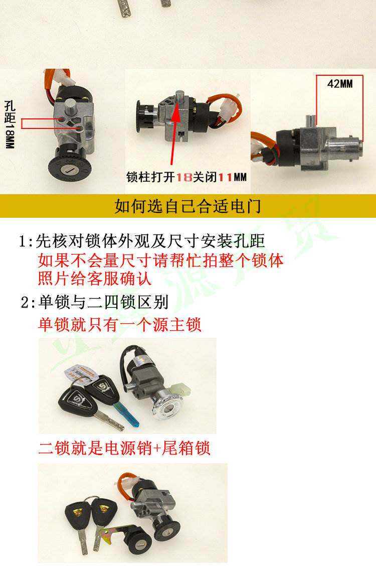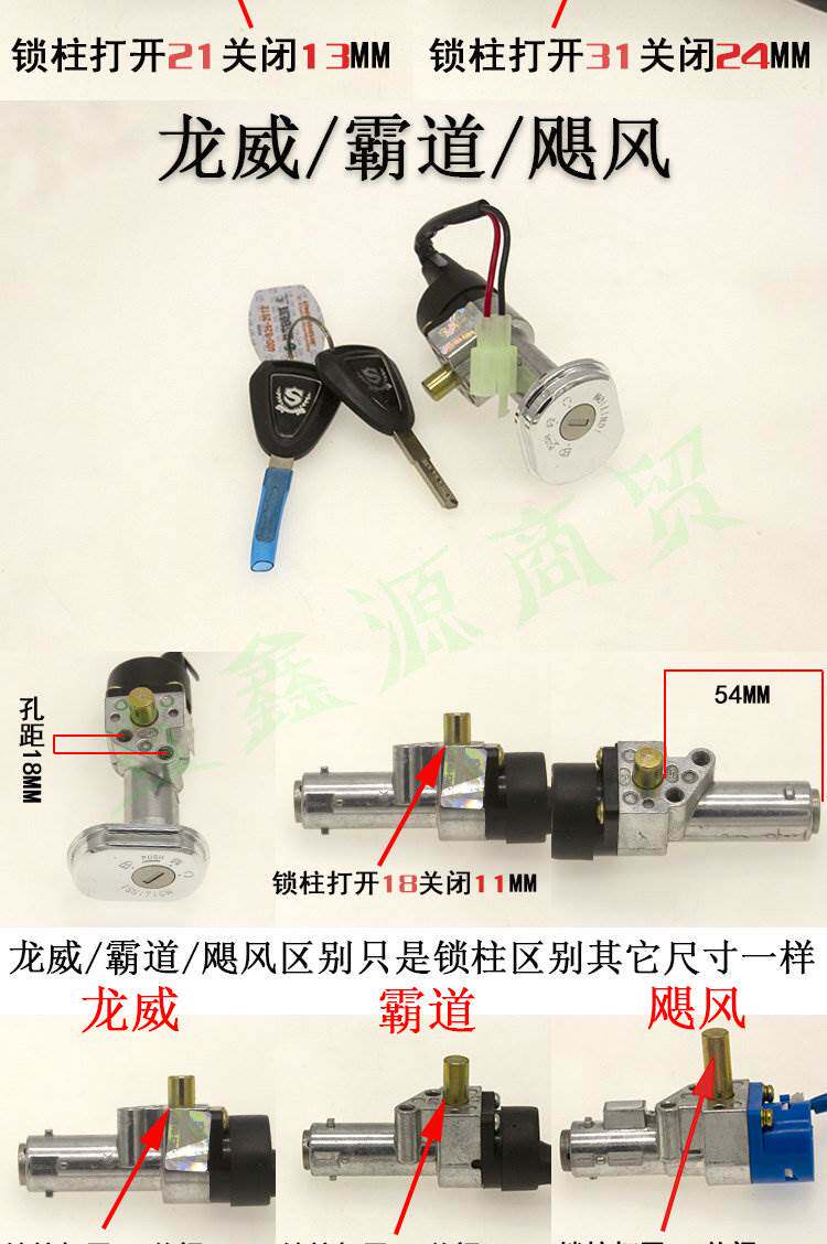 Tailing knife electric vehicle accessories collection power lock key switch assembly electric door lock three-in-one Luyuan Emma