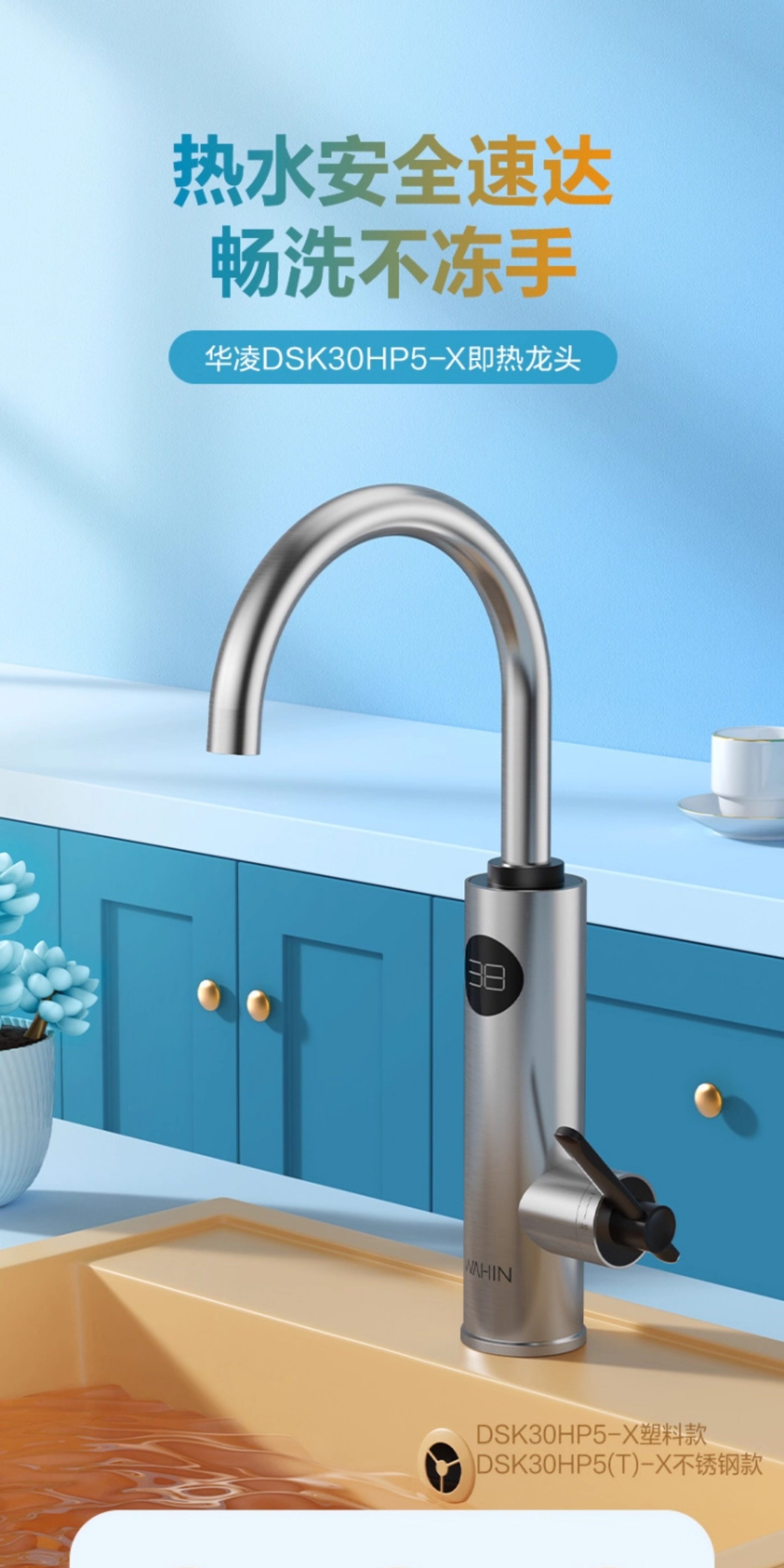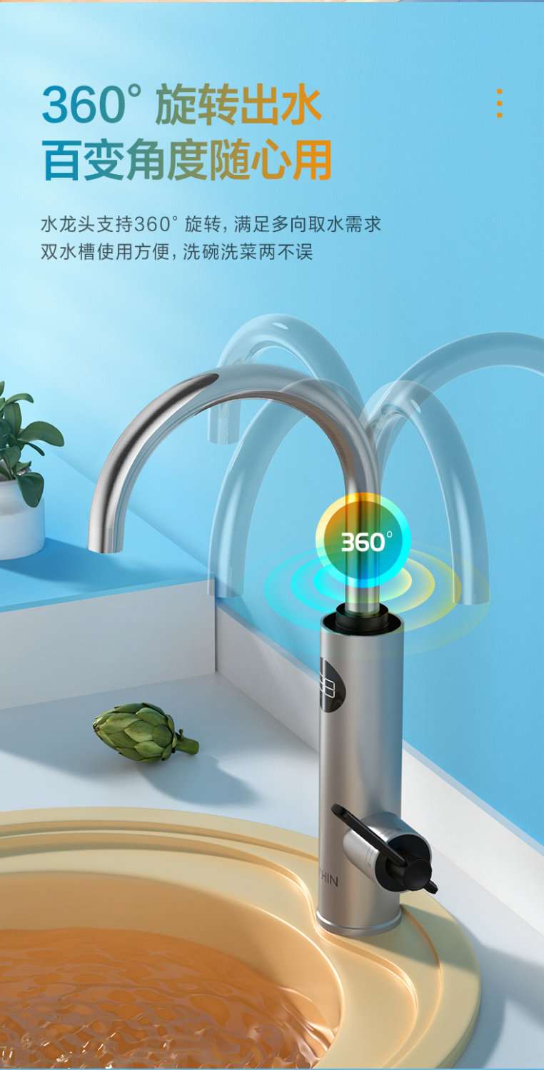 Midea Hualing Electric Hot Water Faucet, Fast Heating Instant Hot Water Heater for Kitchen and Bathroom, Hot and Cold Electric Water Heater
