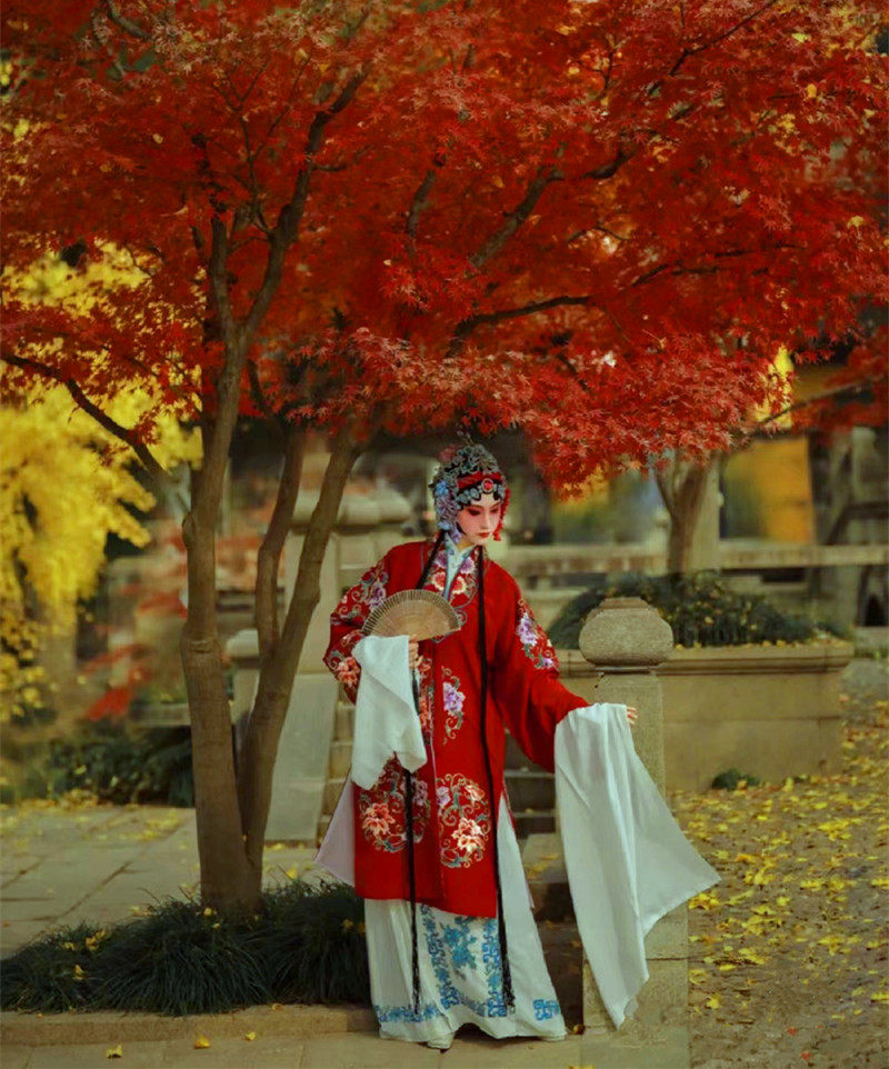 Peking Opera Costume for Solo Performance, High-End Wrinkled Fabric Embroidered Dress for the Role of Flower Girl, Ancient Costume for the Role of the Empress Drunk with Wine