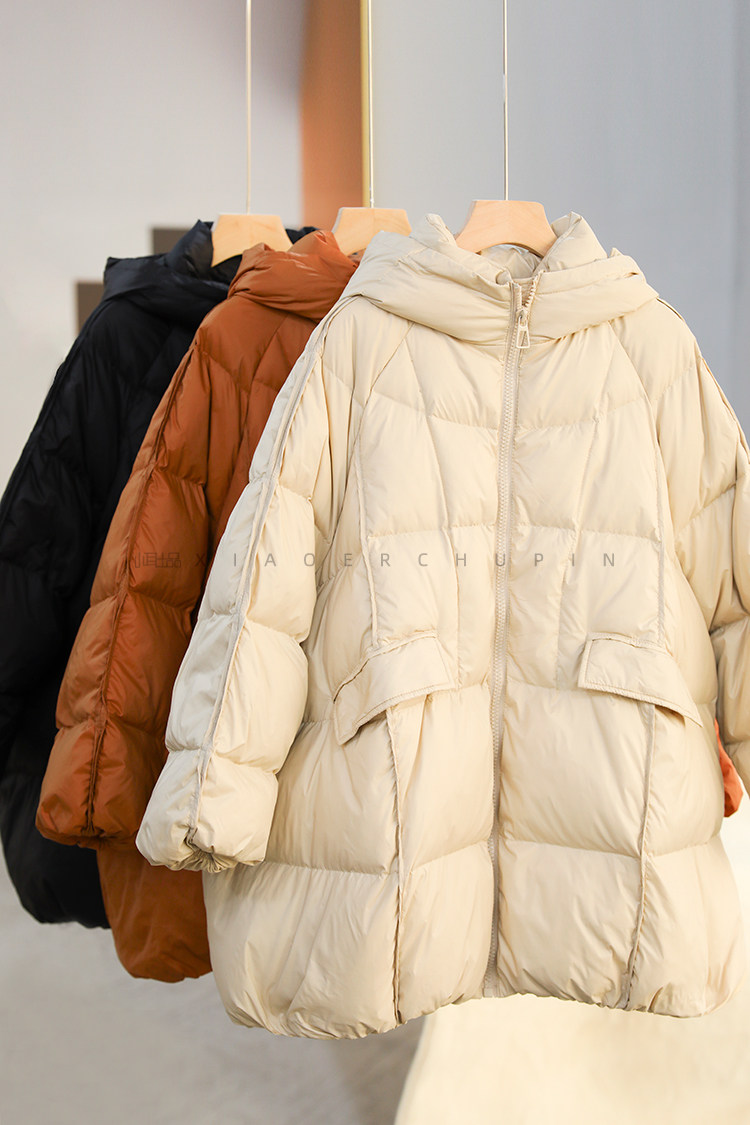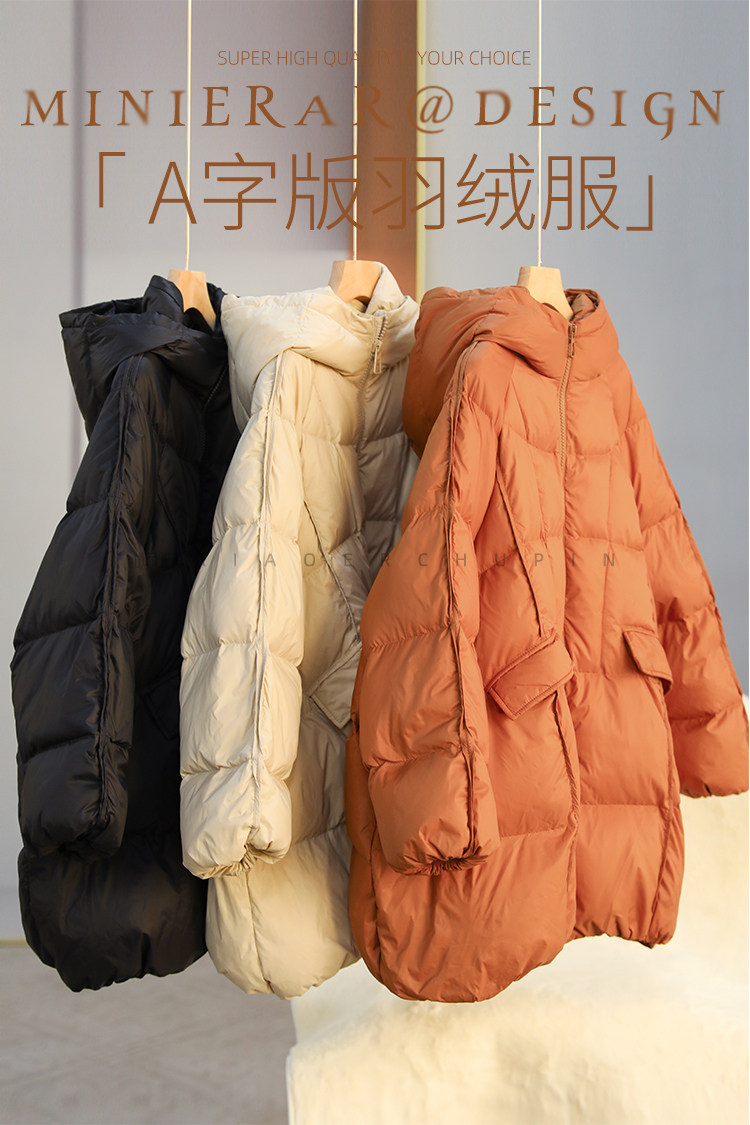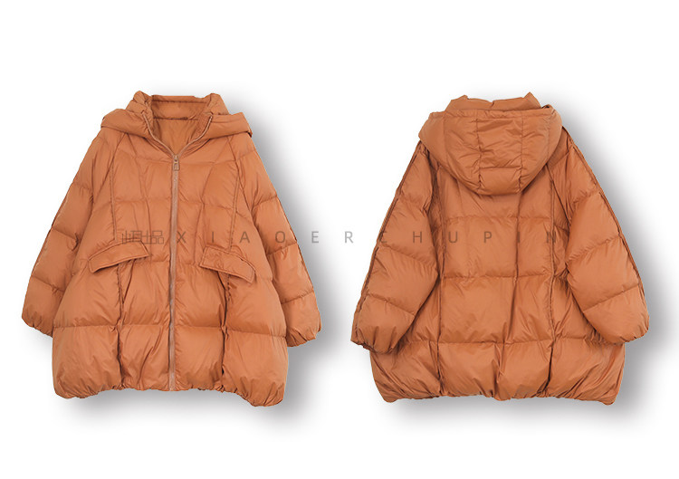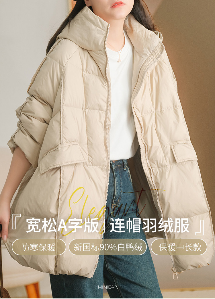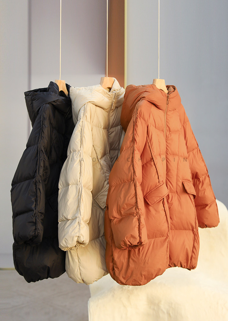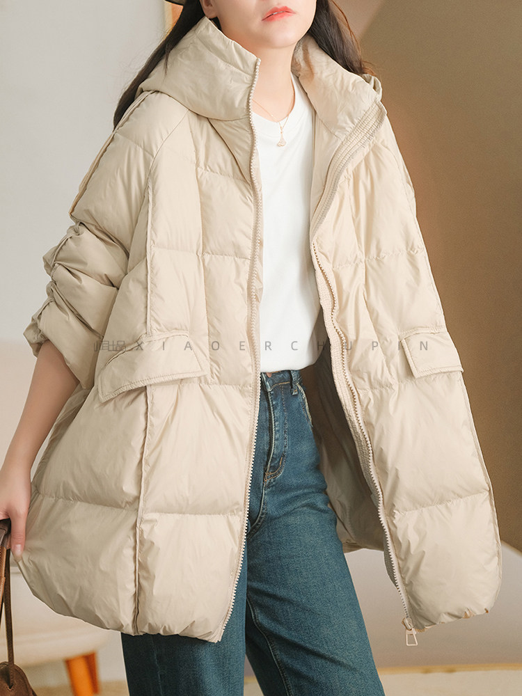 Produced by Xiaoer [A-Line Version] 90% White Duck down Hooded down Jacket Loose Solid Color Coat for Women