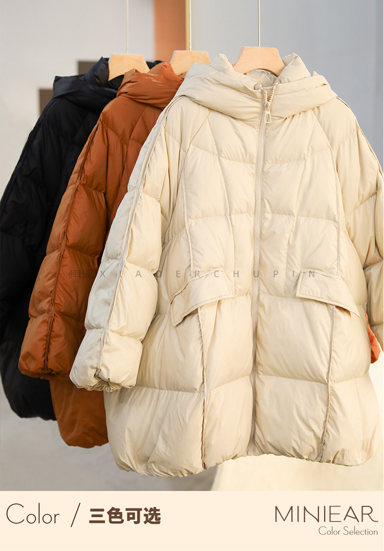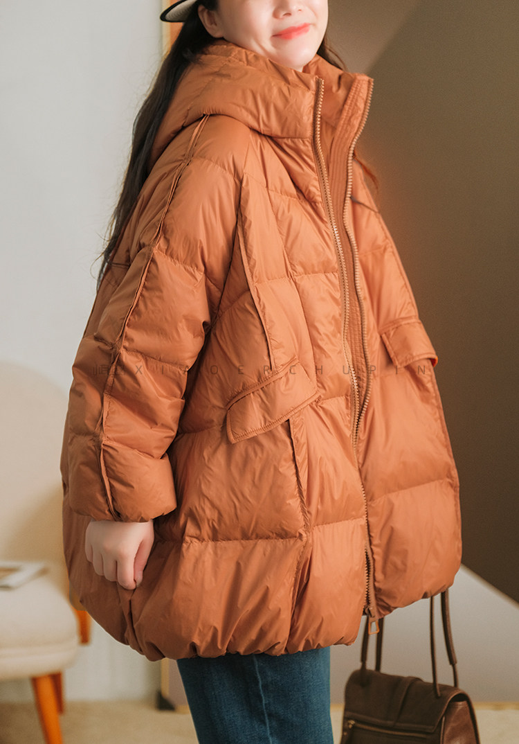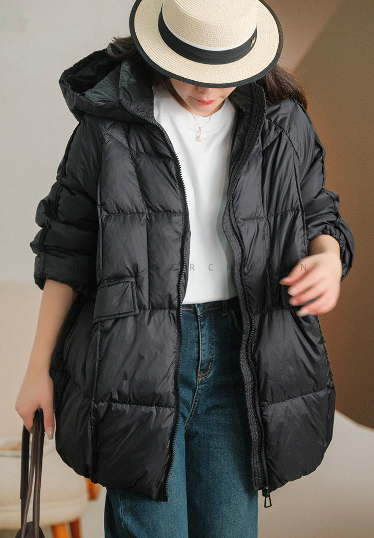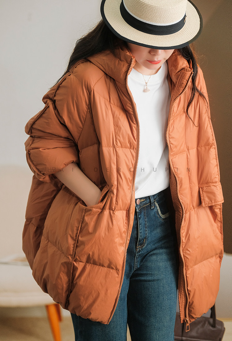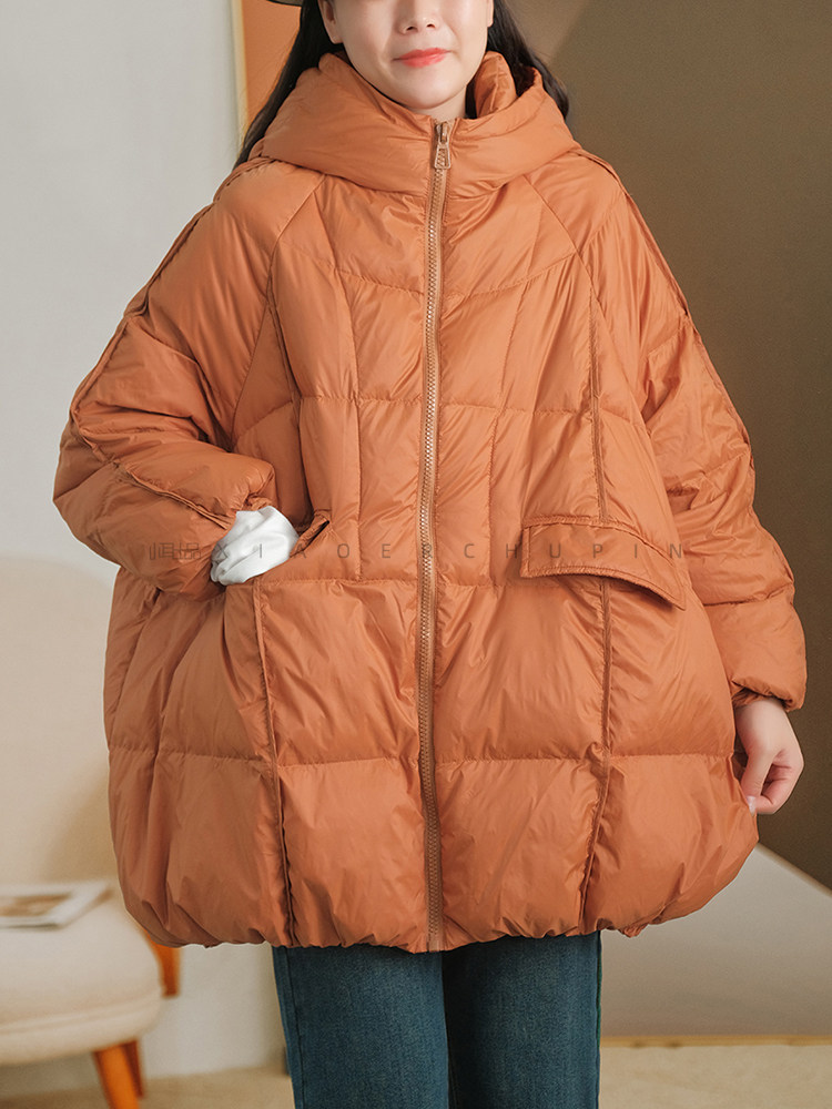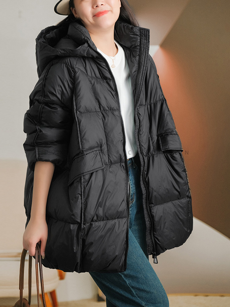 Produced by Xiaoer [A-Line Version] 90% White Duck down Hooded down Jacket Loose Solid Color Coat for Women
