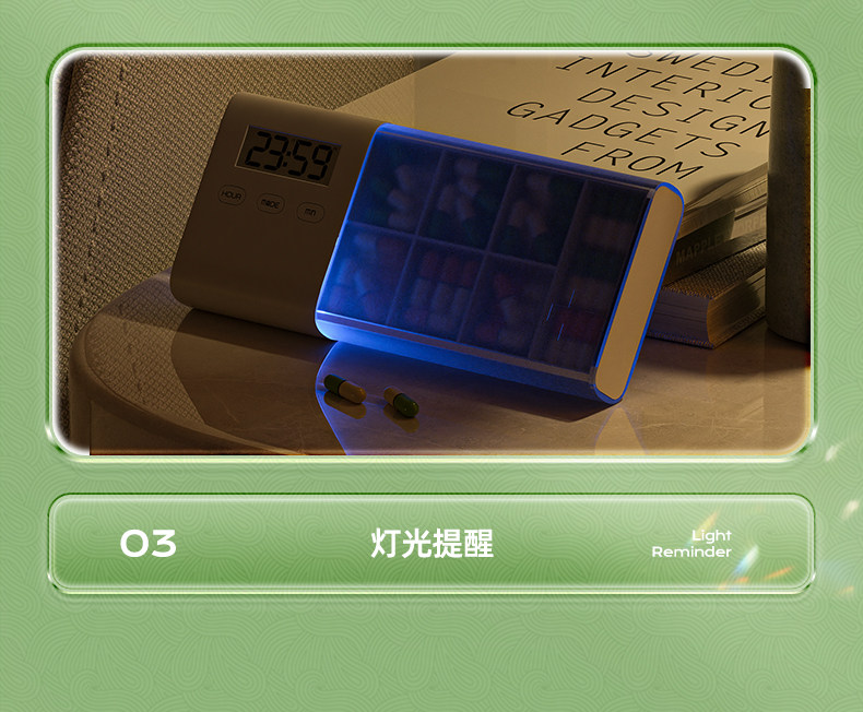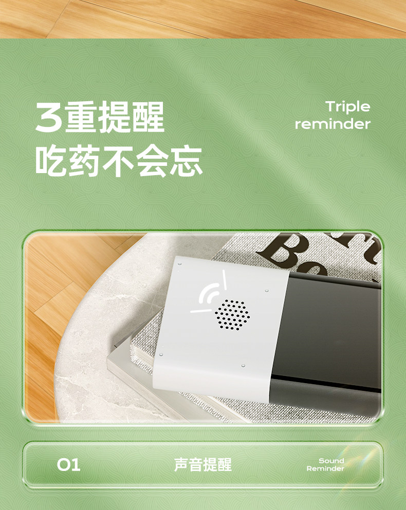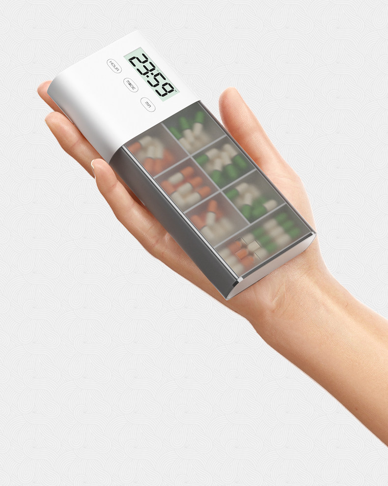 Smart pill box is a portable and repackaged high-end small pill box that electronically reminds the elderly to take medicine regularly seven days a week