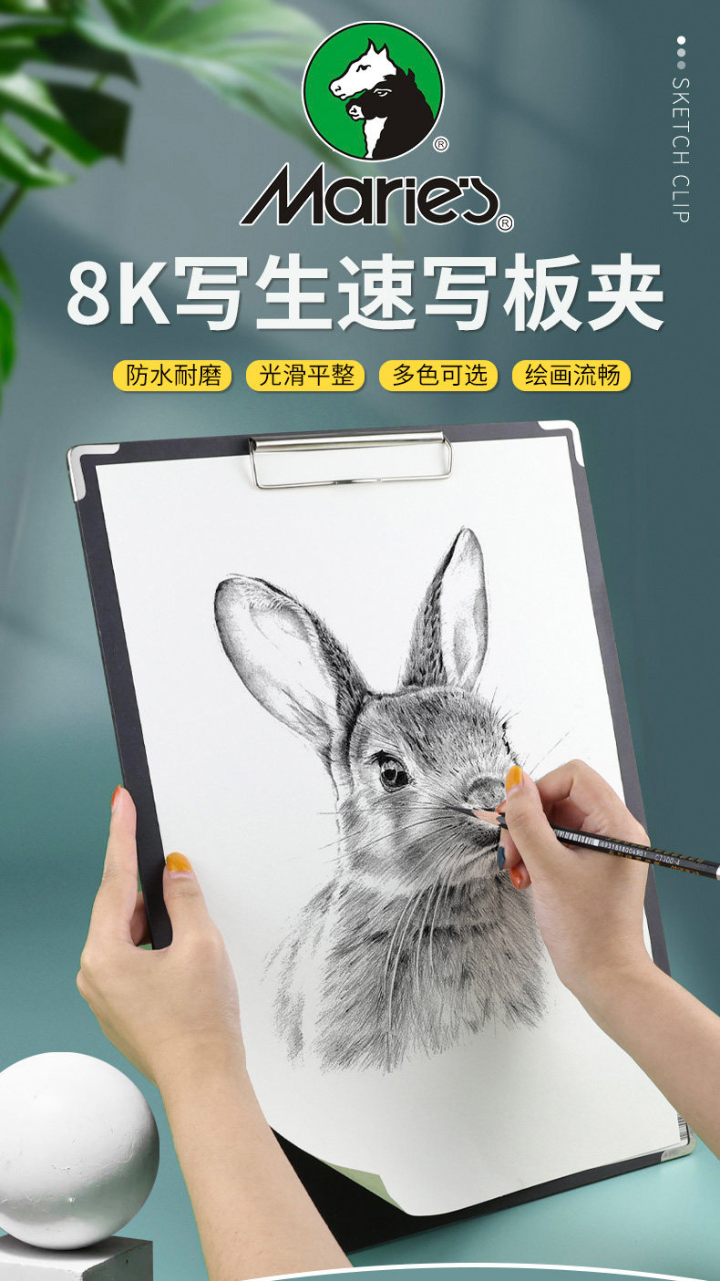 Marley Brand 8K Waterproof Sketch Pad, Sketch Board, 8-Open Format Sketching Pad, Drawing Board, Writing Pad, Suitable for Beginners, Can Hold Paper, with Cloth Pocket, Portable for Adults and Children, Special for Art Students, for Outdoor Sketching