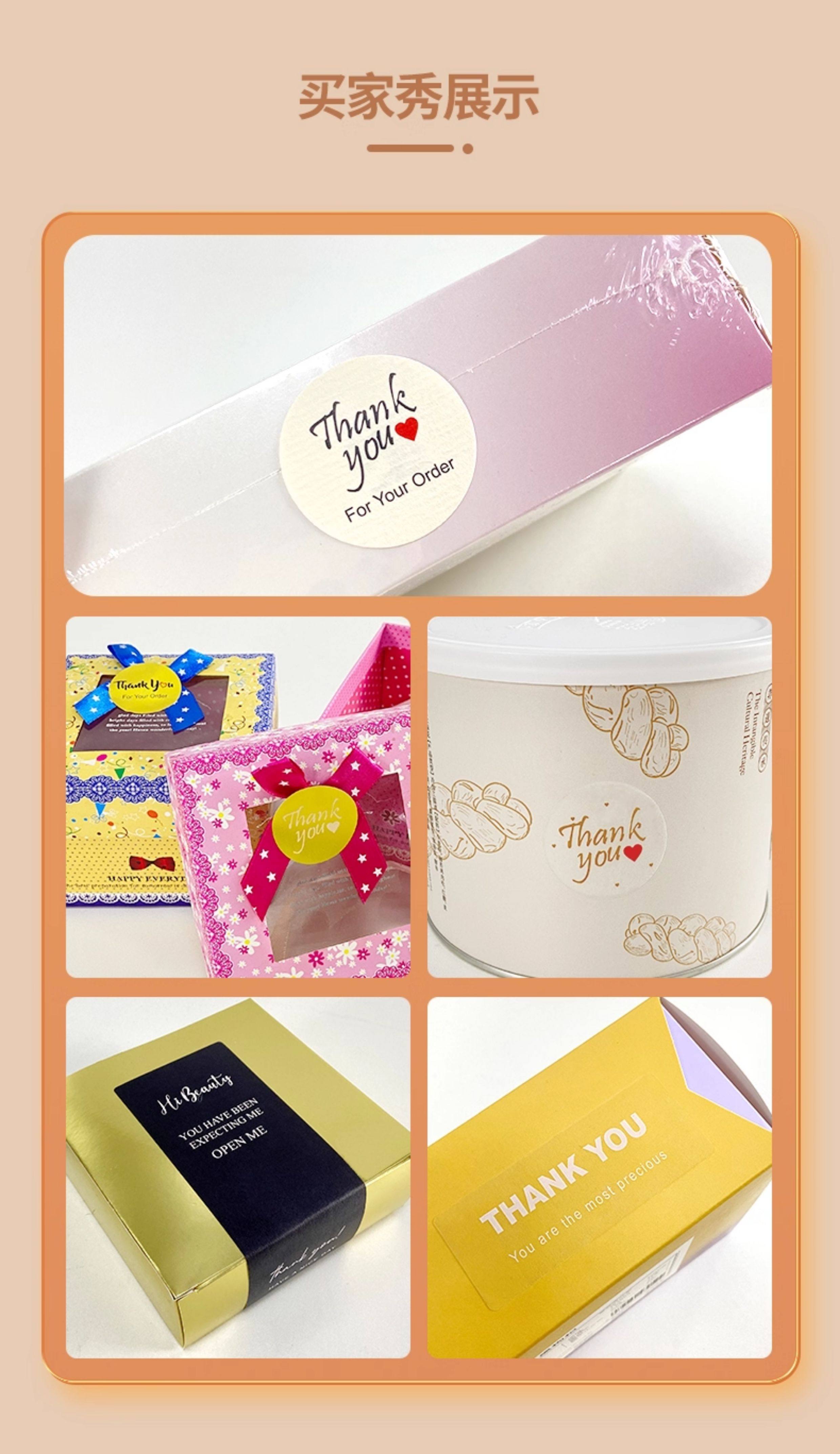 Thank You Stickers, Writing Paper, Transparent Sealing Stickers, Large Gold Round Thankyou Stickers, Gold Foil Dessert Handmade Baking Pink Rectangular Gift Box Sealing Stickers, Packaging Takeaway Label Stickers, White