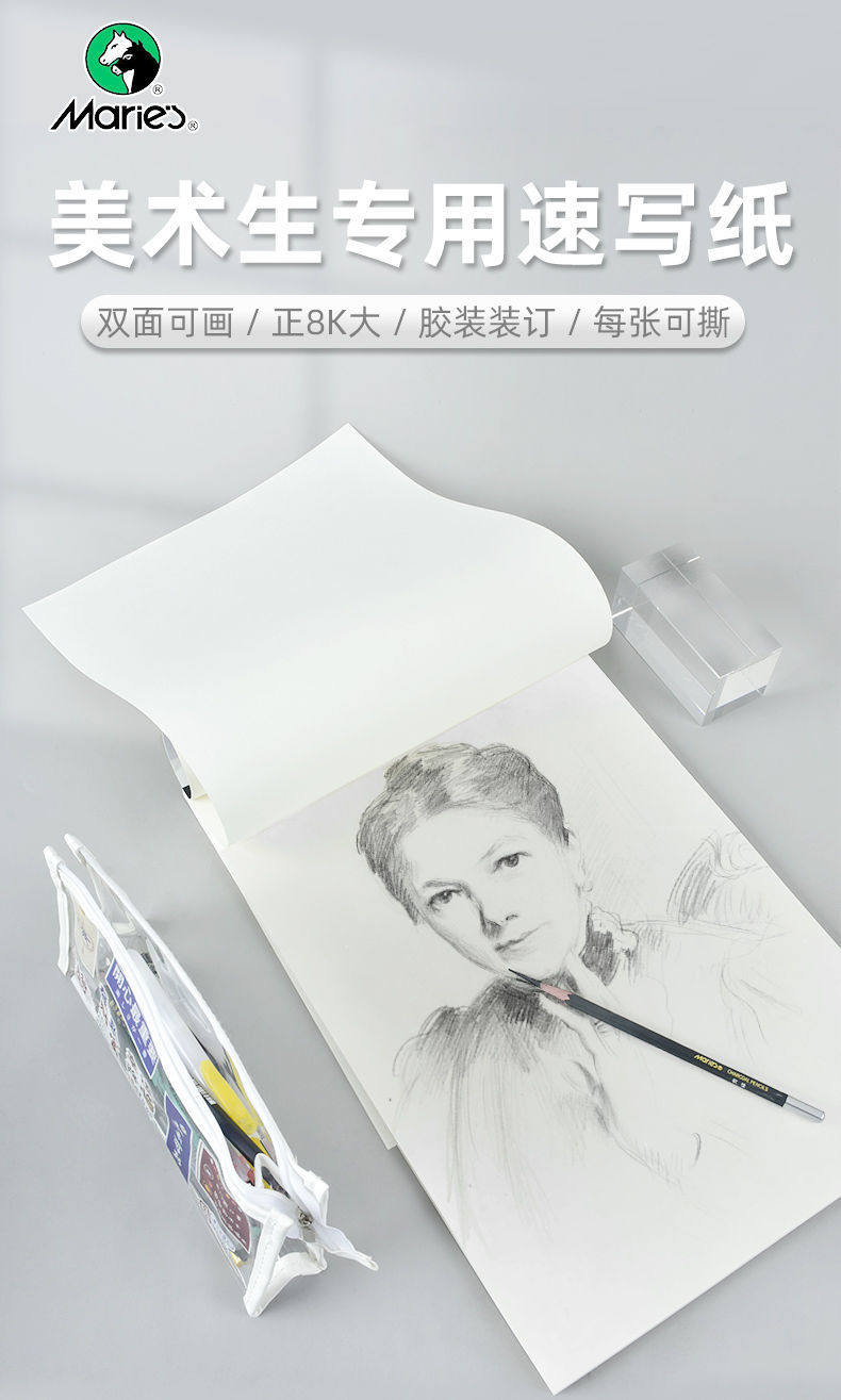Marley Brand 8K Sketch Paper for Art Students, Portable Sketchbook, Professional Sketching, 8K Size, 100 Sheets, Double-Sided, Thickened, Loose-Leaf for Drawing, Beginner Drawing, Tracing, Hand-Drawing
