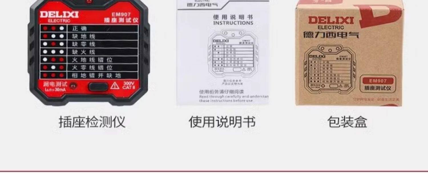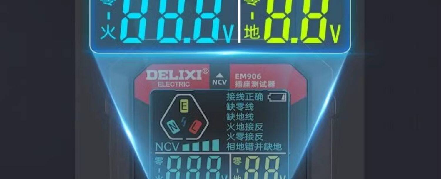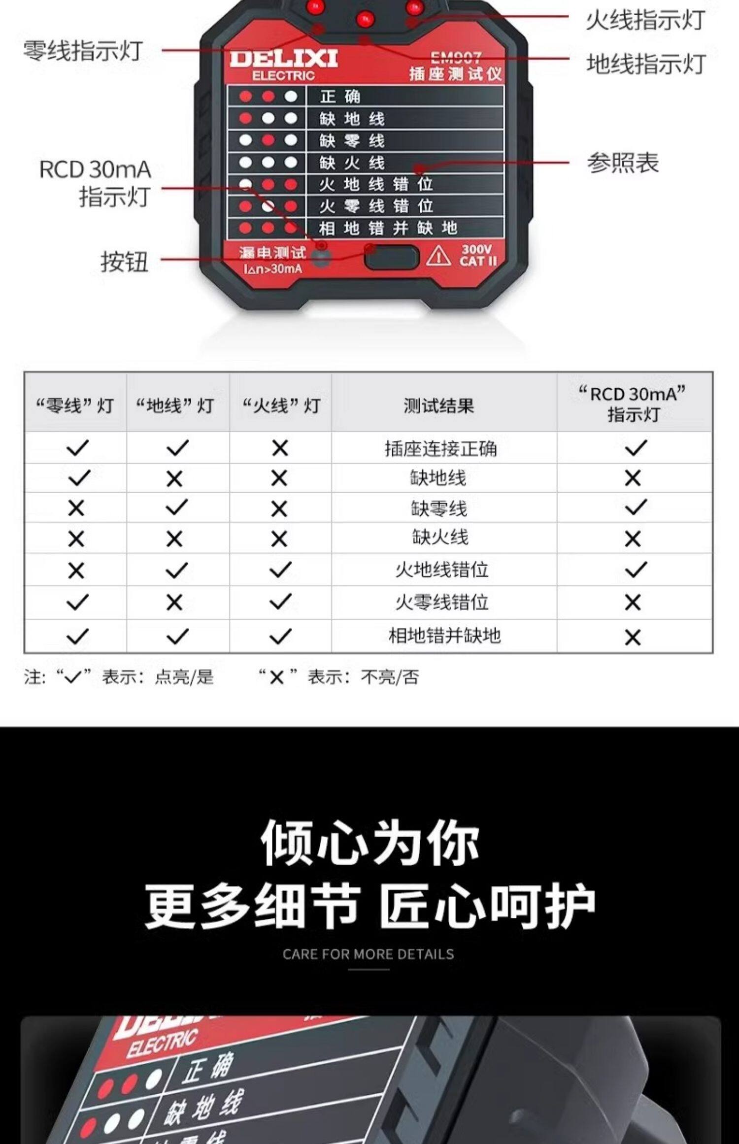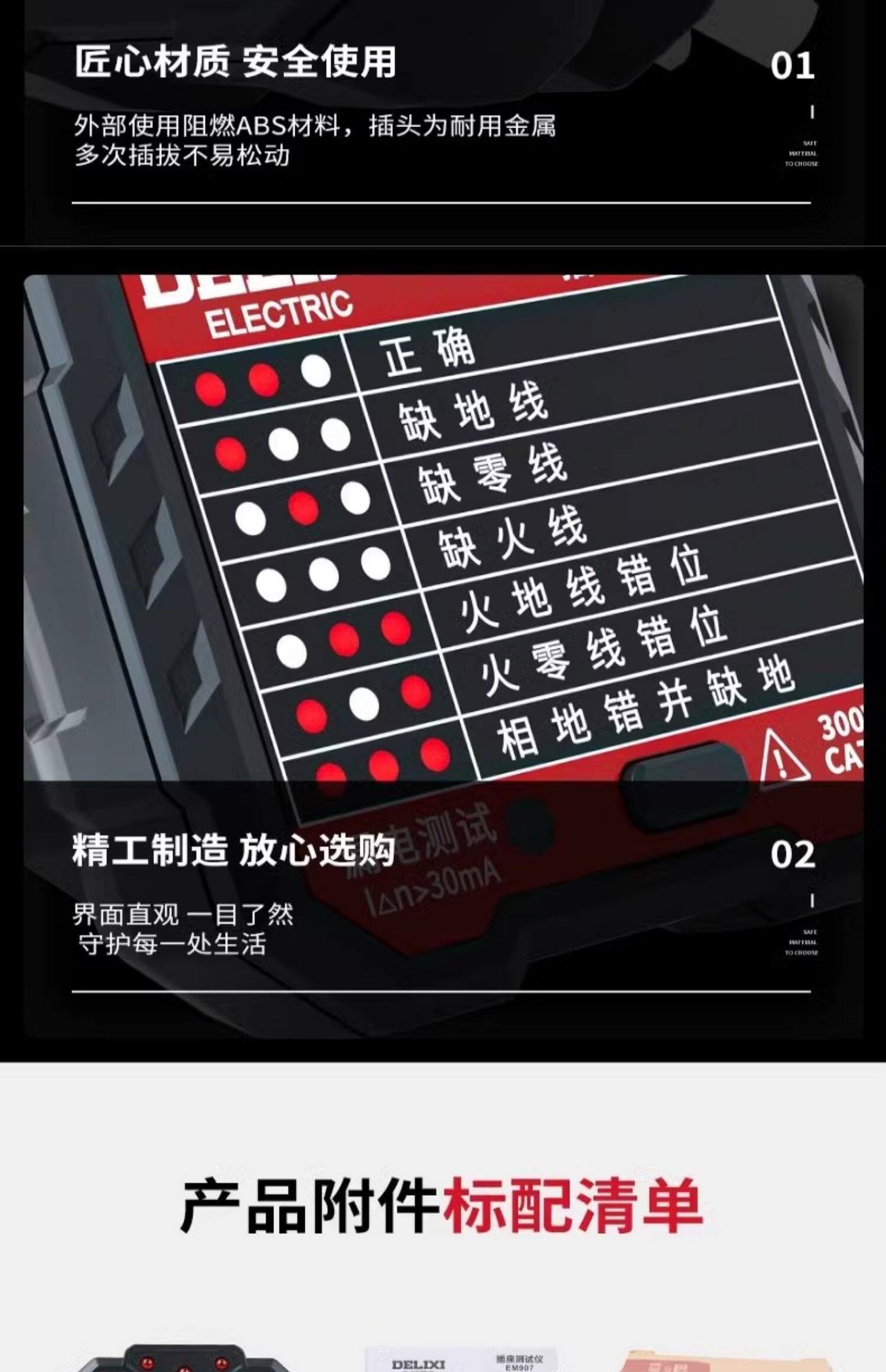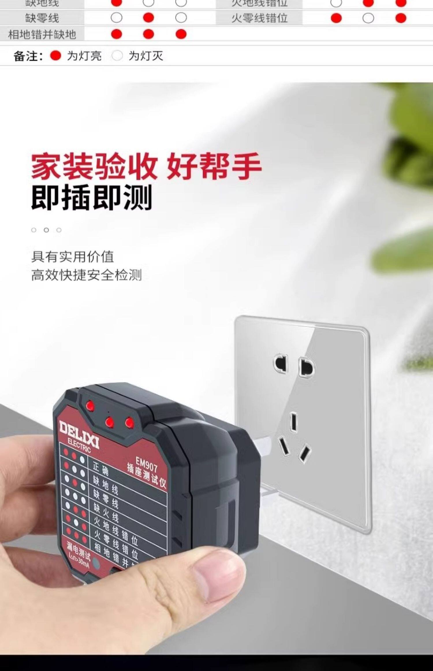 Delixi Electrical Socket Tester for Measuring Power Polarity, Phase, Live, Neutral, and Ground Wires, Electrical Tester Plug Tool