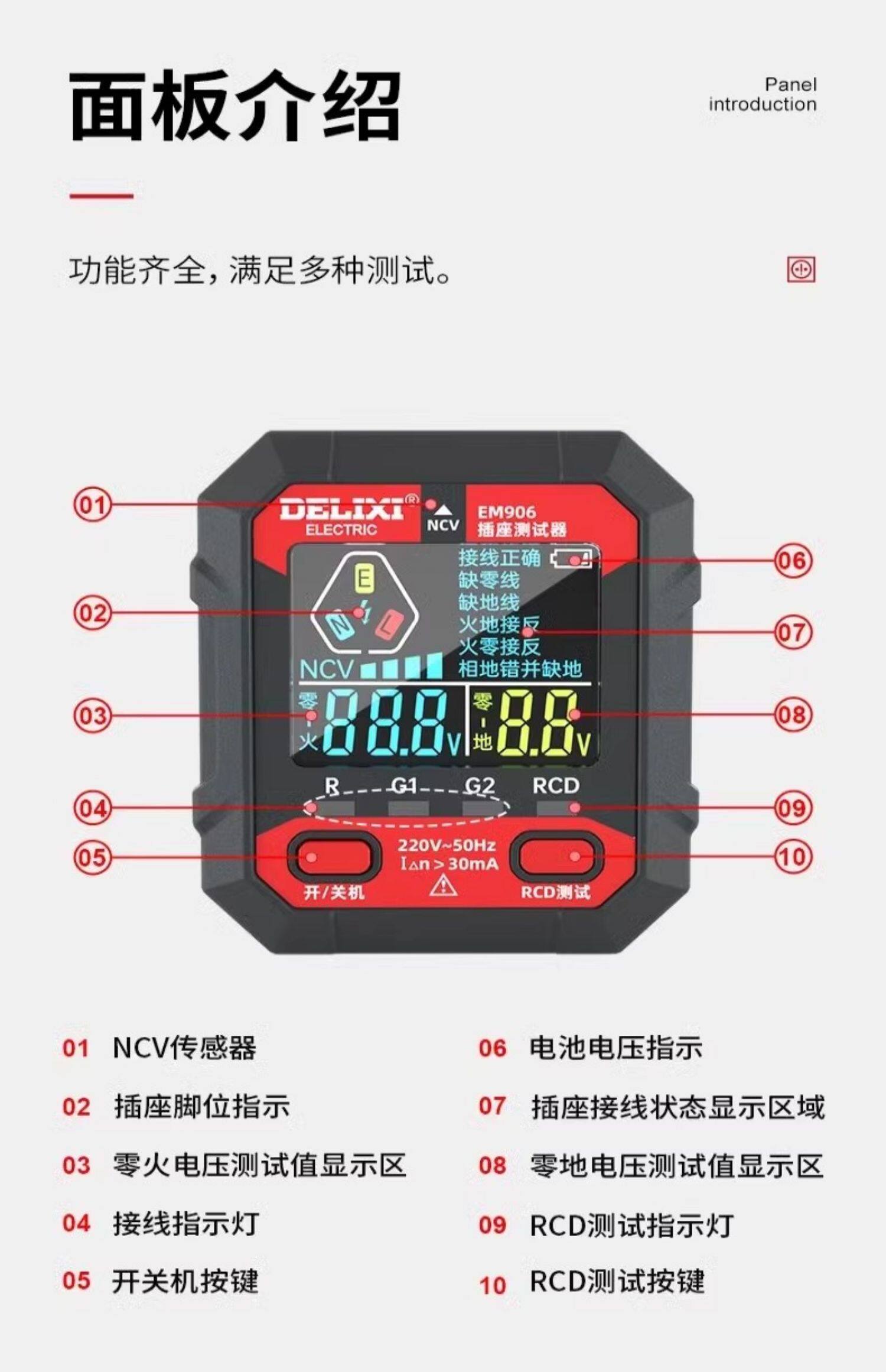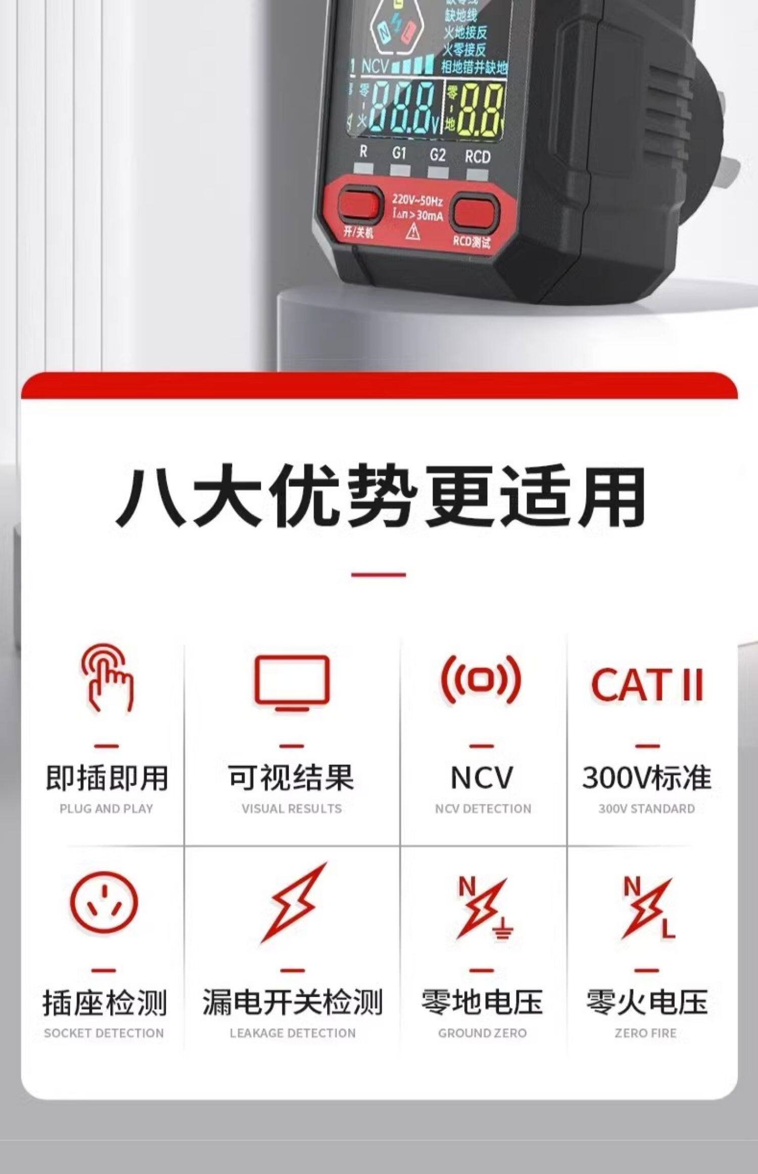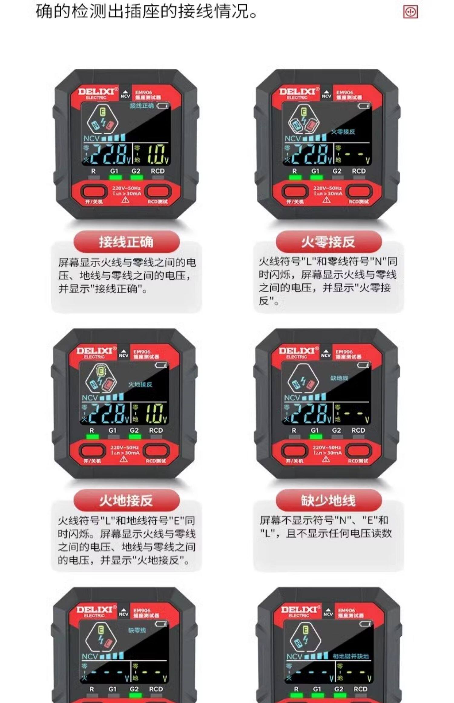 Color Classification 220V Digital Display Multi-Function Power Socket Tester Em906,220V Multi-Function Power Socket Tester Em907,Multifunctional Power Polarity Detector Em908