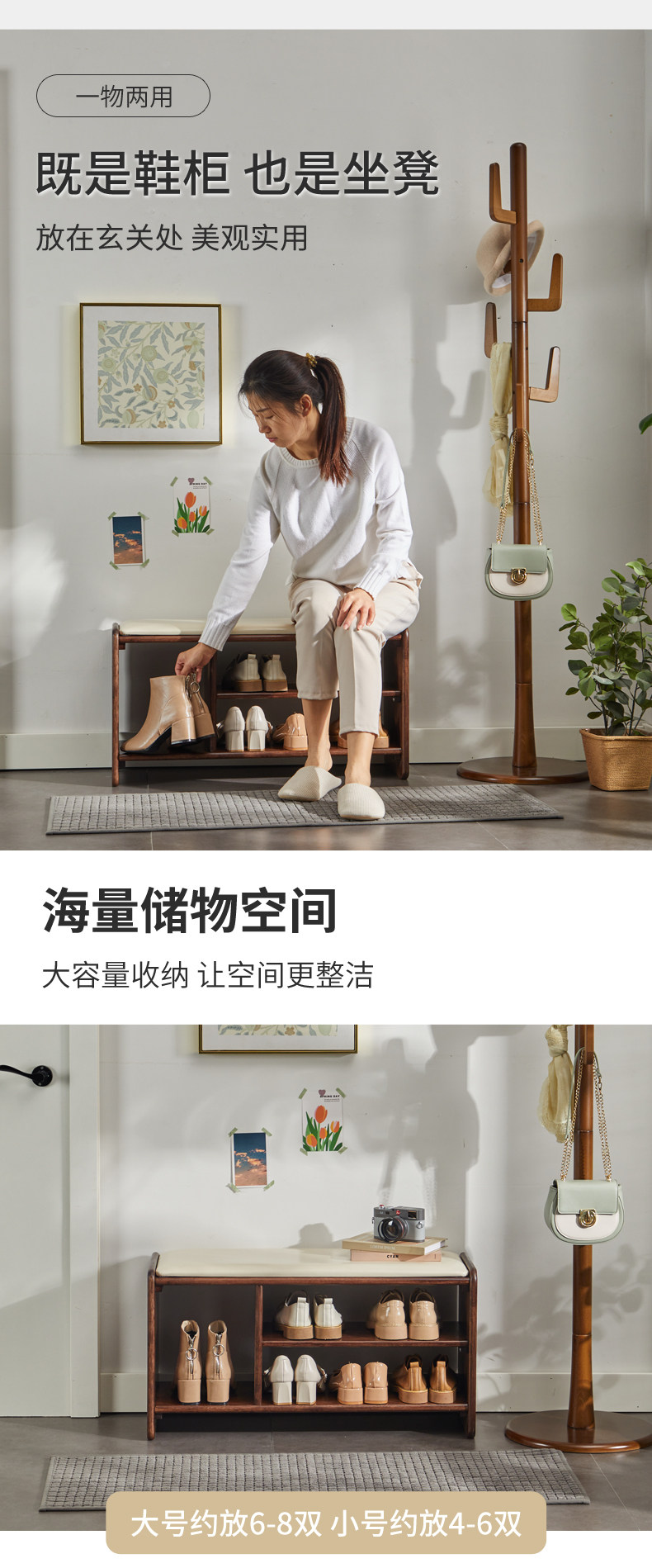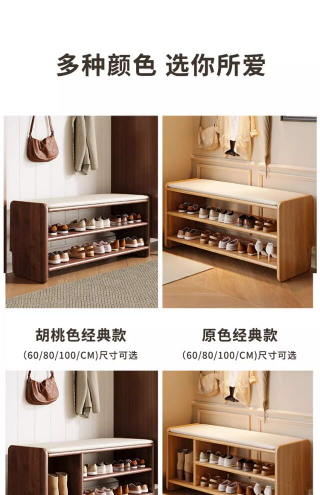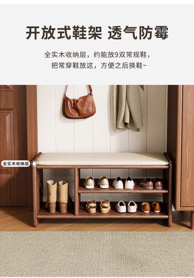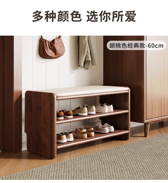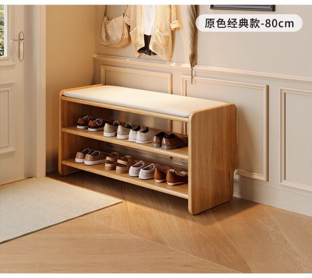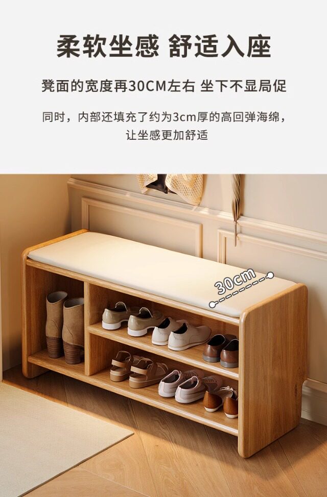 Integrated Shoe-Changing Bench for Home Use, Solid Wood Shoe Bench with Soft Padding, Entryway Shoe Cabinet, Shoe Rack, Can Be Used as a Seating Area at the Entrance