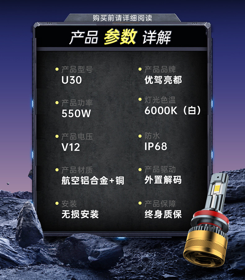 Car Led Headlight Laser Super Bright Light Lens High Beam Low Beam Integrated Modification Strong Light Spotlight Bulb U30