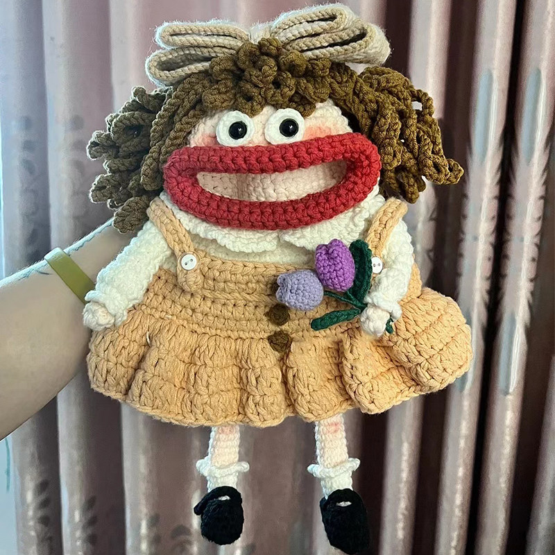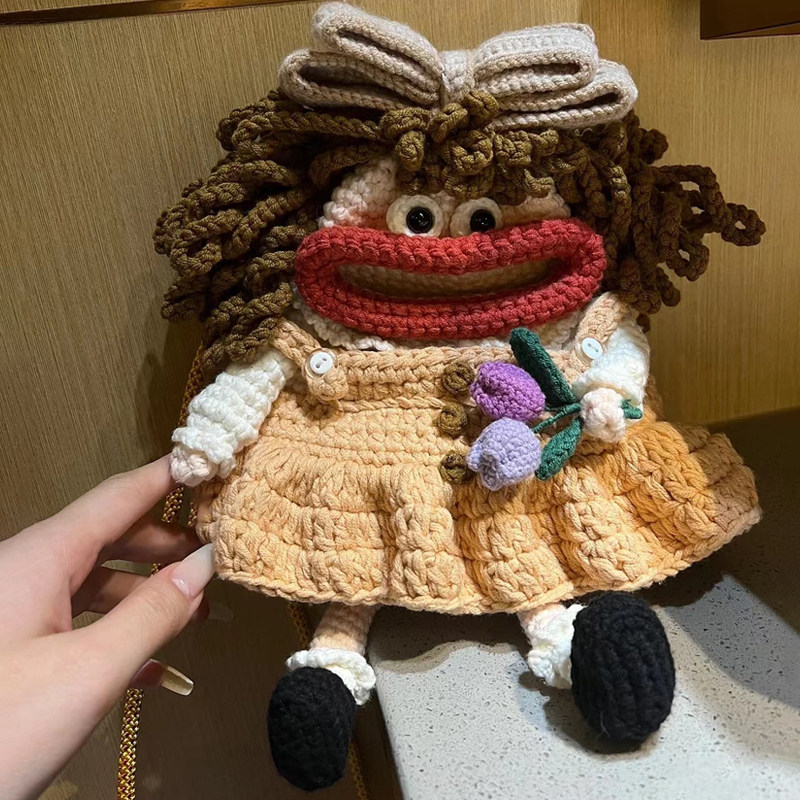 Tulip Girl Sausage Mouth Phone Bag Handmade DIY Crochet Cute Yarn Ugly-Cute Doll Gift for Best Friend