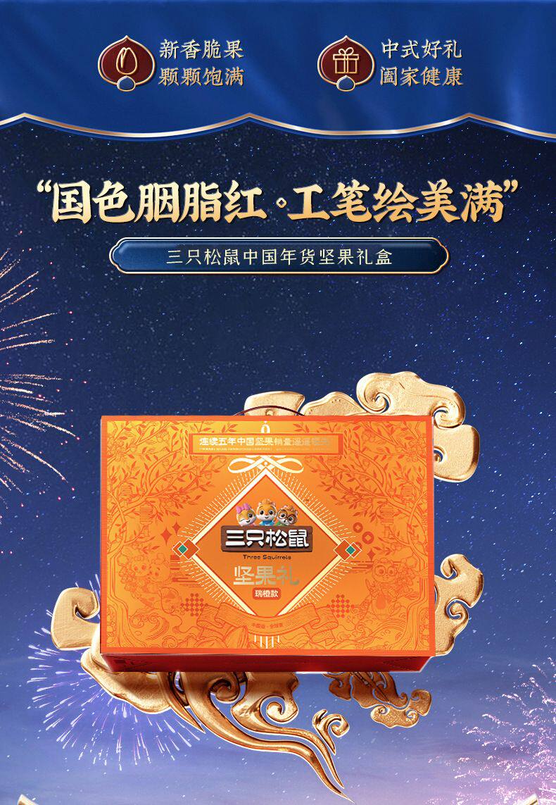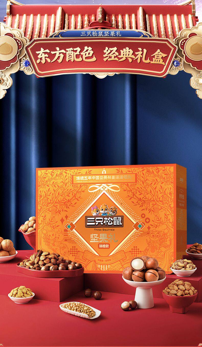 Three Squirrels_Rui Orange 1813g Nut Gift Pack Mid-Autumn Nut Gift Set Nut Gift Box Healthy Snacks Group Purchase