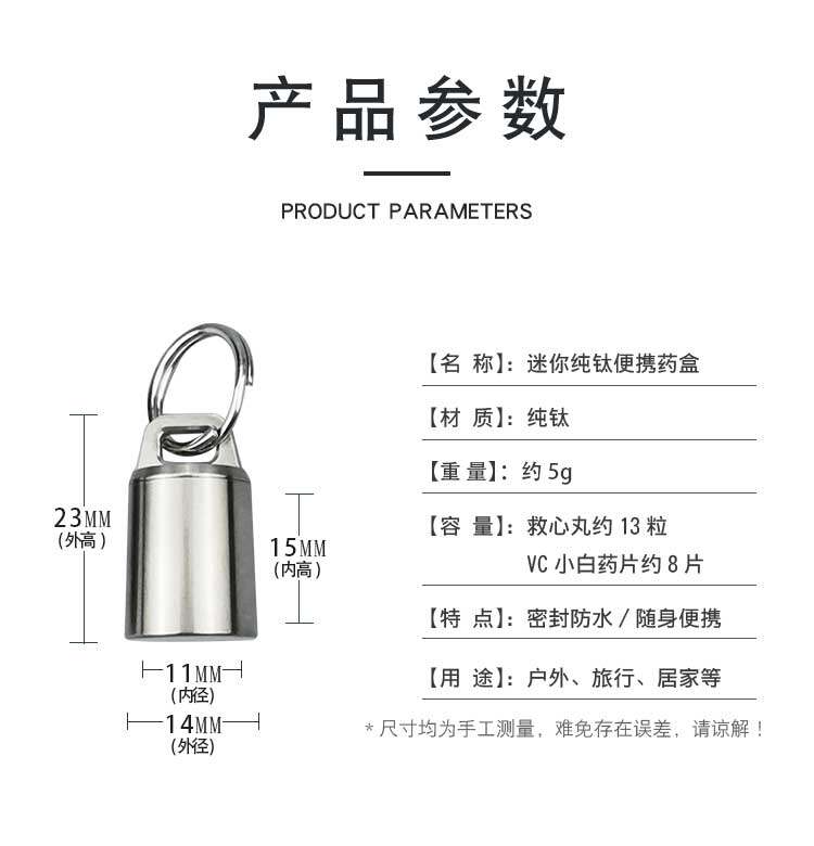 Portable pure titanium mini medicine bottle titanium alloy waterproof warehouse outdoor emergency capsule bottle Jiuxin pill storage small medicine box