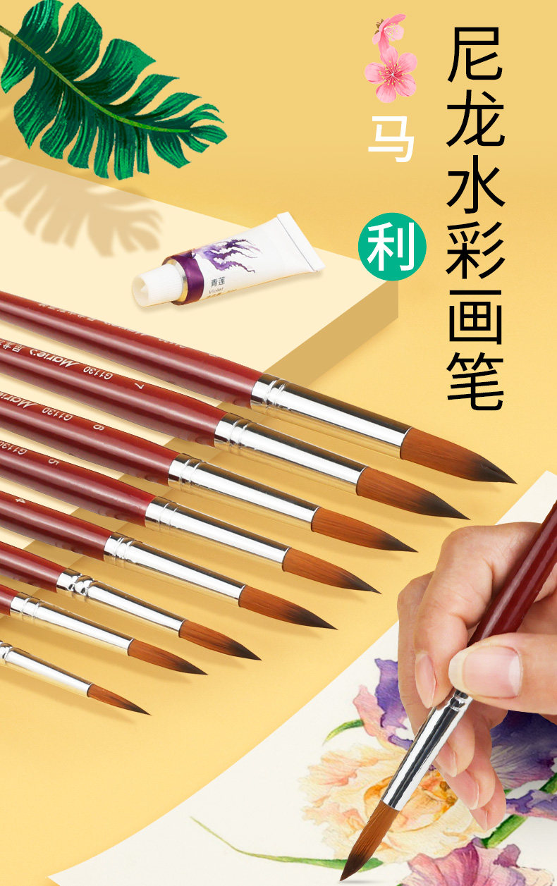 Marley Brand Nylon Watercolor Brush Set, Beginner Watercolor Brushes, Calligraphy Brushes, Art Students, Children, Primary and Secondary School Students, Hand-Painted Gouache, Acrylic, Oil Paint, Professional Use, Round Tip, Pointed Tip, Flat Tip