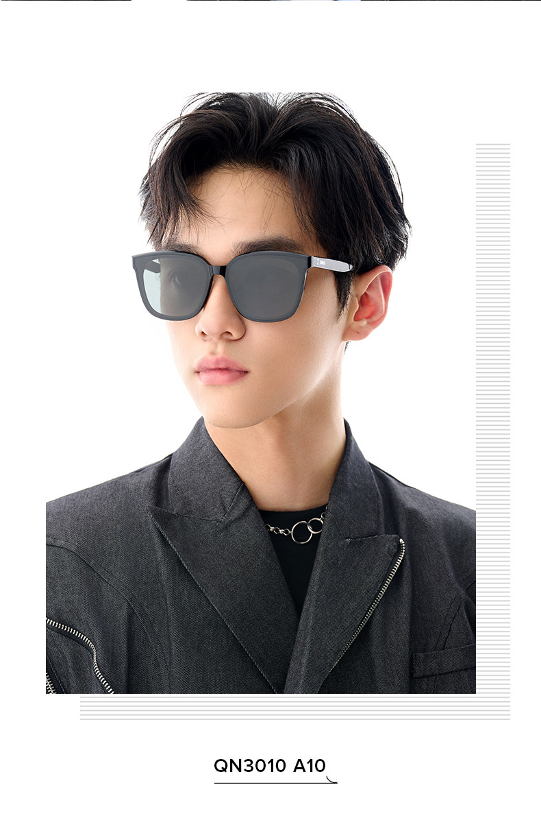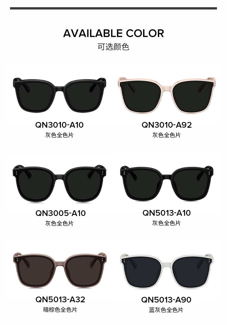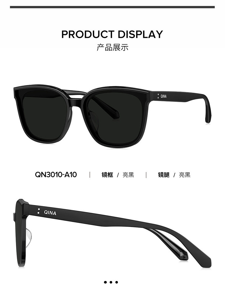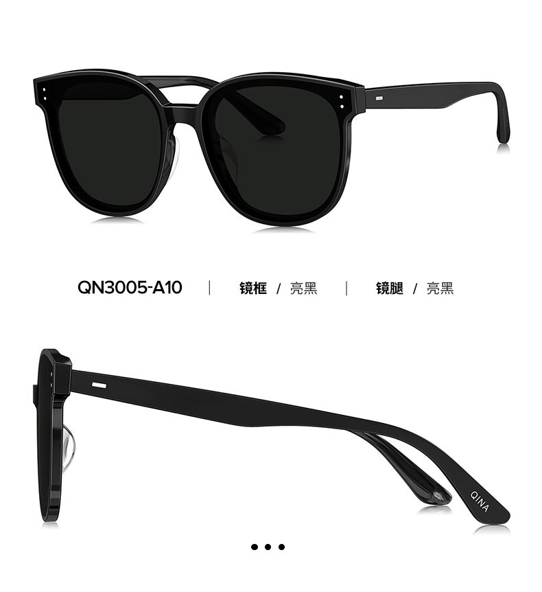 QINA Qina Glasses Zhao Lusi Same Style Black Oversized Frame Cat Eye Sunglasses Women's Sunscreen Sunglasses Men's QN3010