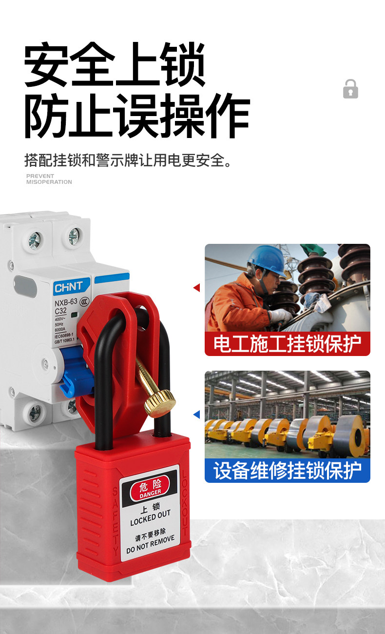 Small Circuit Breaker Lockout Safety Protection Anti-Misoperation Plastic Shell Switch Lock Electric Gate Isolation Maintenance Padlock