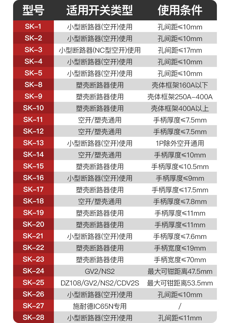 Color Classification Small Circuit Breaker with Pins Facing Outwards,Small Circuit Breaker, Pin Facing Inward,Small Circuit Breaker 80A or More,Small Circuit Breaker, New Model, Pin Facing in,Small Circuit Breaker, New Model, Pinout Facing Outwards (2-Pin),Small Circuit Breaker, New Model, 80A and Above,Small Circuit Breaker, Pin Facing Inwards, 2,Small Circuit Breaker 80A or Above 2,Molded Case Switch Below 160A,Molded Case Switch 250A-400A,Molded Case Switch 400A and Above,Small Circuit Breakers Require a Screwdriver for Tightening,Small Circuit Breaker with Quick Manual Locking,Small Circuit Breaker 2P or Above,Molded Case Switch, Manually Tightened, Card 10 Thickness Handle,Molded Case Switch, Manually Tightened, Card 10 Thickness Handle 2,Small Circuit Breaker, Molded Case Circuit Breaker, Universal, Quick Manual Tightening,Molded Case Switch Card 17.5mm Thick Handle,Small Circuit Breaker, Quick Manual Tightening 2,Molded Case Switch Card 11 Thickness Handle,Molded Case Switch Card 11 Thickness Handle 2,Small Circuit Breaker,Molded Case Switch Lock 19.Handles with a Width of 4 or Less,Molded Case Switch Lock Handle Below 70 Width,Motor Protection - Small,Motor Protection Circuit Breaker Lockout Device - Large,Small Circuit Breaker 2,Special for Schneider Ic65N Series,Small Circuit Breaker 3,Industrial Plug Lock,Padlock 25 Plastic Beam,Padlock 38 Plastic Beam,Padlock 76 Plastic Beam,Padlock 25 Steel Beam,Padlock 38 Steel Beam,Padlock 76 Steel Beam,Aluminum Toggle Latch, 25mm, 6-Hole Mounting,Buckle Lock 38 Aluminum 6 Holes,Buckle Lock Plastic 6 Holes,Listed 1 (5 Photos),Listing 2 (5 Photos)