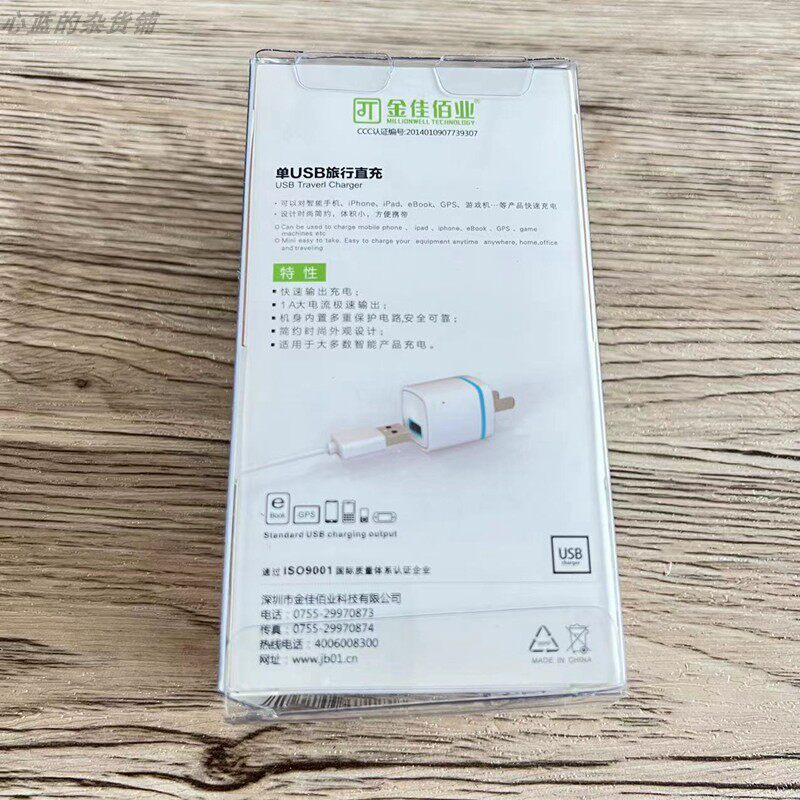 Jinjia Baiye USB Charger Tablet Travel Portable Straight Pin Mini Head Suitable for Apple Samsung 1A