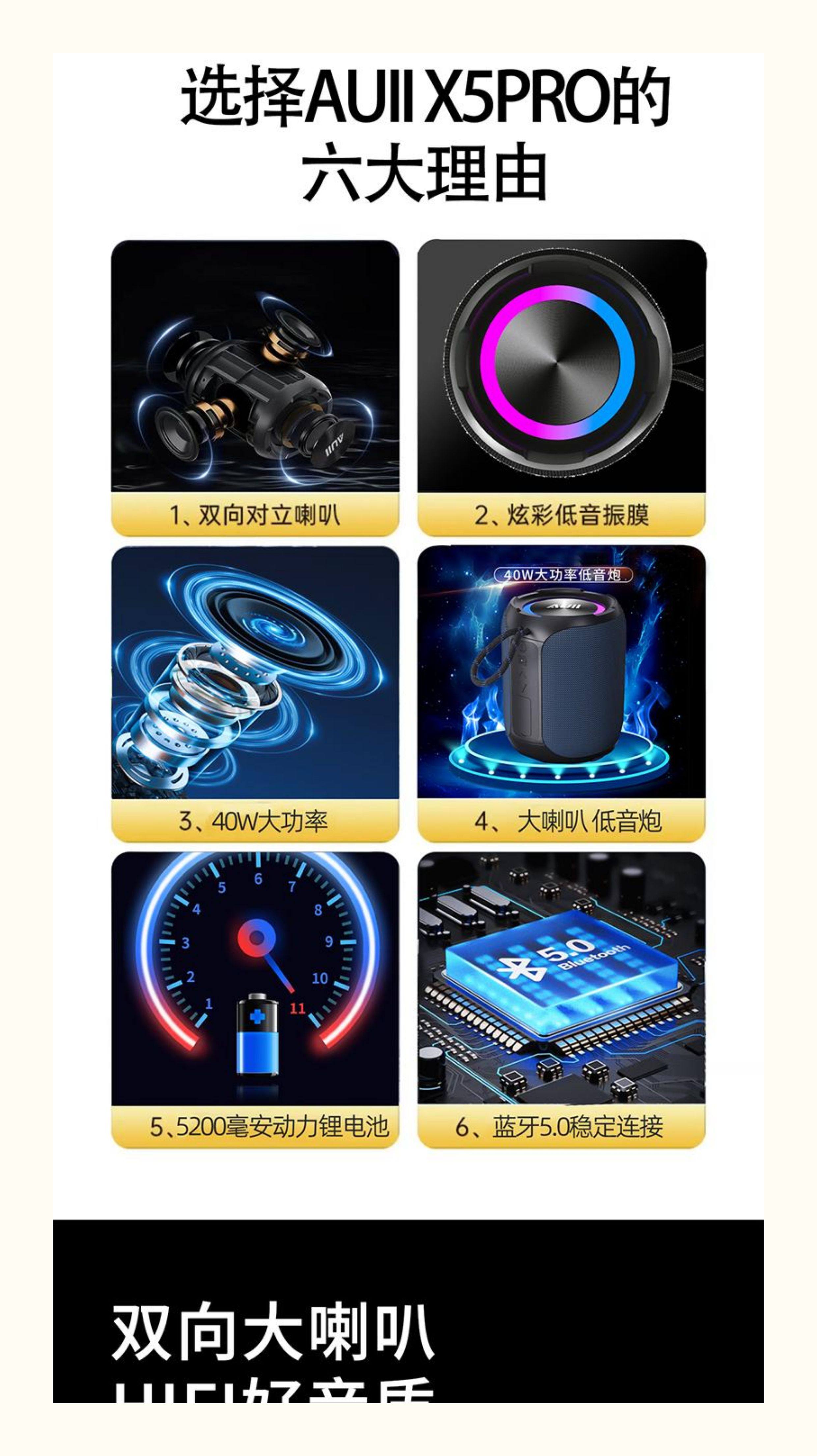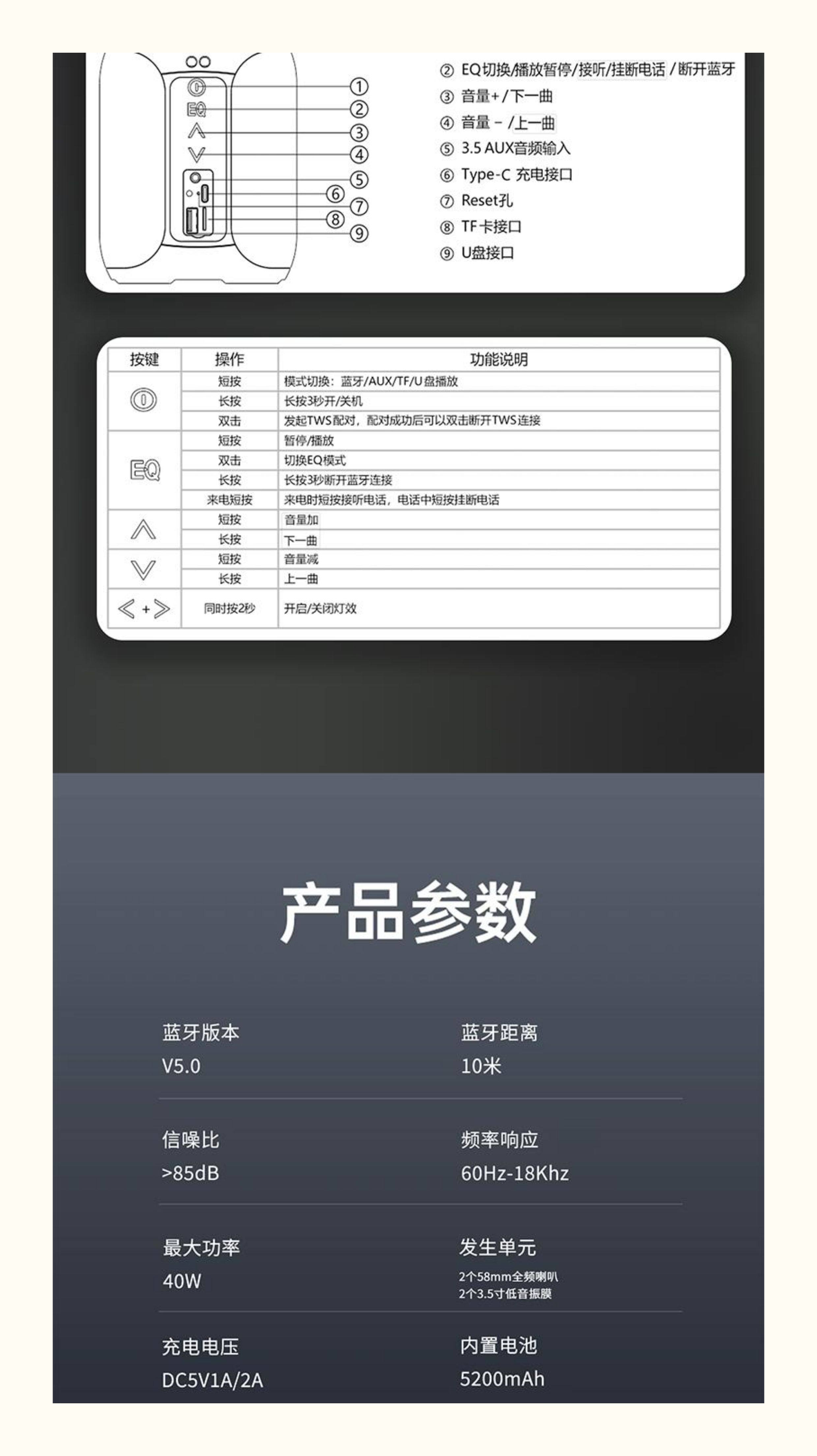 40W High Power Bluetooth Speaker Outdoor Portable Subwoofer Large Volume Good Sound Quality Subwoofer Audio Charging