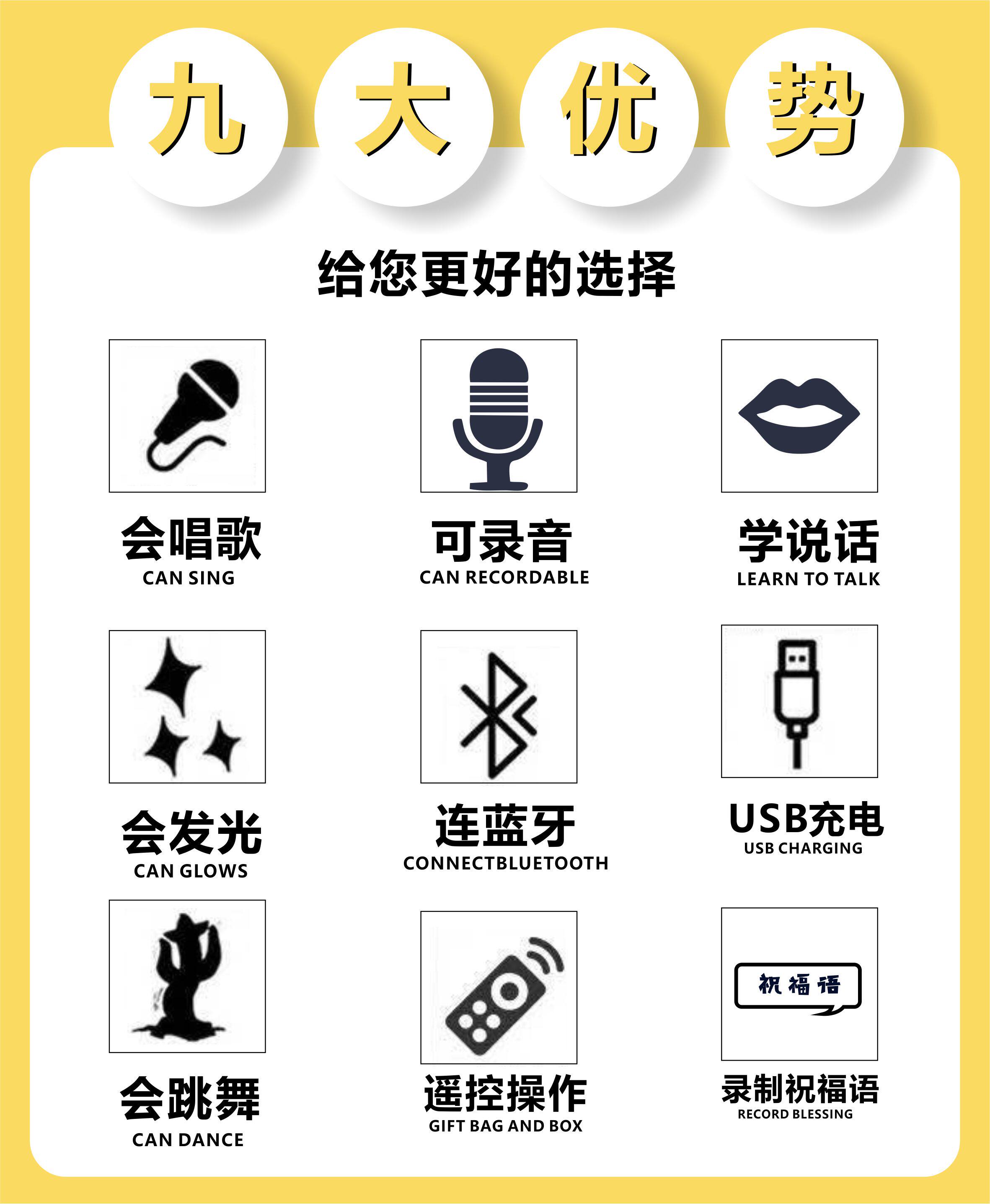 Color Classification Rechargeable Cactus Toy - Sings, Learns to Talk, Records & Dances!,Rechargeable Orange Round [Singing + Speech Learning + Recording + Dancing],Rechargeable Orange Tip [Can Sing + Learn to Speak + Record + Dance],Charging Red Circle [Can Sing + Learn to Speak + Record + Dance],Charging Red Tip [Can Sing + Learn to Speak + Record + Dance],Bluetooth Cactus [Bluetooth Connection + Can Sing + Learn to Speak + Record +...,Gift Bag Packaging - Bluetooth Cactus [Bluetooth Connection + Sings + Learns to Speak + Records Voice +...],Bluetooth Red Circle [Bluetooth Connection + Singing + Speech Learning + Recording + Dancing],Bluetooth Red Tip [Bluetooth Connection + Singing + Speech Learning + Recording + Dancing],Gift Bag Packaging - Bluetooth Orange Round [Bluetooth Connection + Singing + Speech Learning + Recording + Dancing],Gift Bag Packaging - Bluetooth Orange Tip [Bluetooth Connection + Singing + Speech Learning + Recording + Dancing],Pat and Beg for Mercy Cactus [Pat and Beg for Mercy + Continuous Playback + Adjust Volume],Gift Bag - Pat and Beg for Mercy Cactus [Pat and Beg for Mercy + Continuous Playback + Adjust Volume],Pat and Beg for Mercy Red Circle [Pat and Beg for Mercy + Continuous Playback + Adjust Volume],Pat and Beg for Mercy Orange Circle [Pat and Beg for Mercy + Continuous Playback + Adjust Volume],Remote Control Bluetooth Cactus [Remote Control + Bluetooth + Early Education Content +...,Gift Bag Packaging - Remote Control Bluetooth Cactus [Remote Control + Bluetooth + Early Education Content + ...],Gift Bag Packaging - Remote Control Bluetooth Orange Round [Remote Control + Bluetooth + Early Education Content + ...],Battery-Powered Red Round Toy: Sings, Learns to Talk, Records, and Dances!,Battery-Operated Orange Round Toy: Sings, Learns to Talk, Records, and Dances!,Gift Bag Packaging - Remote Control Bluetooth Red Round [Remote Control + Bluetooth + Early Education Content + ...],Remote Control Cactus [999 Early Education + Speech Learning + Recording +...,Battery Cactus [Can Sing + Learn to Speak + Record + Dance]