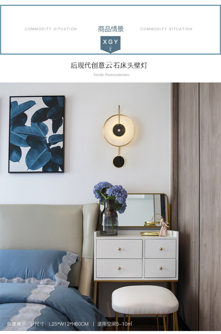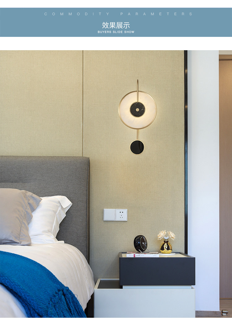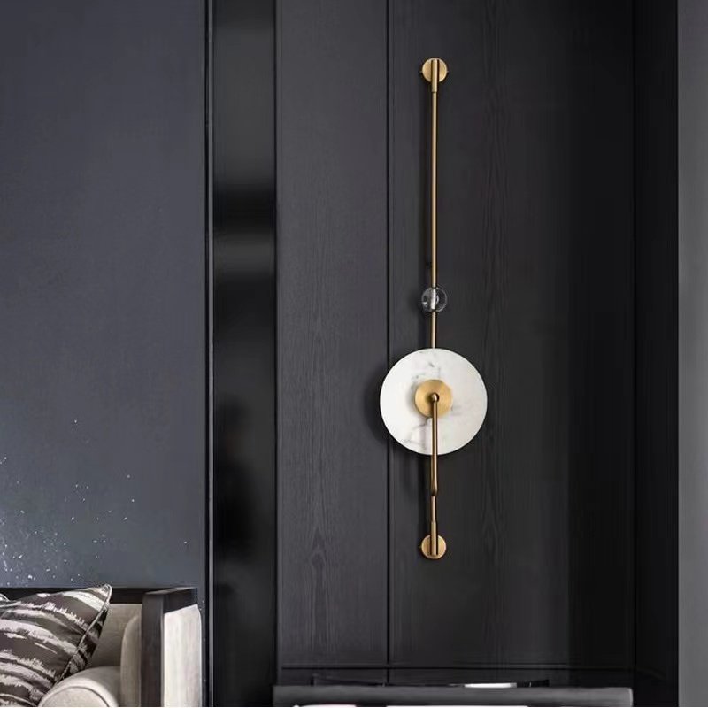 New Chinese-Style Model House Minimalist Designer Creative Living Room Background Wall Bedside Lamp Long Marble Engineering Wall Lamp