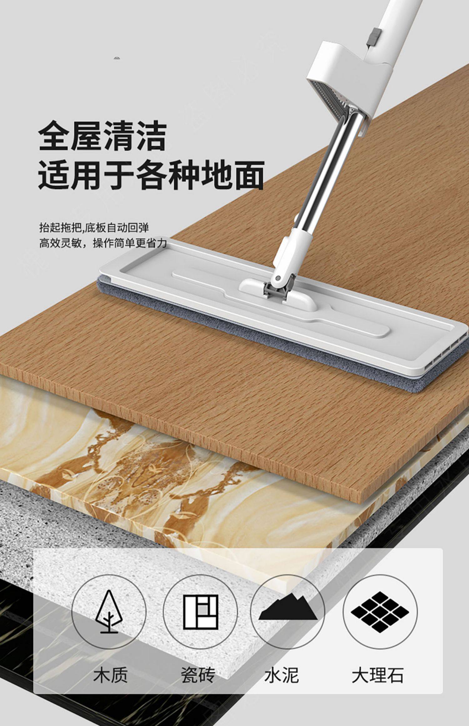 Floor Cleaning Magic Tool Lazy Mop No-Hand-Wash Needed Household One-Sweep-Clean Absorbent Flat Mop Floor Mop