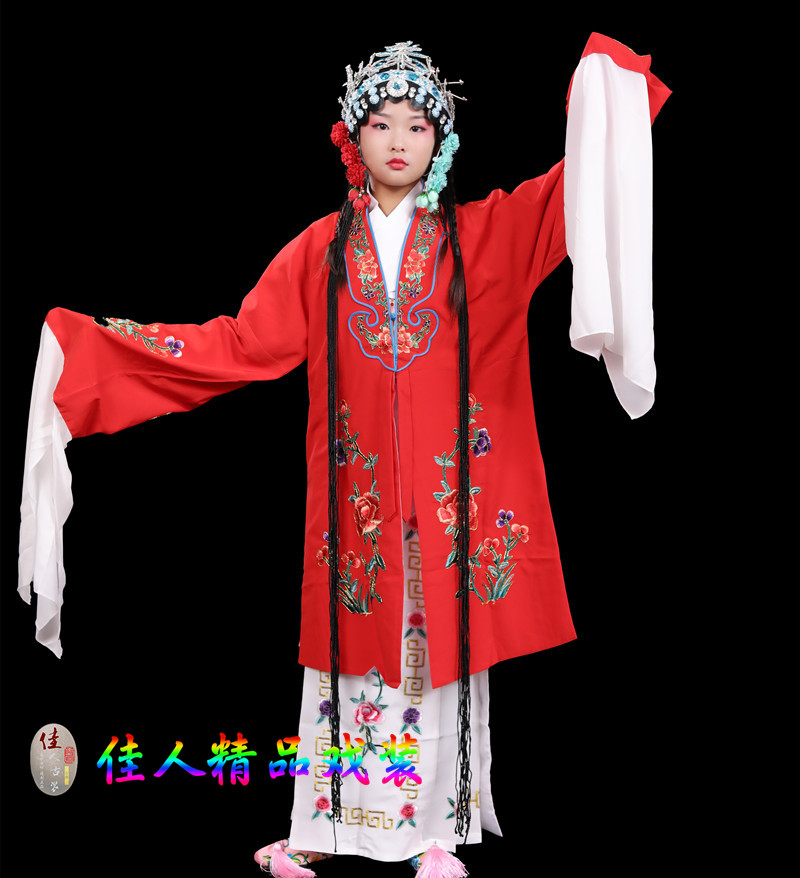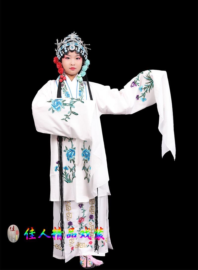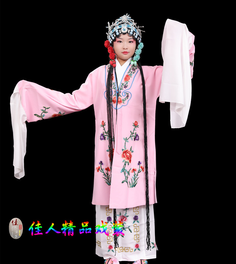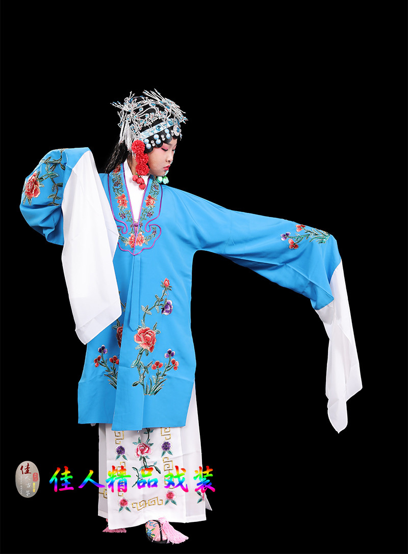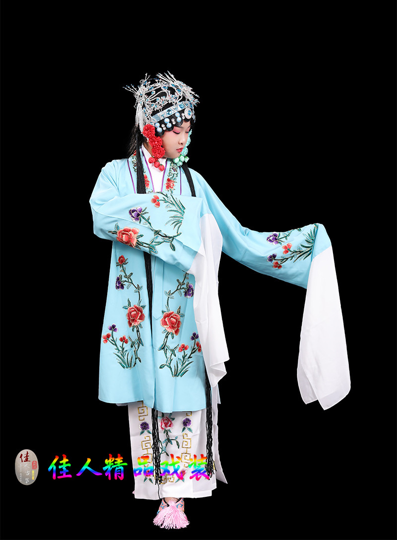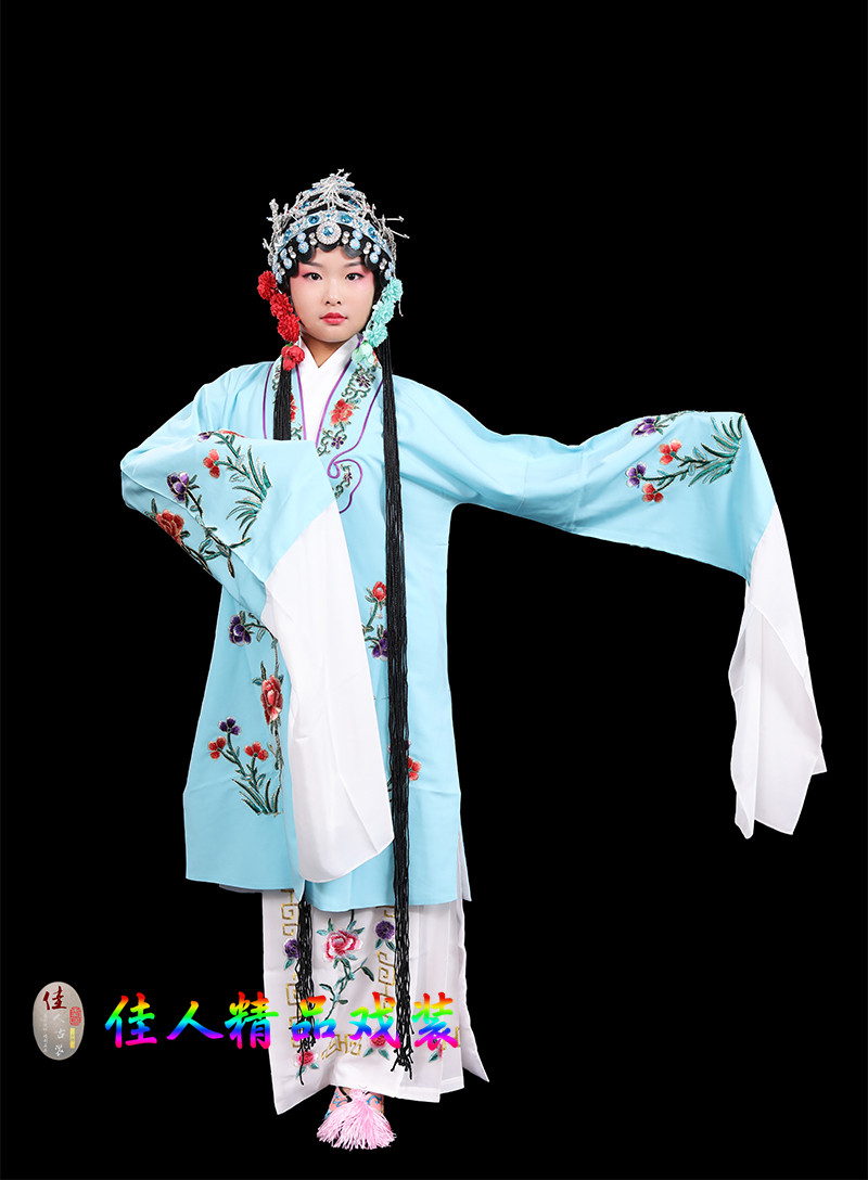 Children's Traditional Chinese Opera Costume, Peking Opera Ancient Costume, Performance Outfit for Kids, Large Qingyi (Blue Robe) with Water Sleeves, Opera Practice Outfit, Women's Cape