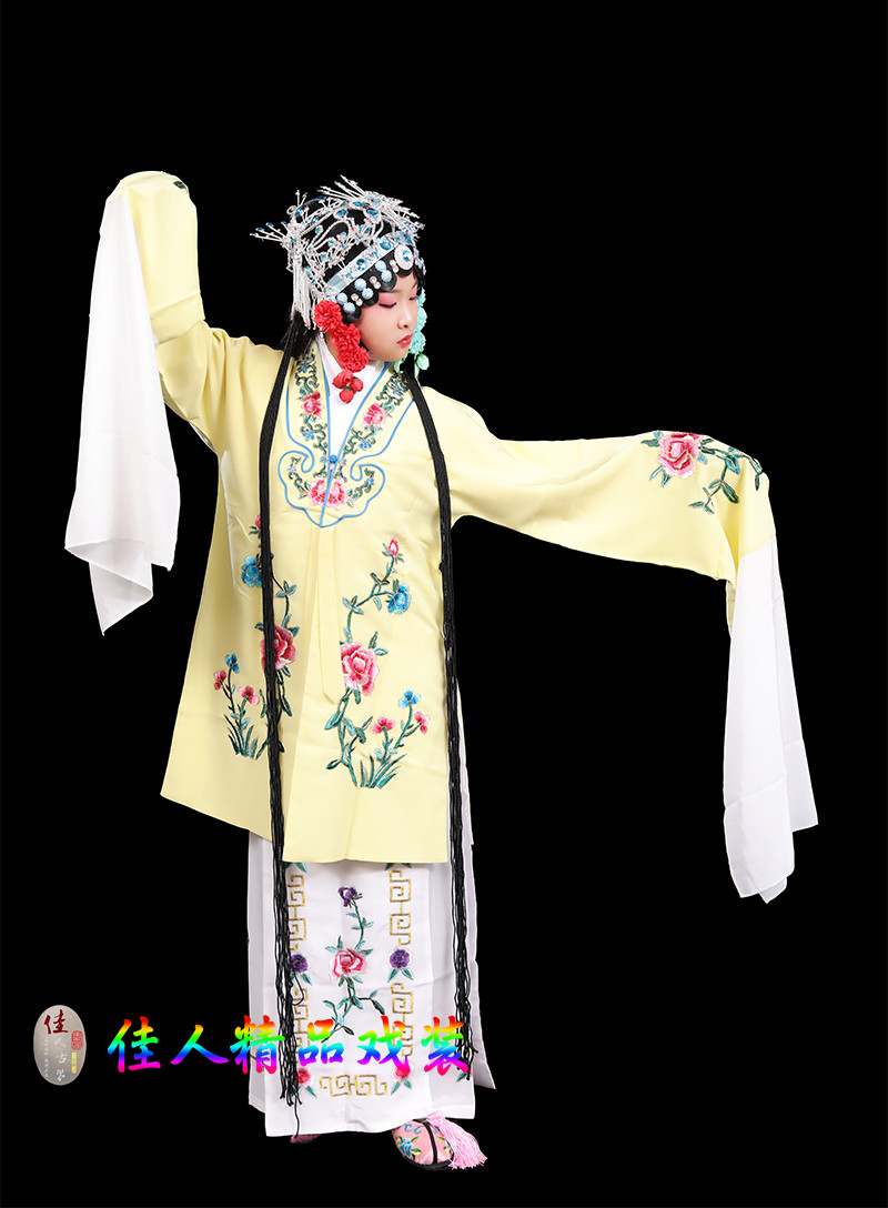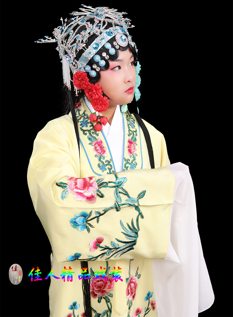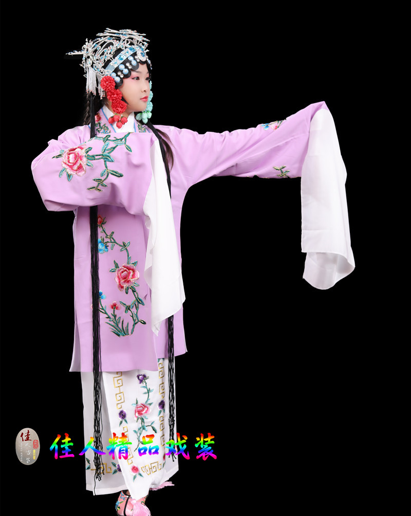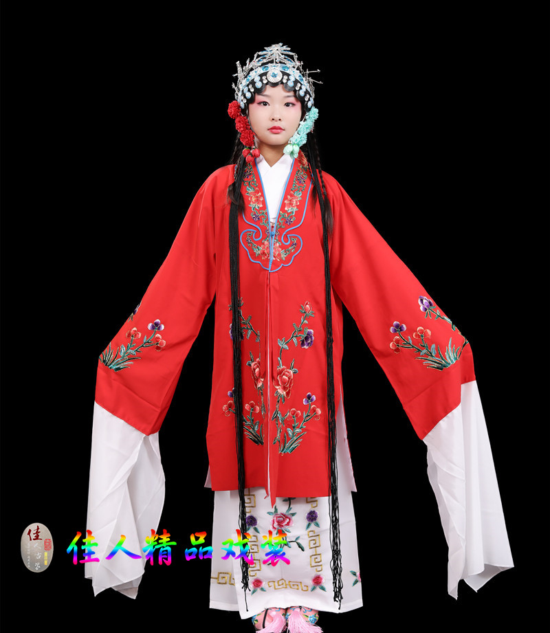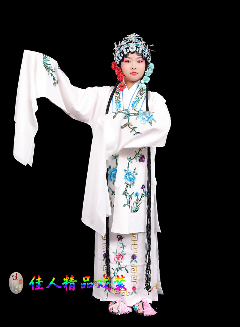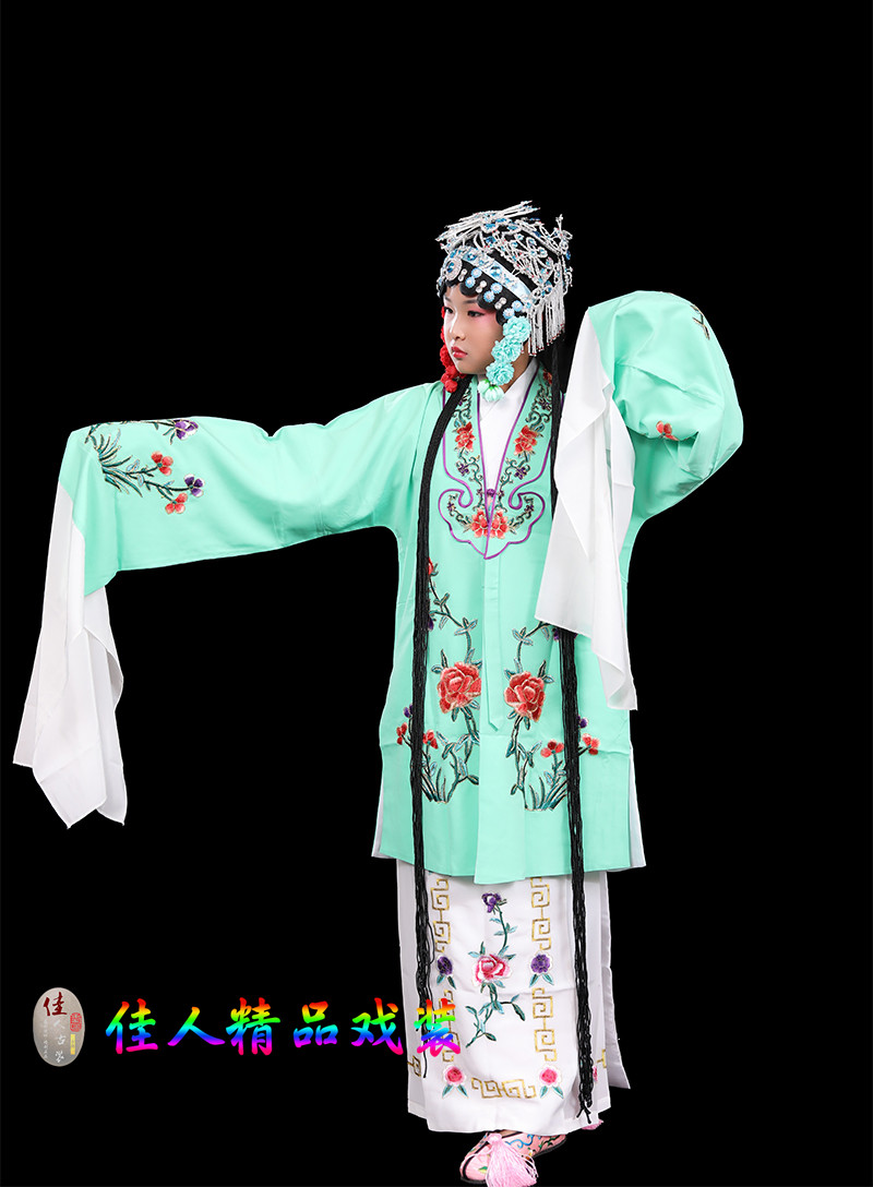 Children's Traditional Chinese Opera Costume, Peking Opera Ancient Costume, Performance Outfit for Kids, Large Qingyi (Blue Robe) with Water Sleeves, Opera Practice Outfit, Women's Cape