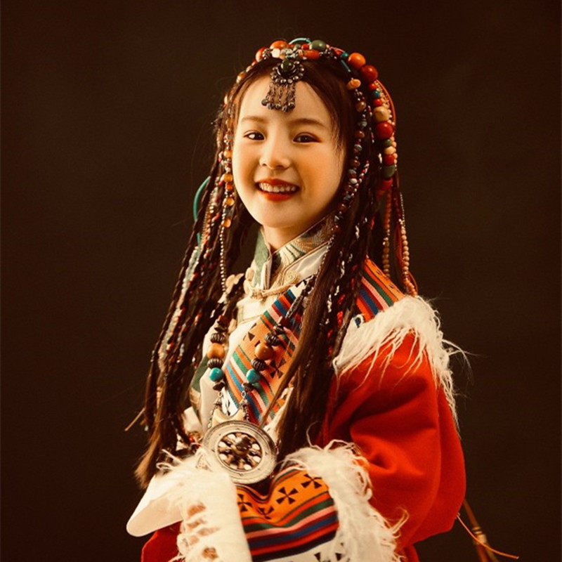 Color Classification Tibetan Clothing (Shirt + Tibetan Robe),Tibetan Clothing + Original Headdress + Wig Braids,Tibetan Clothing + Original Headdress + Wig Braids + Hand-Cranked Props + Similar Necklace