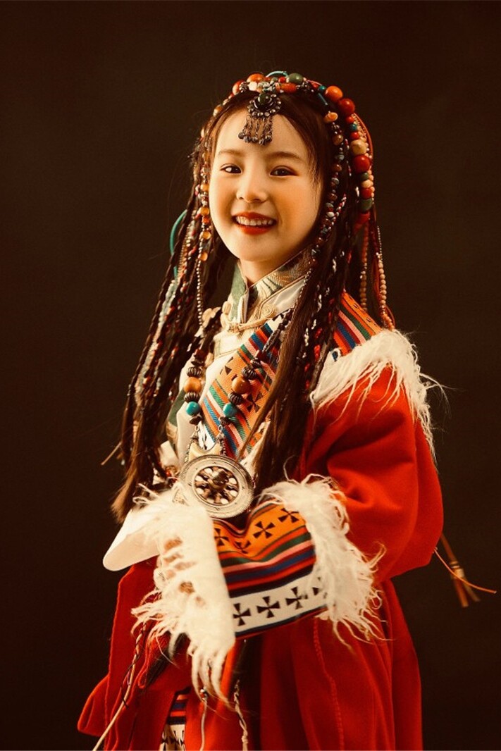 Traditional Tibetan Clothing for Children, Small-Sized Tibetan Robe for Travel Photography, Ethnic Style Outfits for Tibetan Girls, Studio Portraits