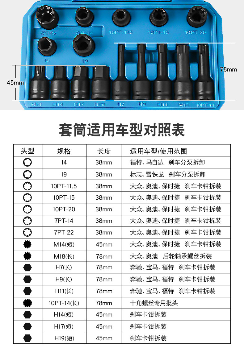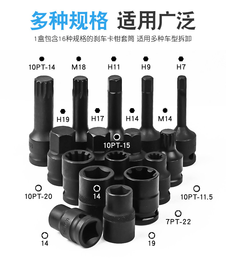 Model 16-Piece Set 1/ 2inch Chromium Molybdenum Steel Car Brake Caliper Brake Cylinder Screw Disassembly and Assembly Socket/Bleed Screw Socket