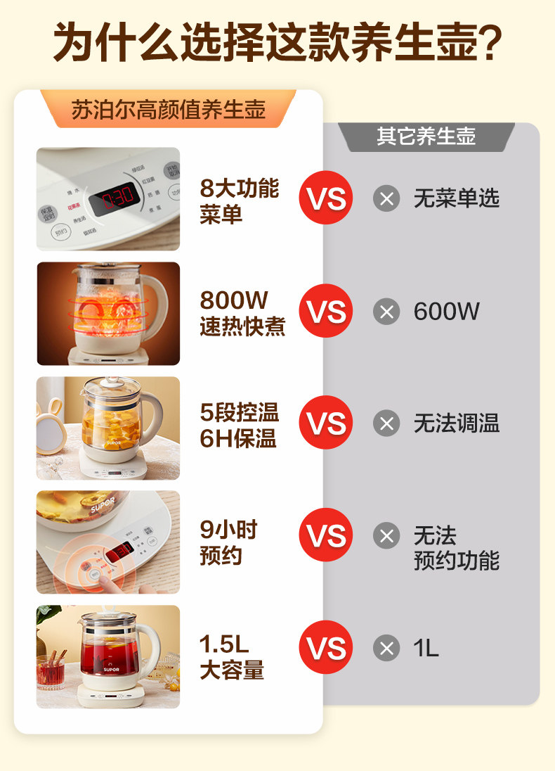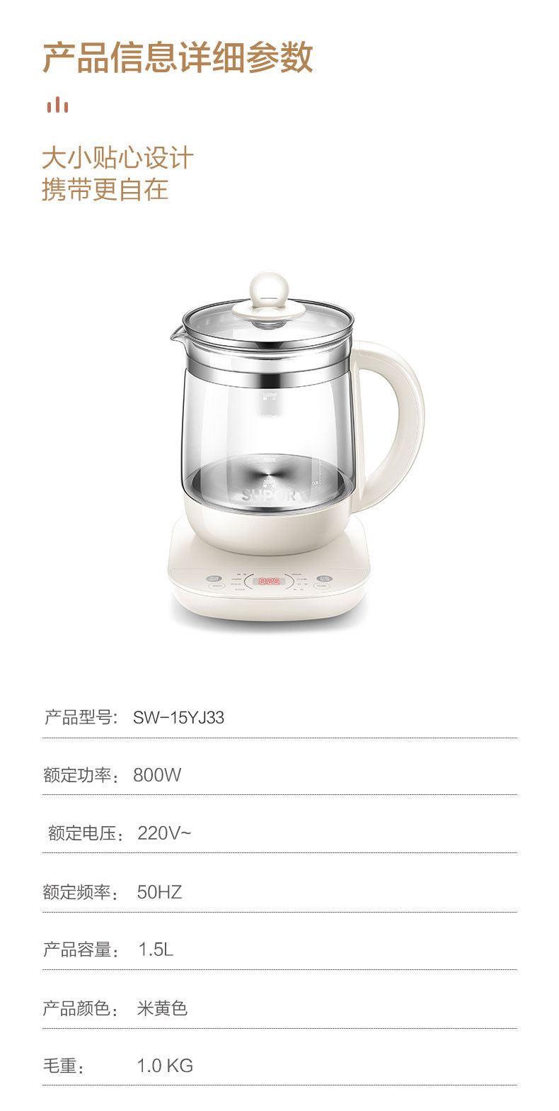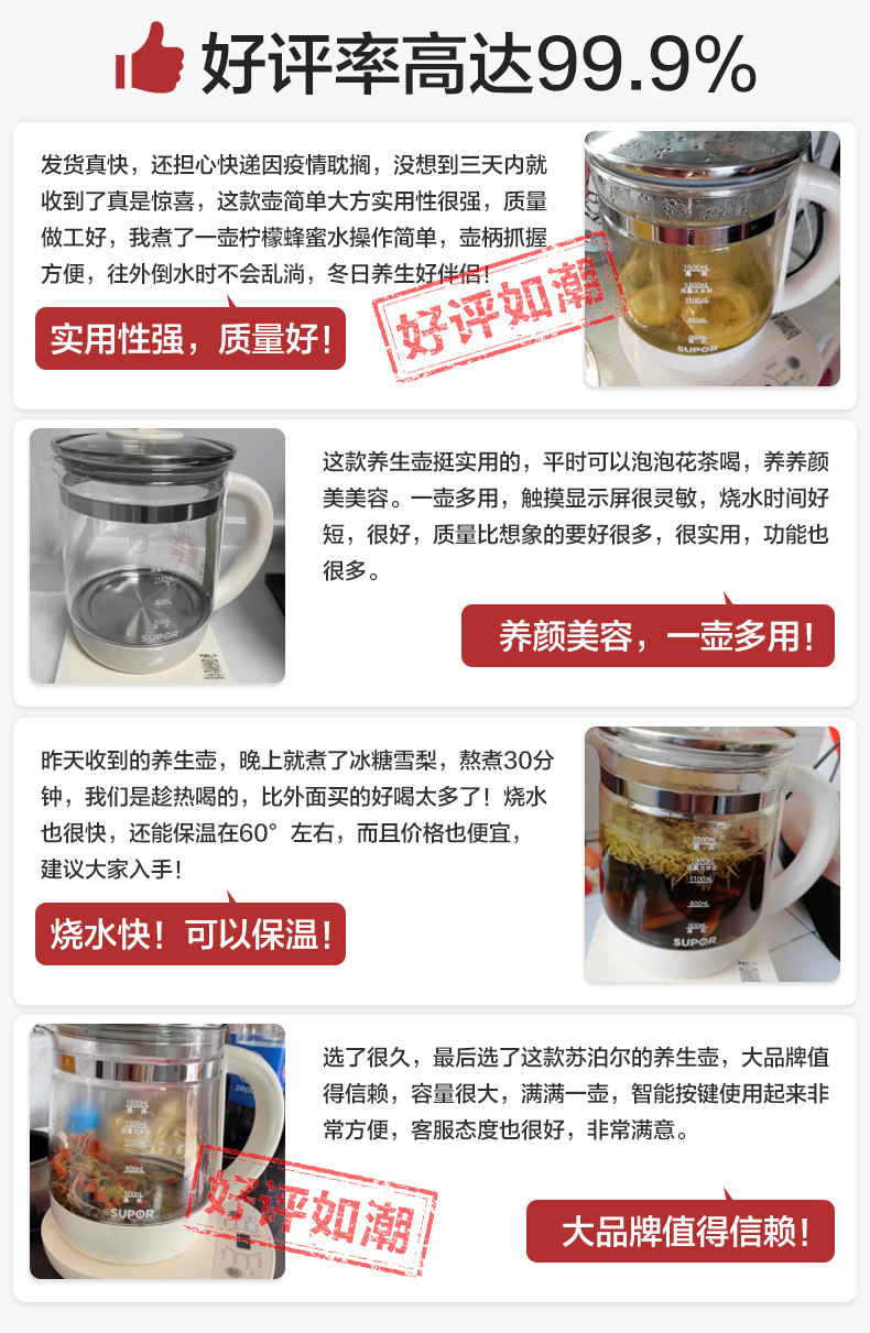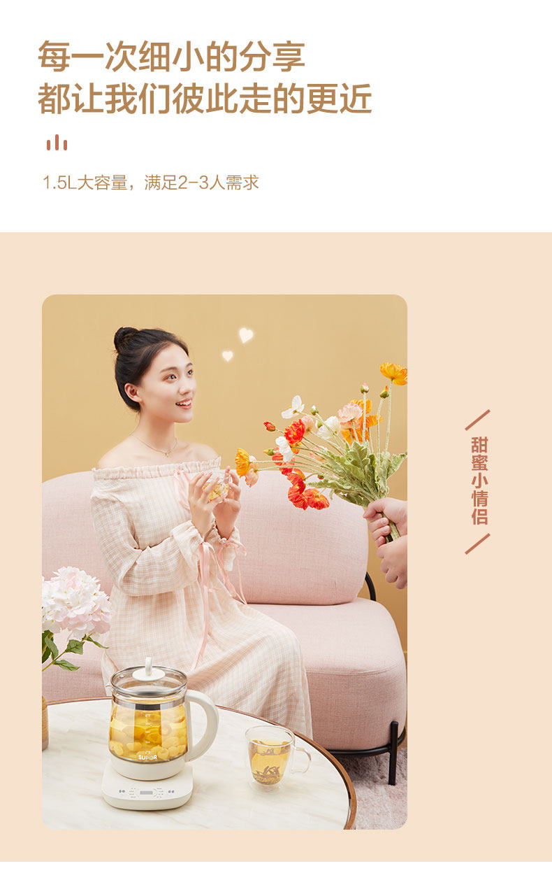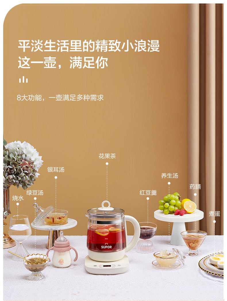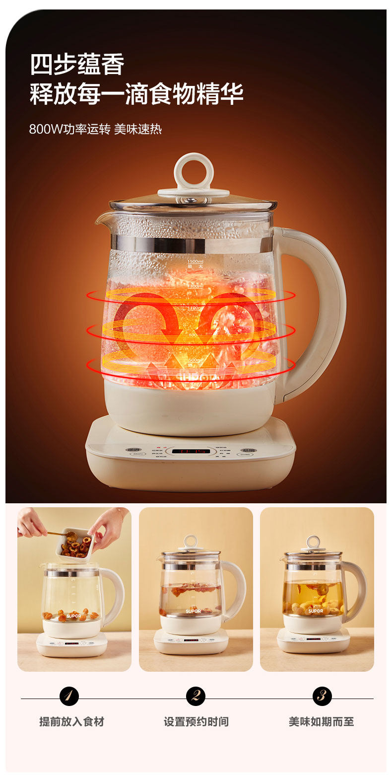 Supor health pot household multifunctional fully automatic glass teapot floral teapot office small kettle