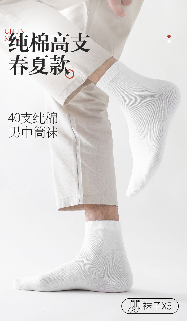 Men's Mid-Calf Socks, Spring and Autumn Style, Genuine Cotton, Odor-Resistant, Sweat-Absorbent, Mid-Calf Cotton Socks, Summer Thin Style, Black and White Men's Sports Socks