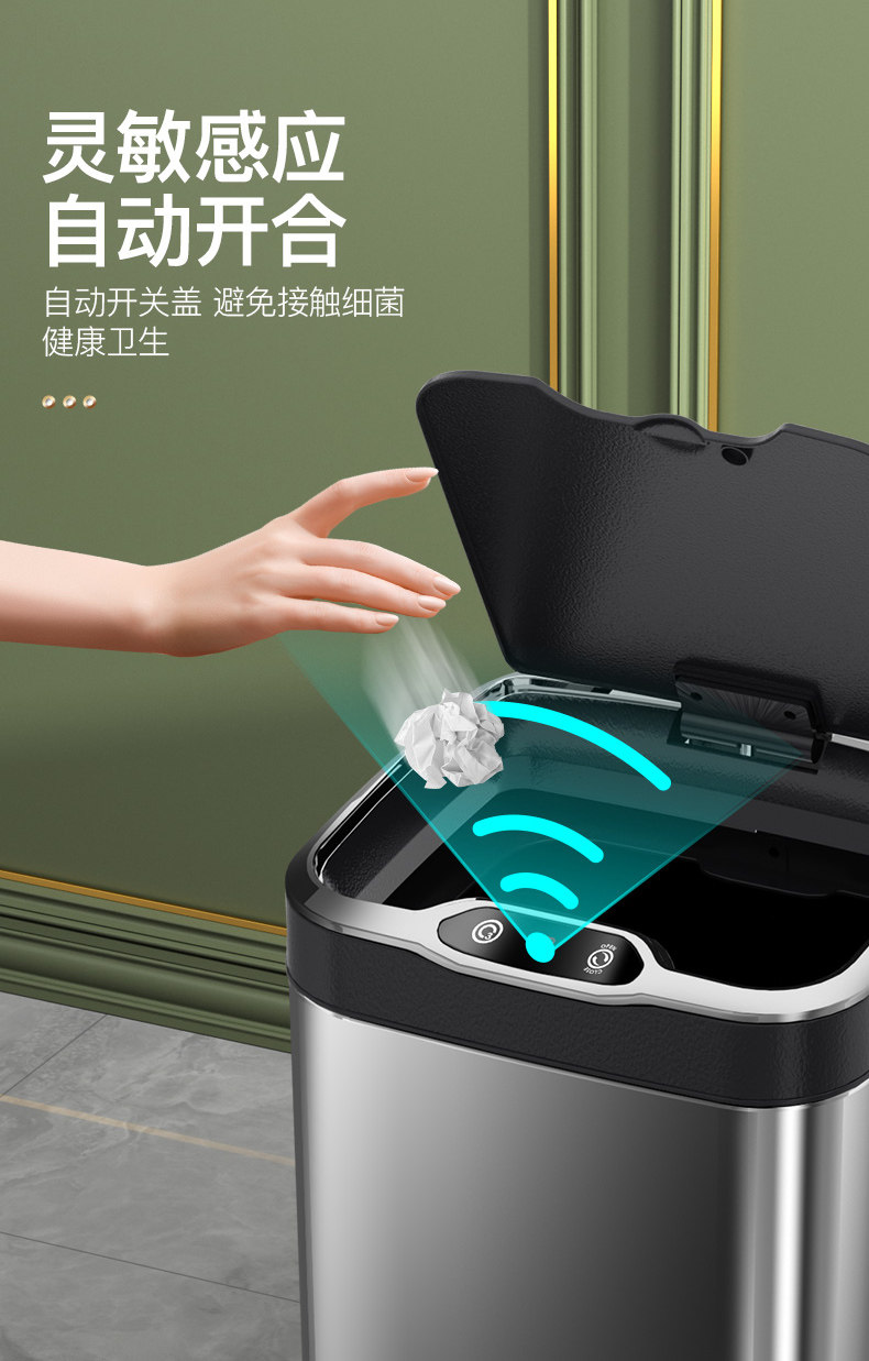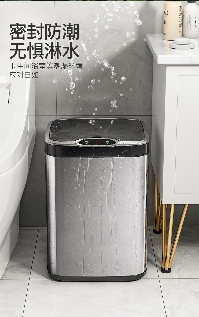 Italian Aisino Smart Sensor Trash Can for Home Use with Lid, Stainless Steel for Bathroom, Kitchen, Living Room