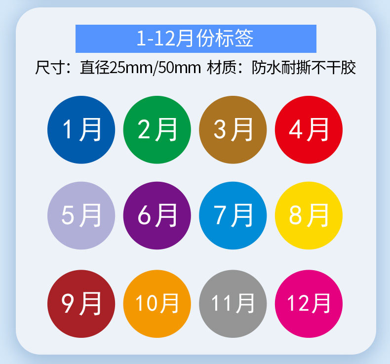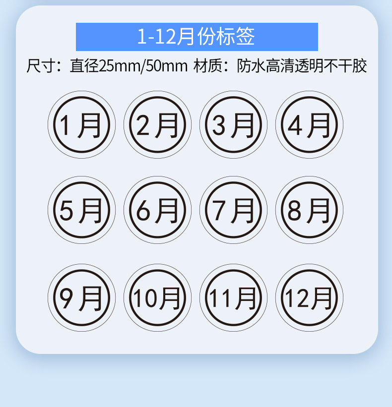 Transparent Round Monthly Label Stickers, Adhesive Colorful 25/50mm Number Stickers, Quarterly Classification January-December, First-In-First-Out Dot Markers, Large Waterproof and Tear-Resistant Material Labels