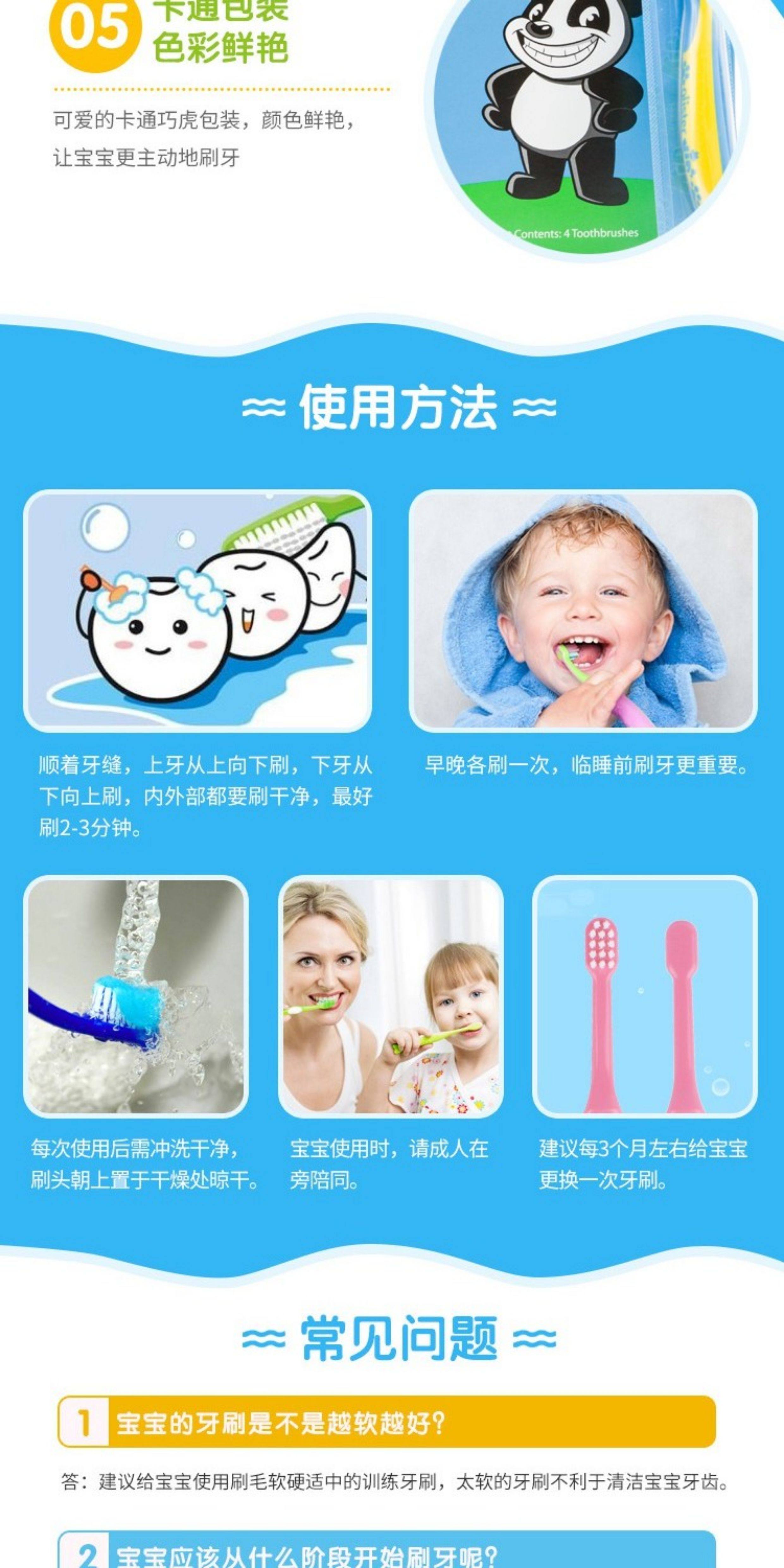Sort by color A children's toothbrush,Children's toothbrushes in a box of 4