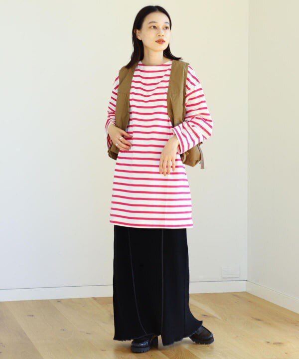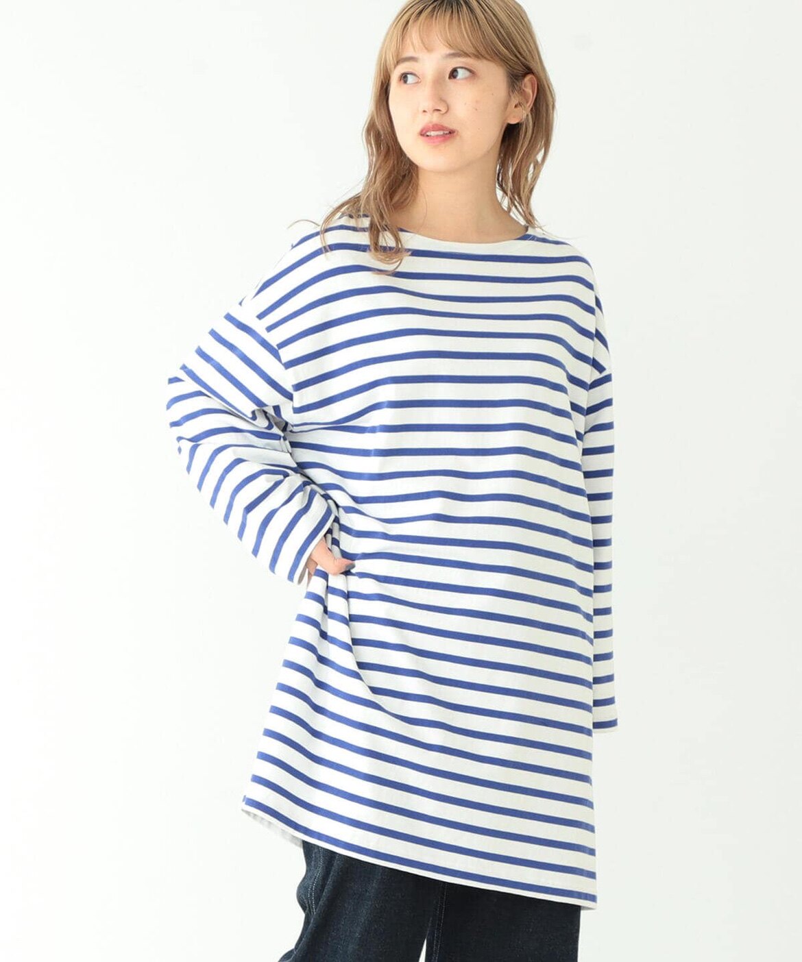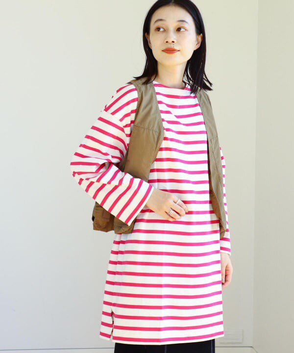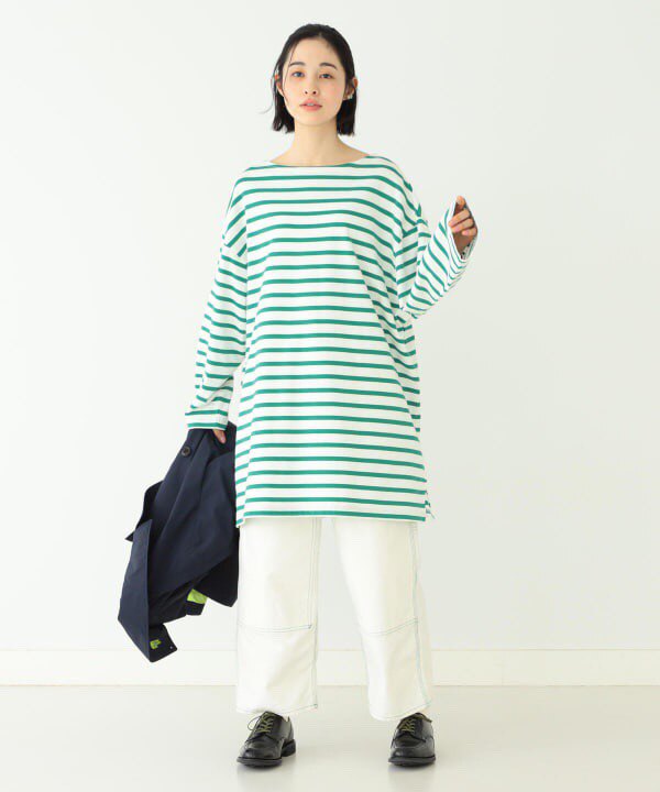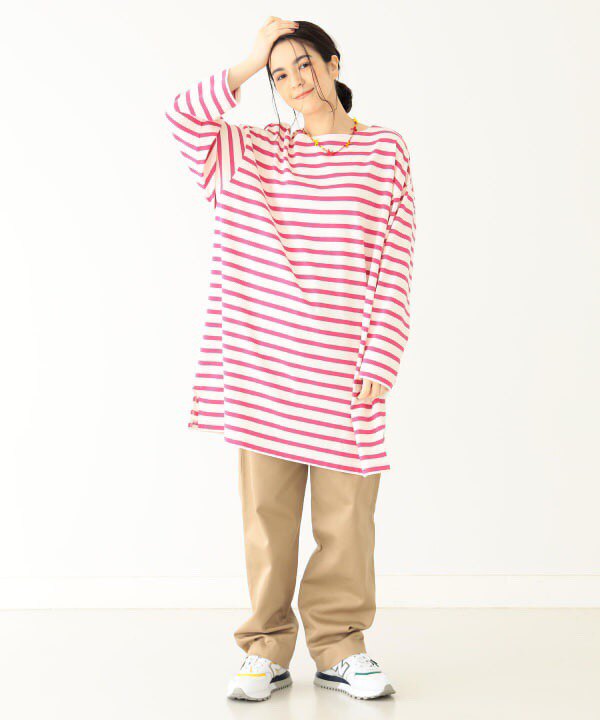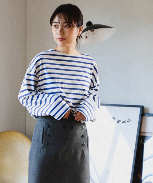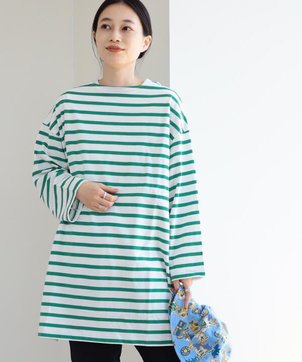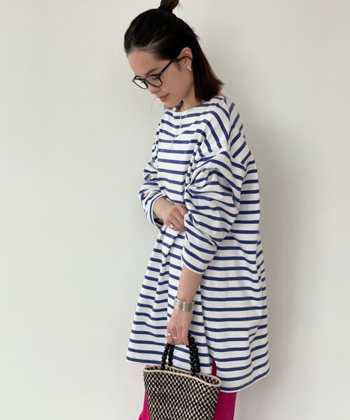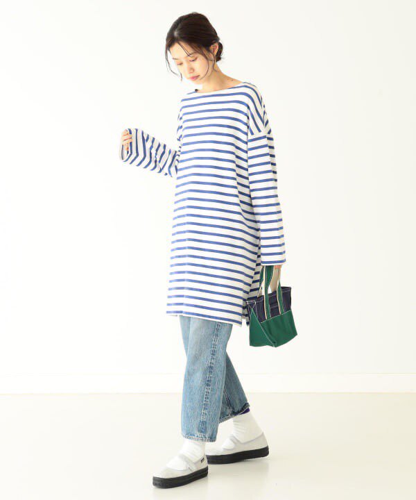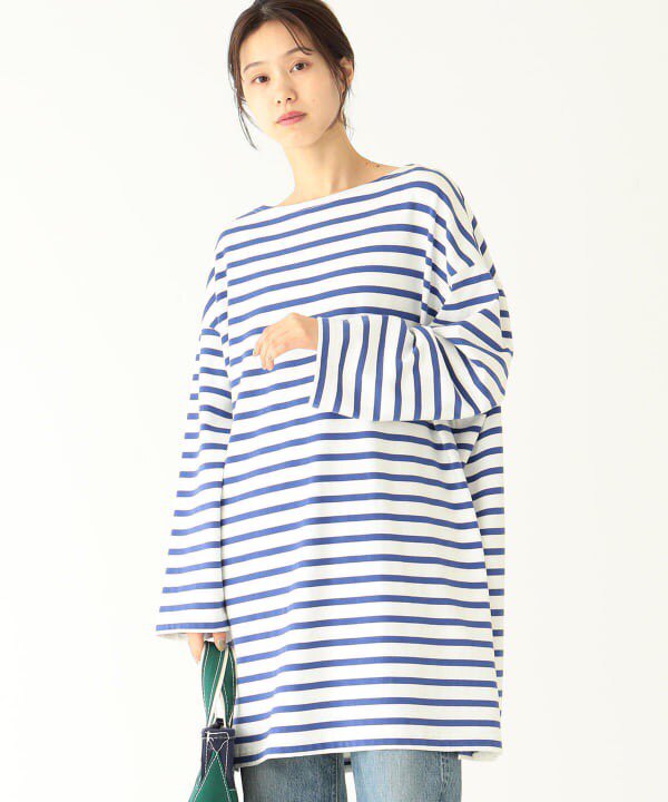 Japanese Vacation Fashion Brand Spring Classic Simple Off-Shoulder Slit Loose Striped Women's Dress Long-Sleeve T-Shirt