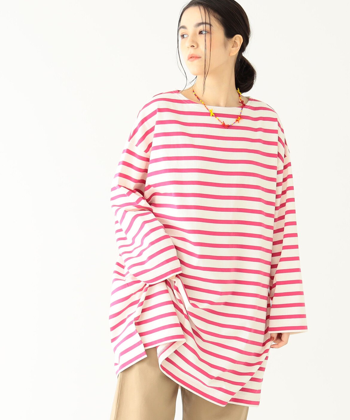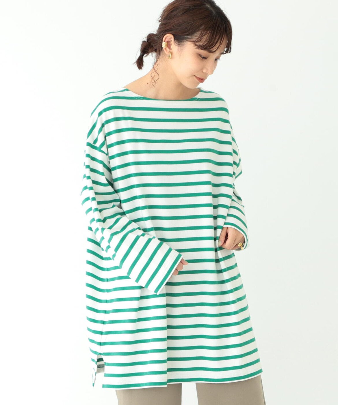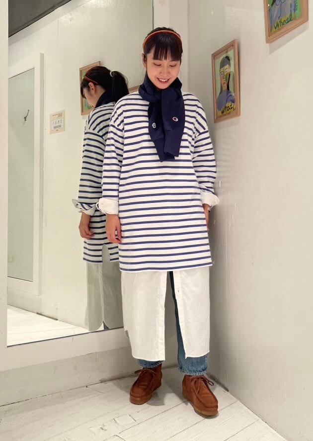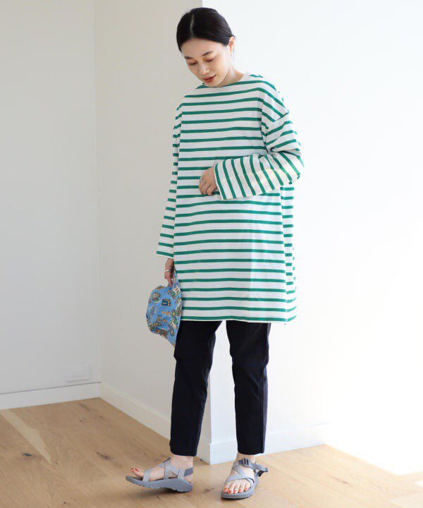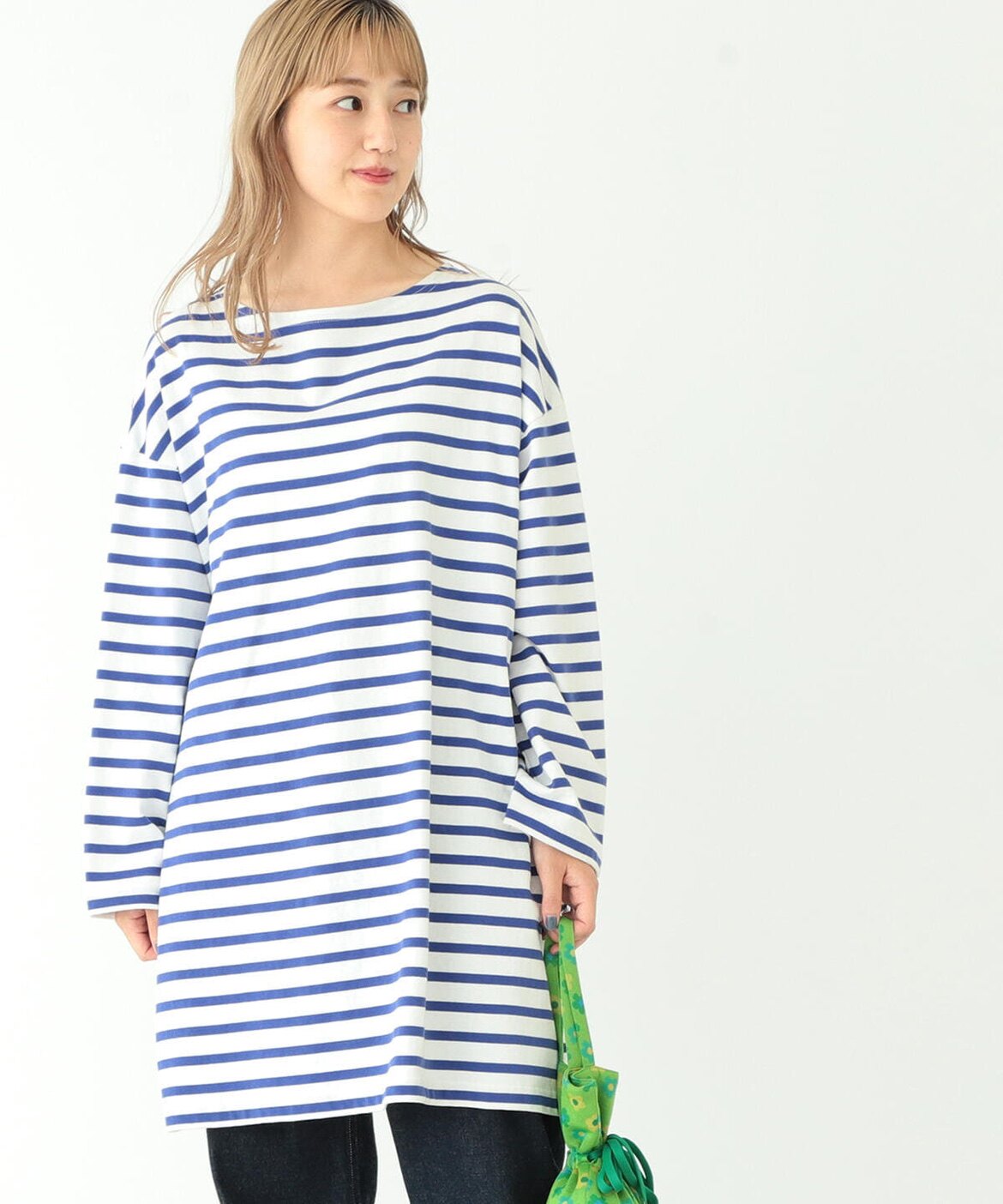 Japanese Vacation Fashion Brand Spring Classic Simple Off-Shoulder Slit Loose Striped Women's Dress Long-Sleeve T-Shirt