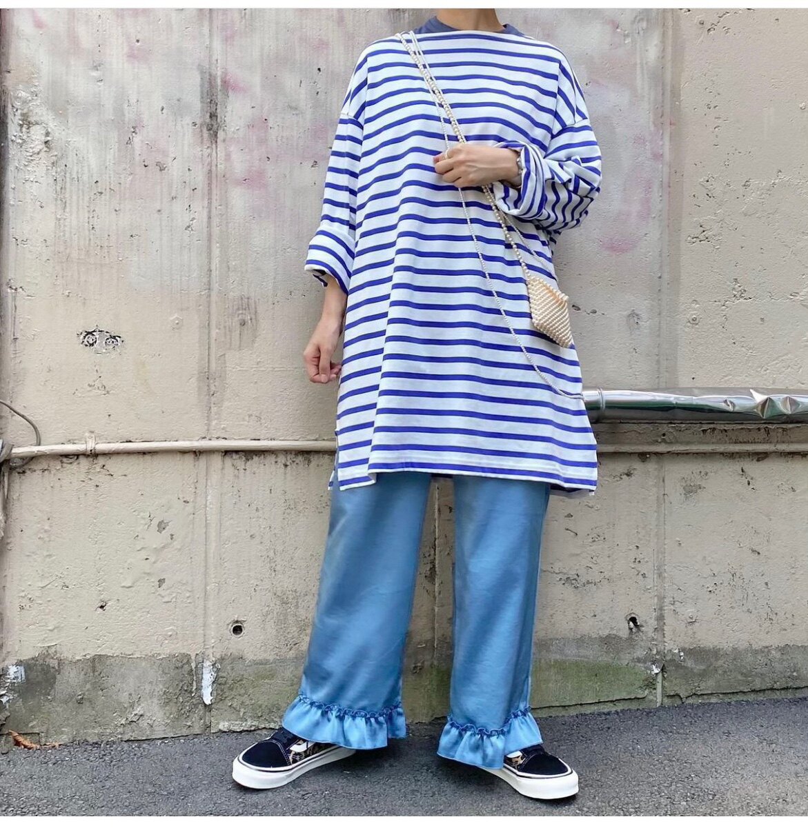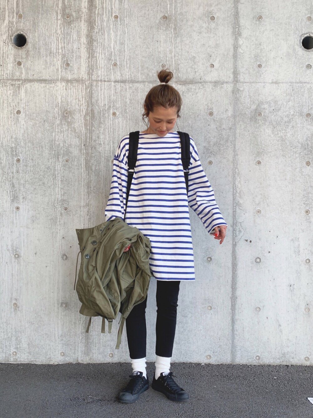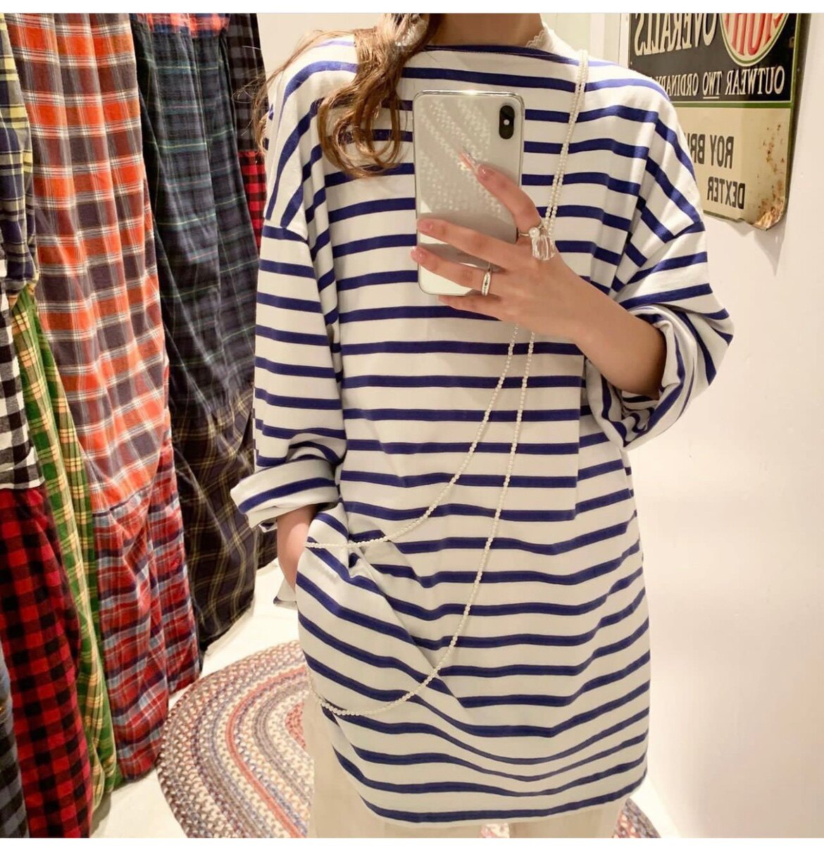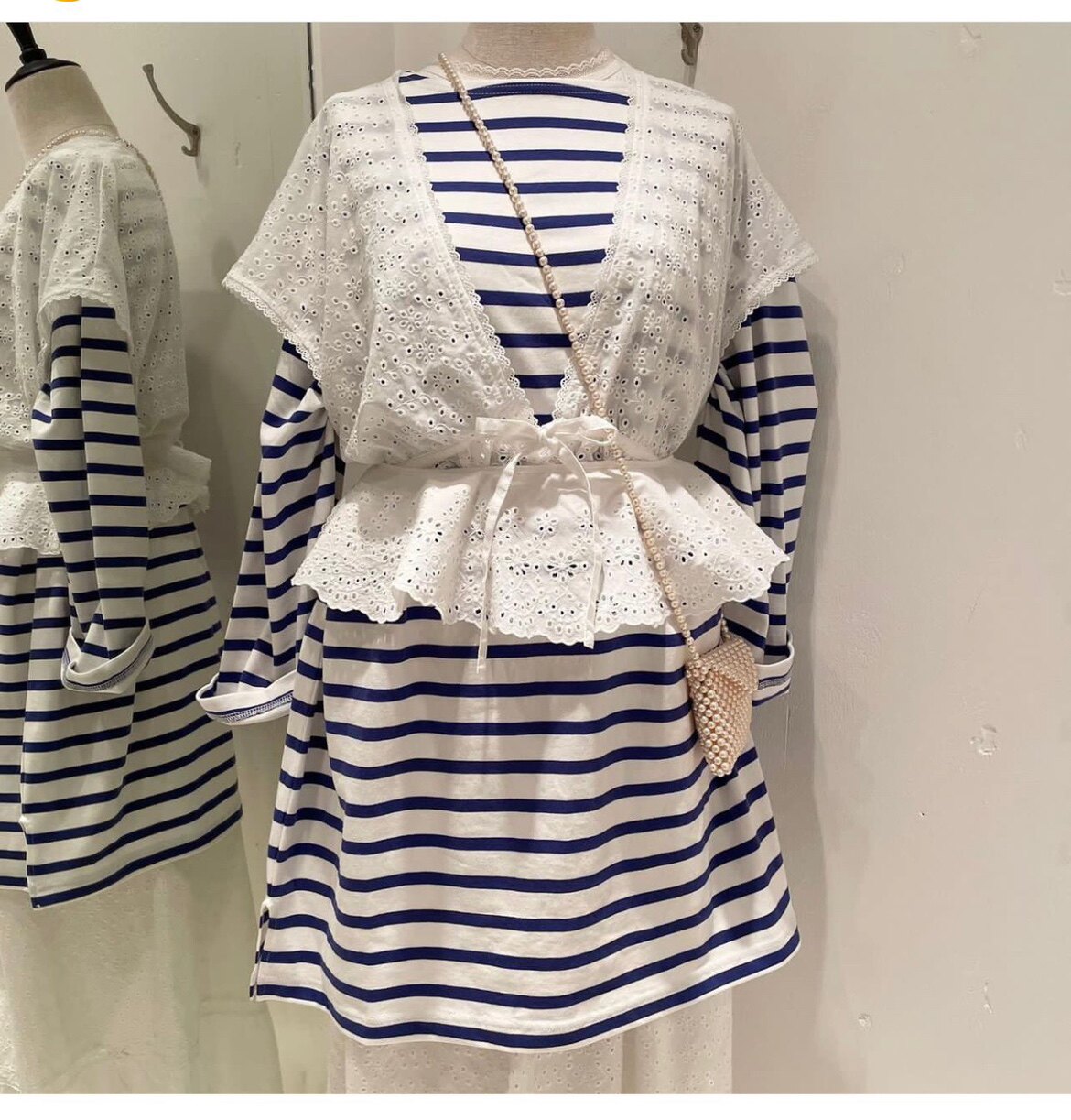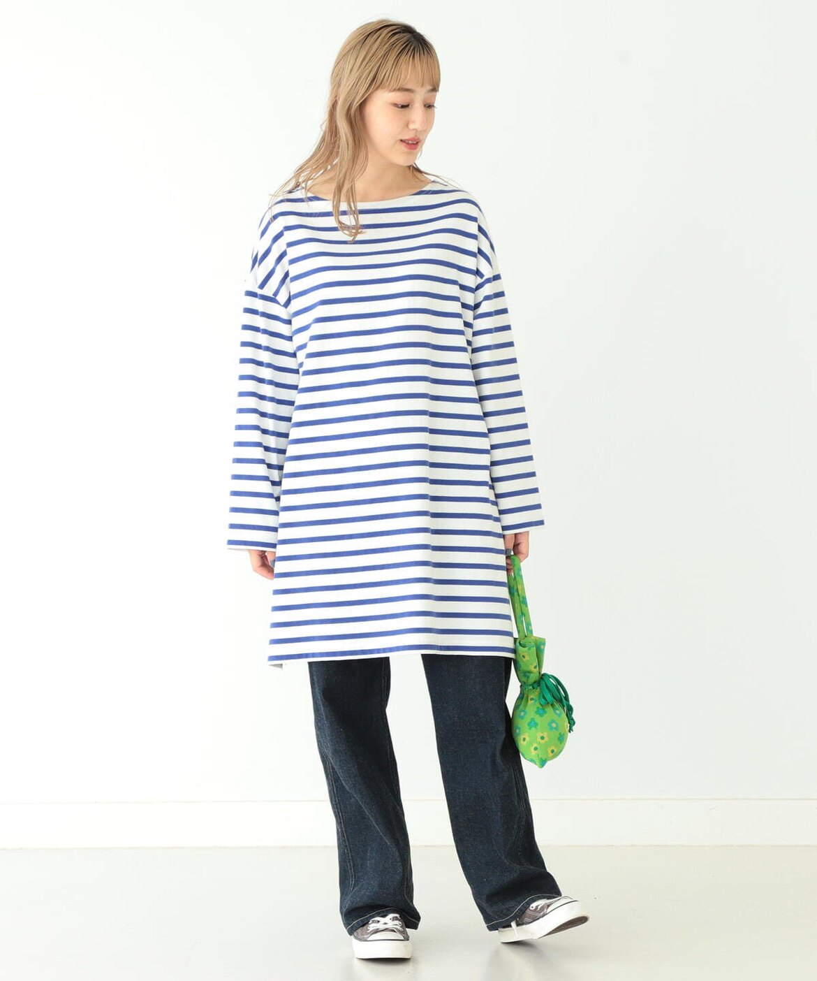 Japanese Vacation Fashion Brand Spring Classic Simple Off-Shoulder Slit Loose Striped Women's Dress Long-Sleeve T-Shirt