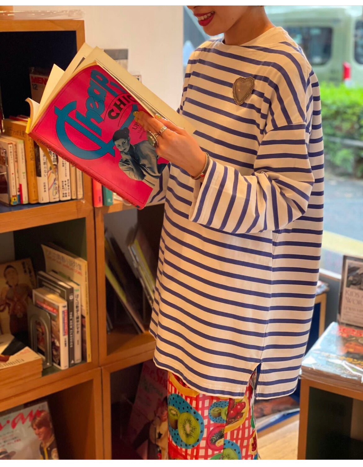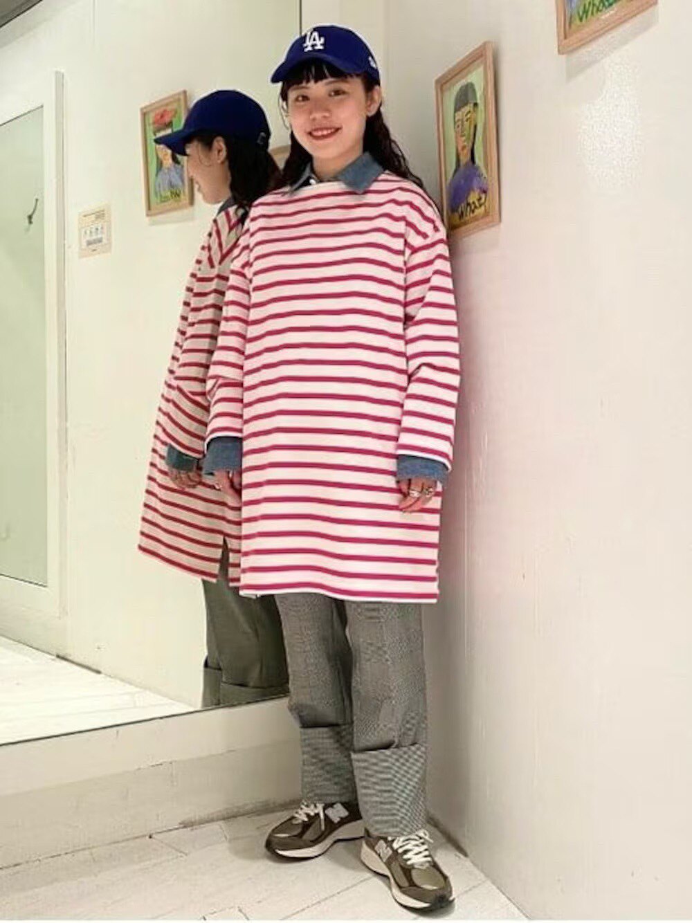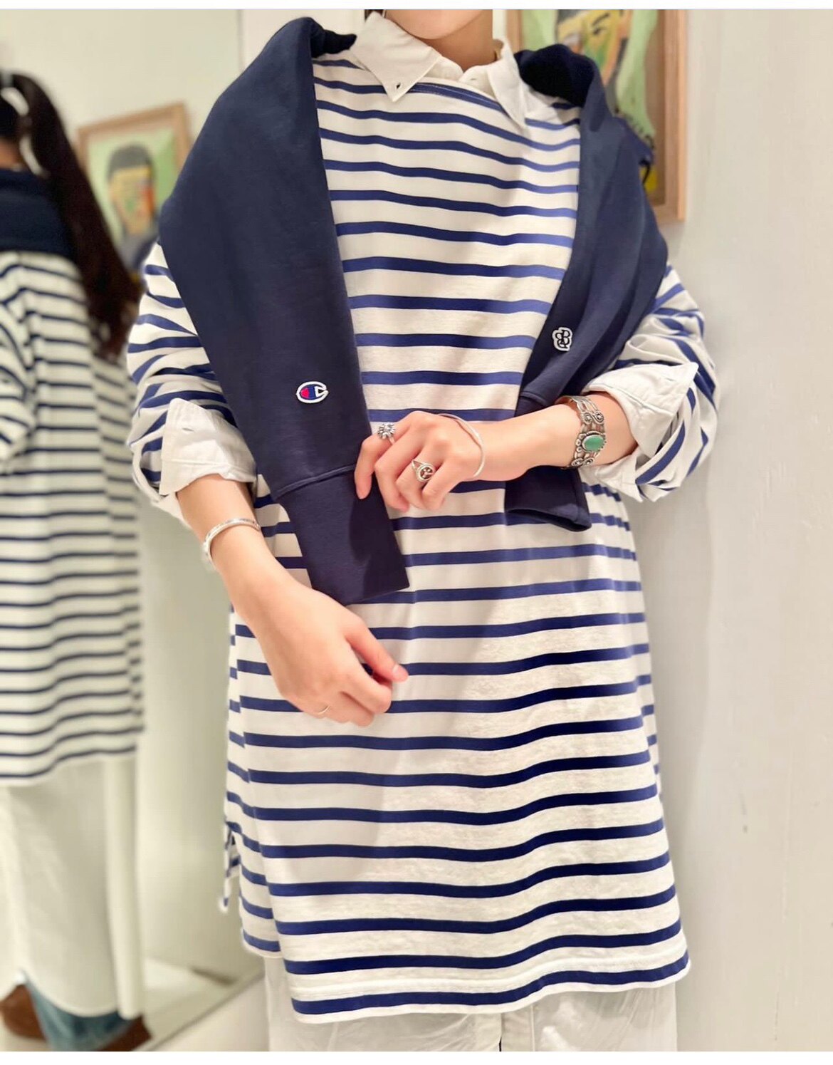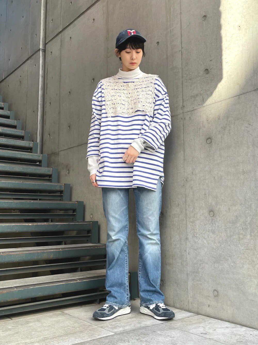 Japanese Vacation Fashion Brand Spring Classic Simple Off-Shoulder Slit Loose Striped Women's Dress Long-Sleeve T-Shirt