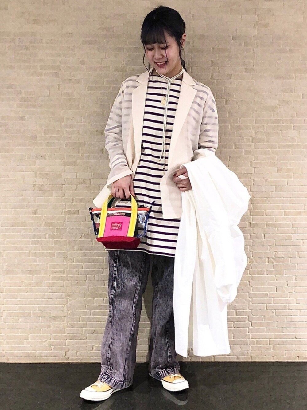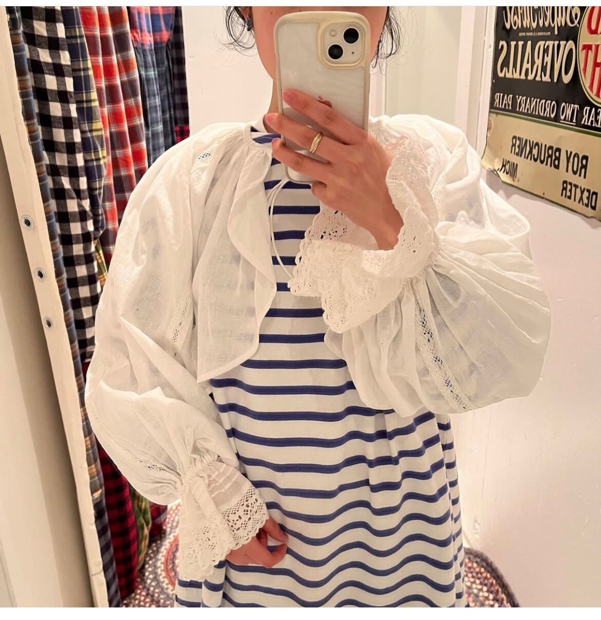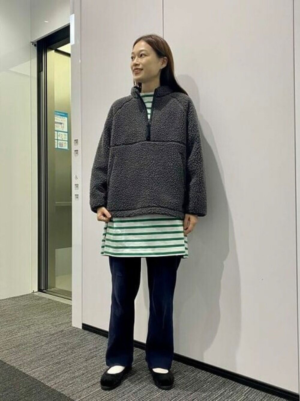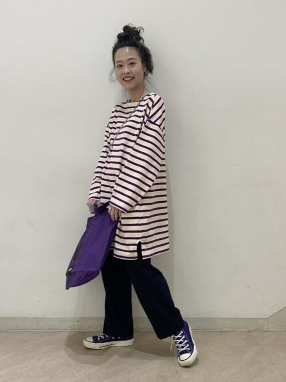 Japanese Vacation Fashion Brand Spring Classic Simple Off-Shoulder Slit Loose Striped Women's Dress Long-Sleeve T-Shirt