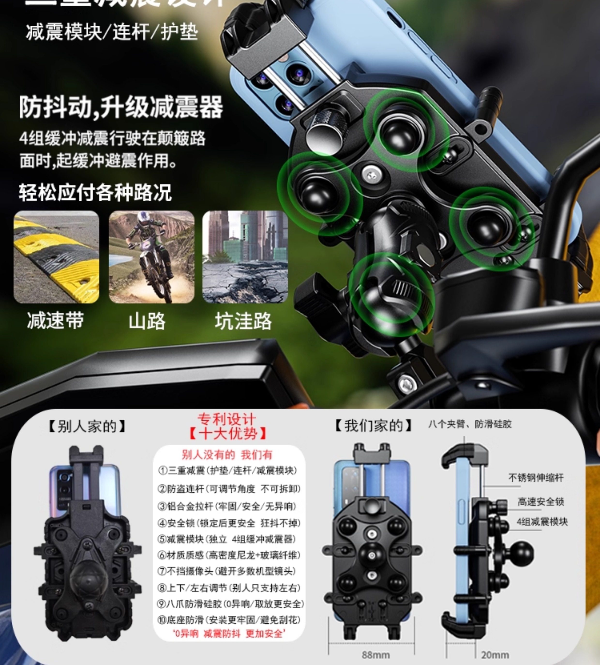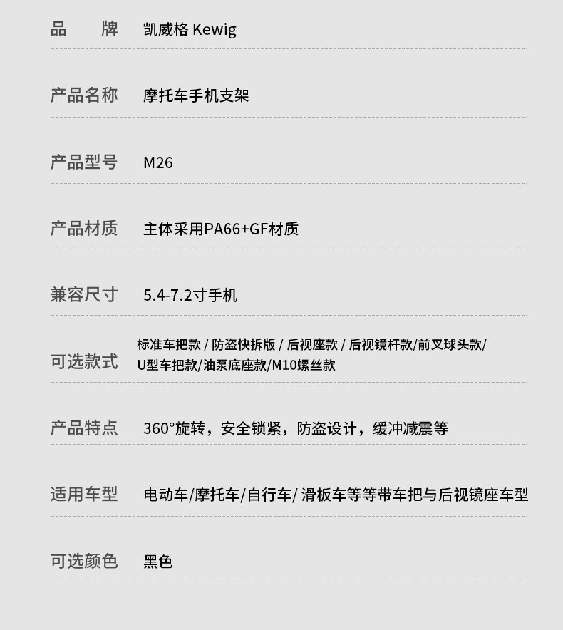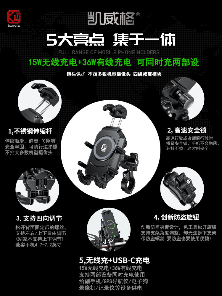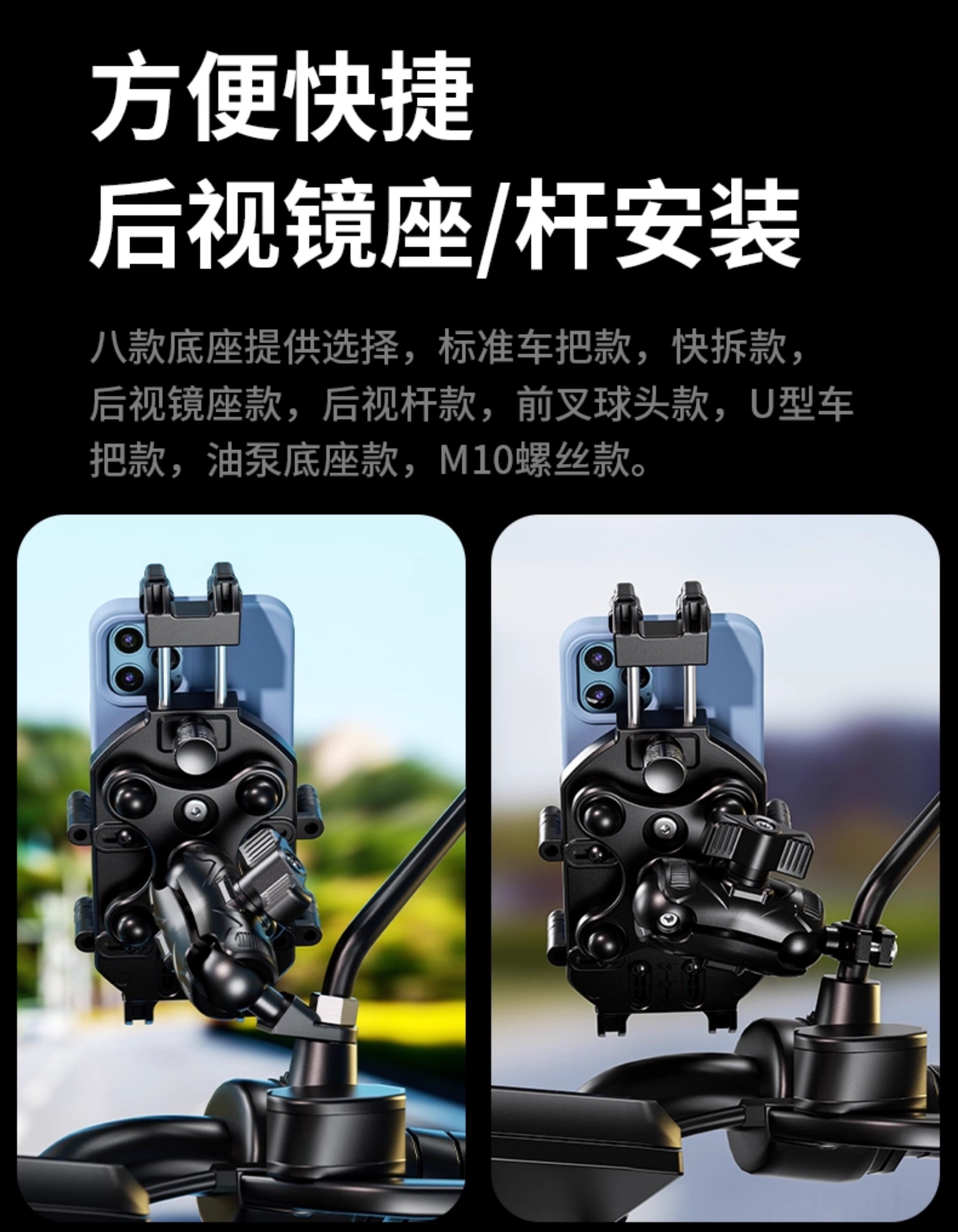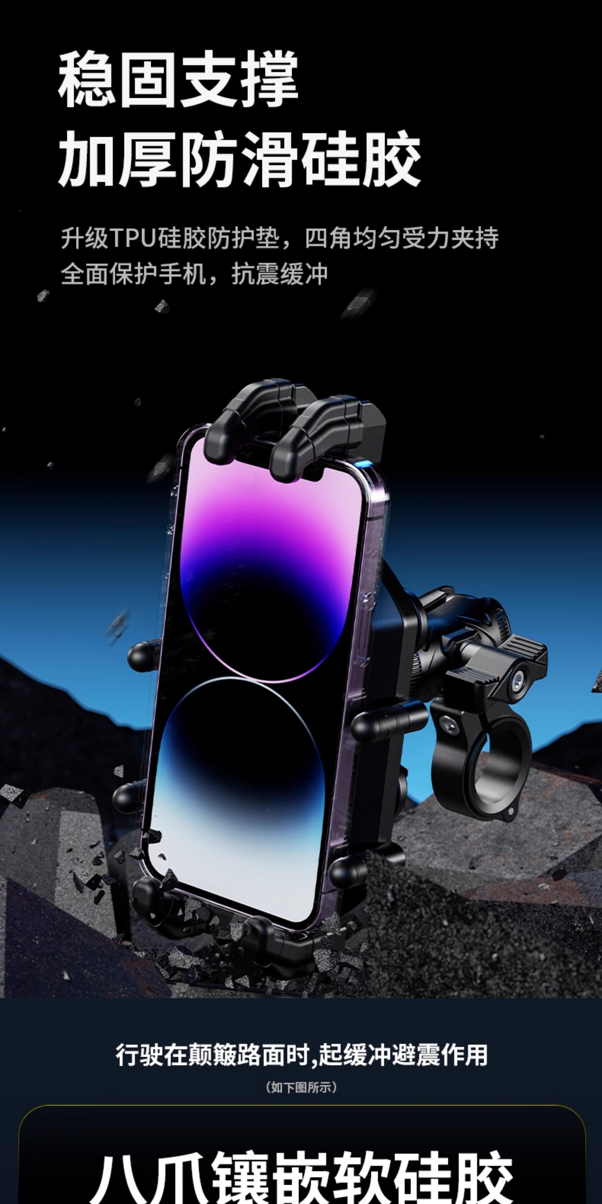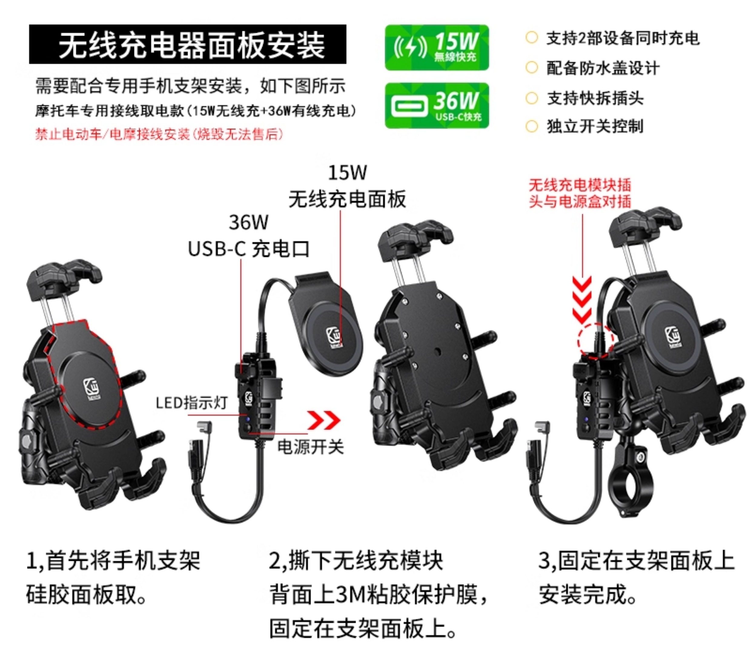 Sort by color Standard handlebar model black* anti-theft clamp arm + stainless steel pull rod + safety lock,Rearview mirror base model black* anti-theft clamp arm + stainless steel pull rod + safety lock,Rearview mirror lever type black* anti-theft clamp arm + stainless steel pull rod + safety lock,Anti-theft clamp model black* anti-theft clamp arm + stainless steel pull rod + safety lock,U-shaped handlebar model black* anti-theft clamp arm + stainless steel pull rod + safety lock,M10 screw type black* anti-theft clamp arm + stainless steel pull rod + safety lock,Oil pump base model black* anti-theft clamp arm + stainless steel pull rod + safety lock,Front fork base model black* anti-theft clamp arm + stainless steel pull rod + safety lock,Standard handlebar style, colorful* anti-theft clamp arm + stainless steel pull rod + safety lock,Rearview mirror base color* anti-theft clamp arm + stainless steel pull rod + safety lock,Rearview mirror lever color* anti-theft clamp arm + stainless steel pull rod + safety lock,Anti-theft clamp style, colorful* anti-theft clamp arm + stainless steel pull rod + safety lock,Motorcycle charging version, standard handlebar model, 15W wireless charging + 36W wired charging,Motorcycle charging version rearview mirror base model 15W wireless charging + 36W wired charging,Motorcycle charging version rearview mirror pole type 15W wireless charging + 36W wired charging,Motorcycle charging version, anti-theft powerful clip, 15W wireless charging + 36W wired charging,Motorcycle charging version, anti-theft powerful clip, 15W wireless charging + 36W wired charging,Motorcycle charging version U-shaped handlebar model 15W wireless charging + 36W wired charging,Motorcycle charging version M10 screw type 15W wireless charging + 36W wired charging,Motorcycle charging version, oil pump base model, 15W wireless charging + 36W wired charging,Motorcycle charging version, front fork base model, 15W wireless charging + 36W wired charging,Motorcycle charging module 15W wireless charging + 36W wired charging,Electric vehicle charging module 15W wireless charging + 36W wired charging,Electric vehicle charging version, standard handlebar model, 15W wireless charging + 36W wired charging,Electric vehicle charging version rearview mirror base model 15W wireless charging + 36W wired charging,Electric vehicle charging version rearview mirror pole type 15W wireless charging + 36W wired charging,Electric vehicle charging version, anti-theft clip, 15W wireless charging + 36W wired charging,Electric vehicle charging version U-shaped handlebar model 15W wireless charging + 36W wired charging,Electric vehicle charging version M10 screw type 15W wireless charging + 36W wired charging,Electric vehicle charging version, oil pump base model, 15W wireless charging + 36W wired charging,Electric vehicle charging version, front fork base model, 15W wireless charging + 36W wired charging