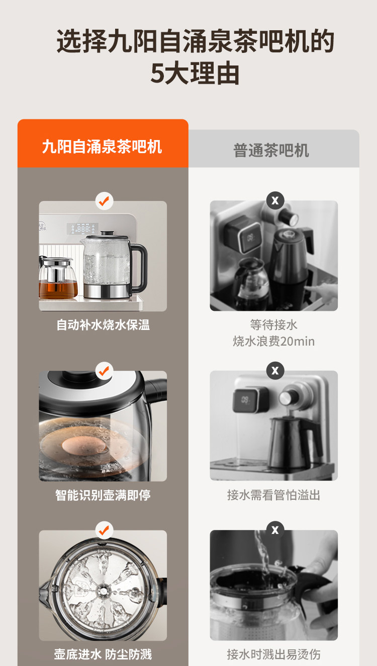 Joyoung High-End Smart Tea Bar Machine 2026 New Model Fully Automatic Household Water Dispenser with Bottom Water Tank, Anti-Overflow, and Dry Burn Protection