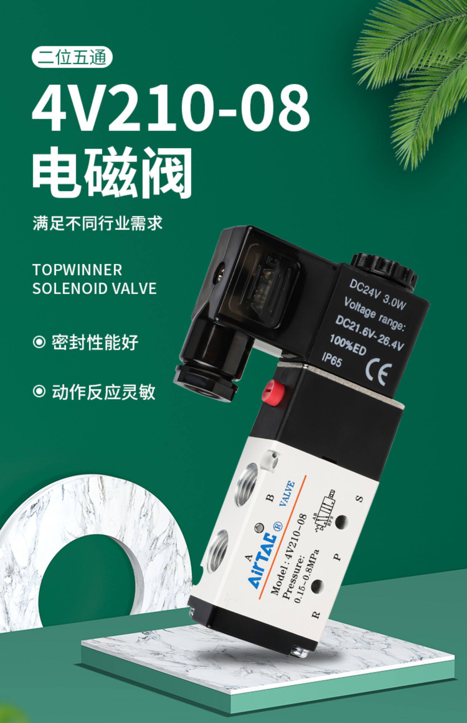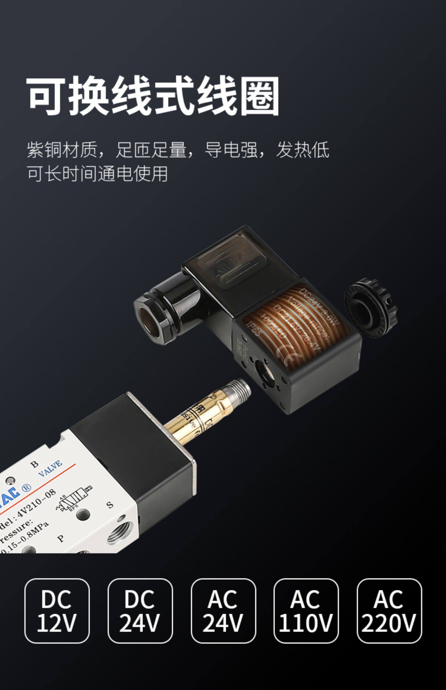 Airtac Electromagnetic Pneumatic Valve 4V210-08 220V Controller Air Valve Directional Valve 24V Electronic Valve Coil