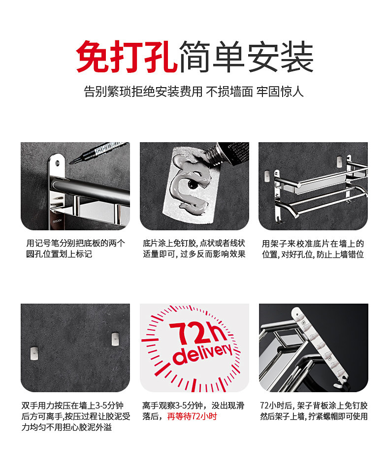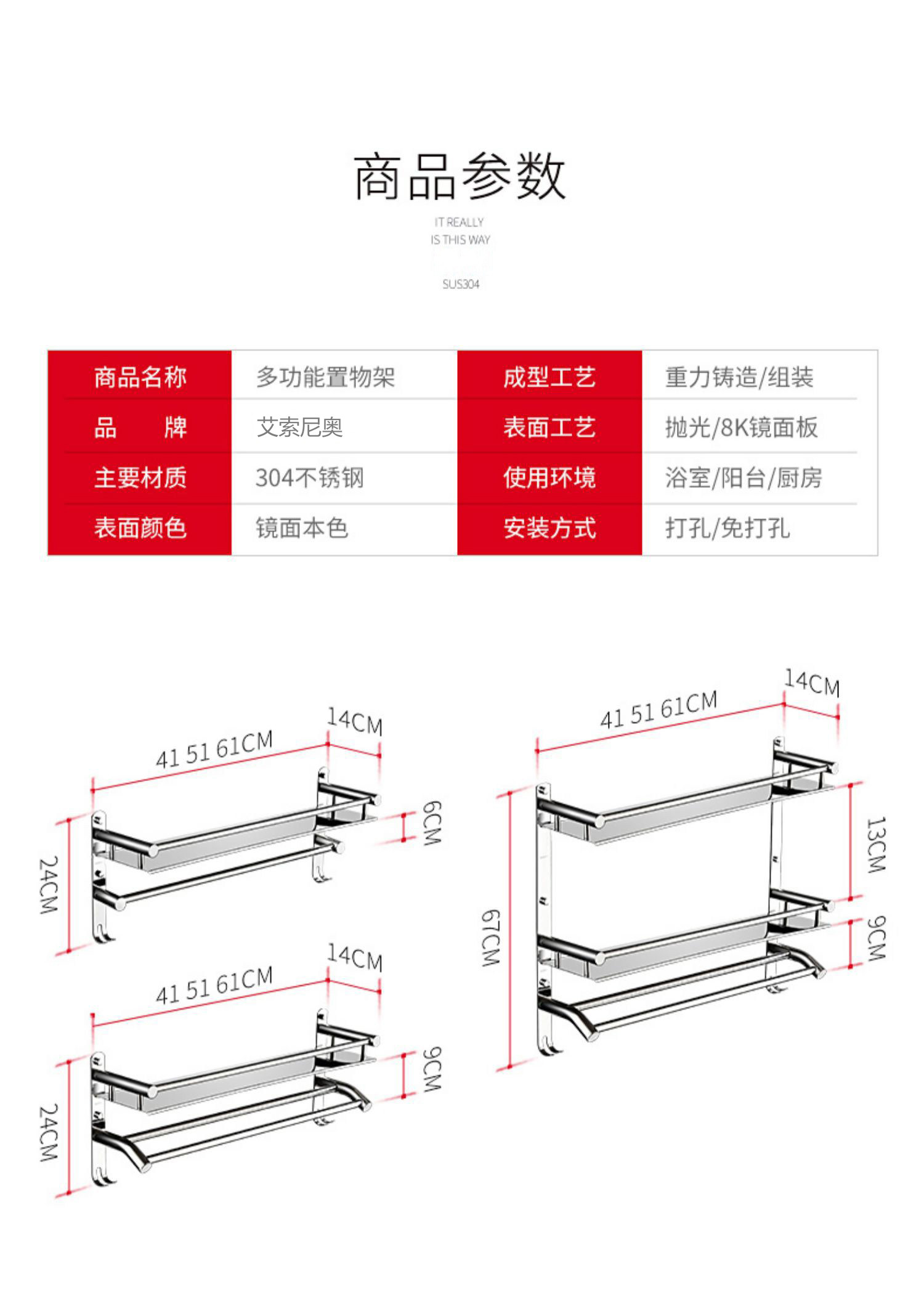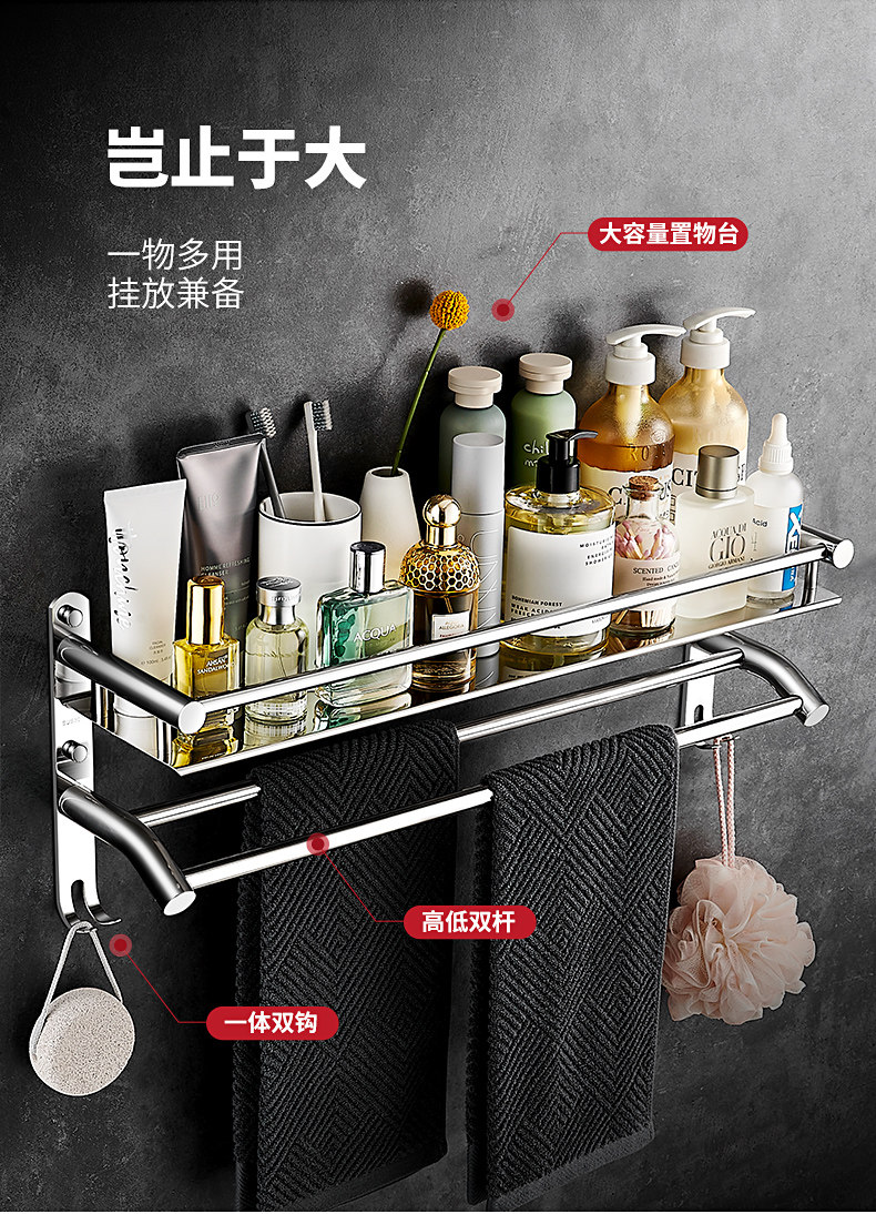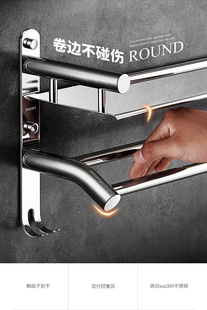Italian Aisino Punch-Free Bathroom Storage Rack 304 Stainless Steel Bathroom Towel Rack Wall-Mounted