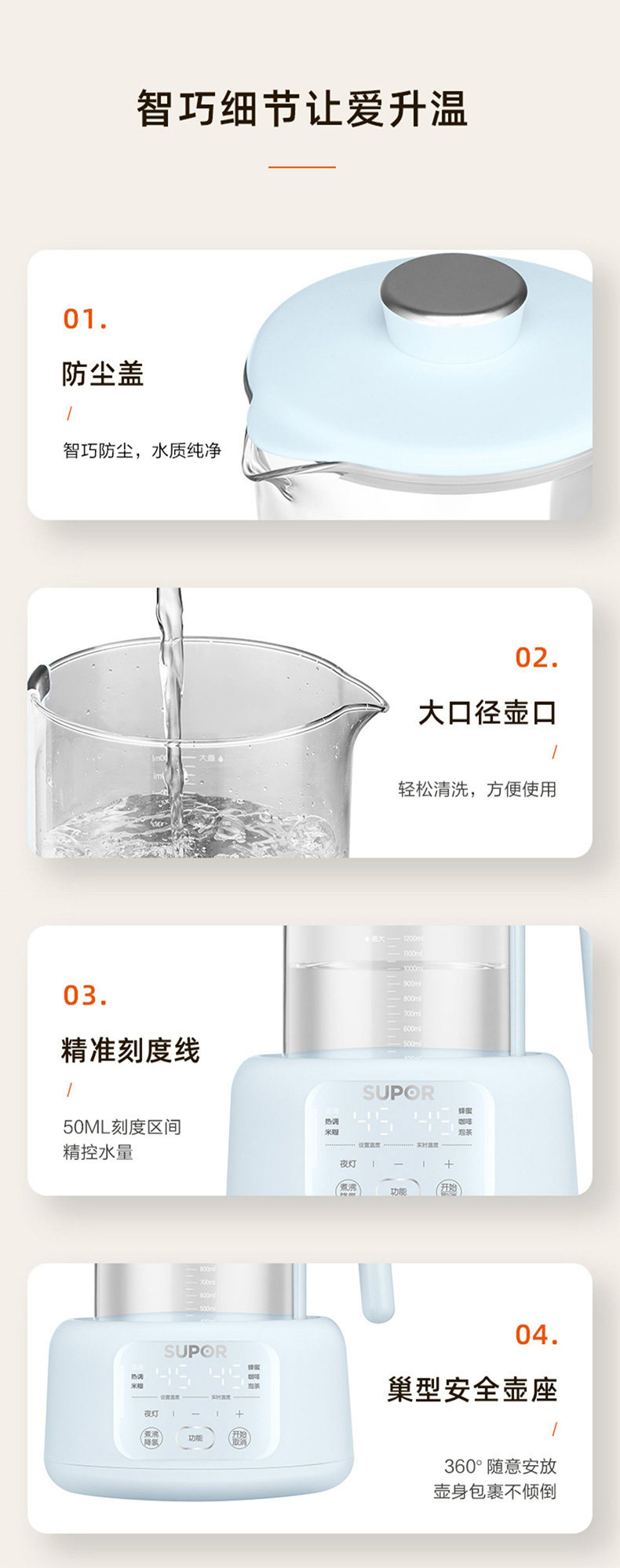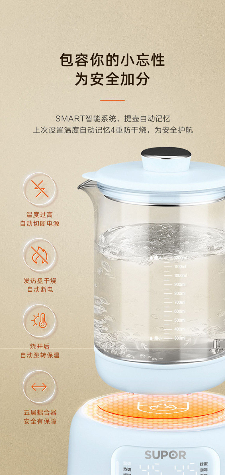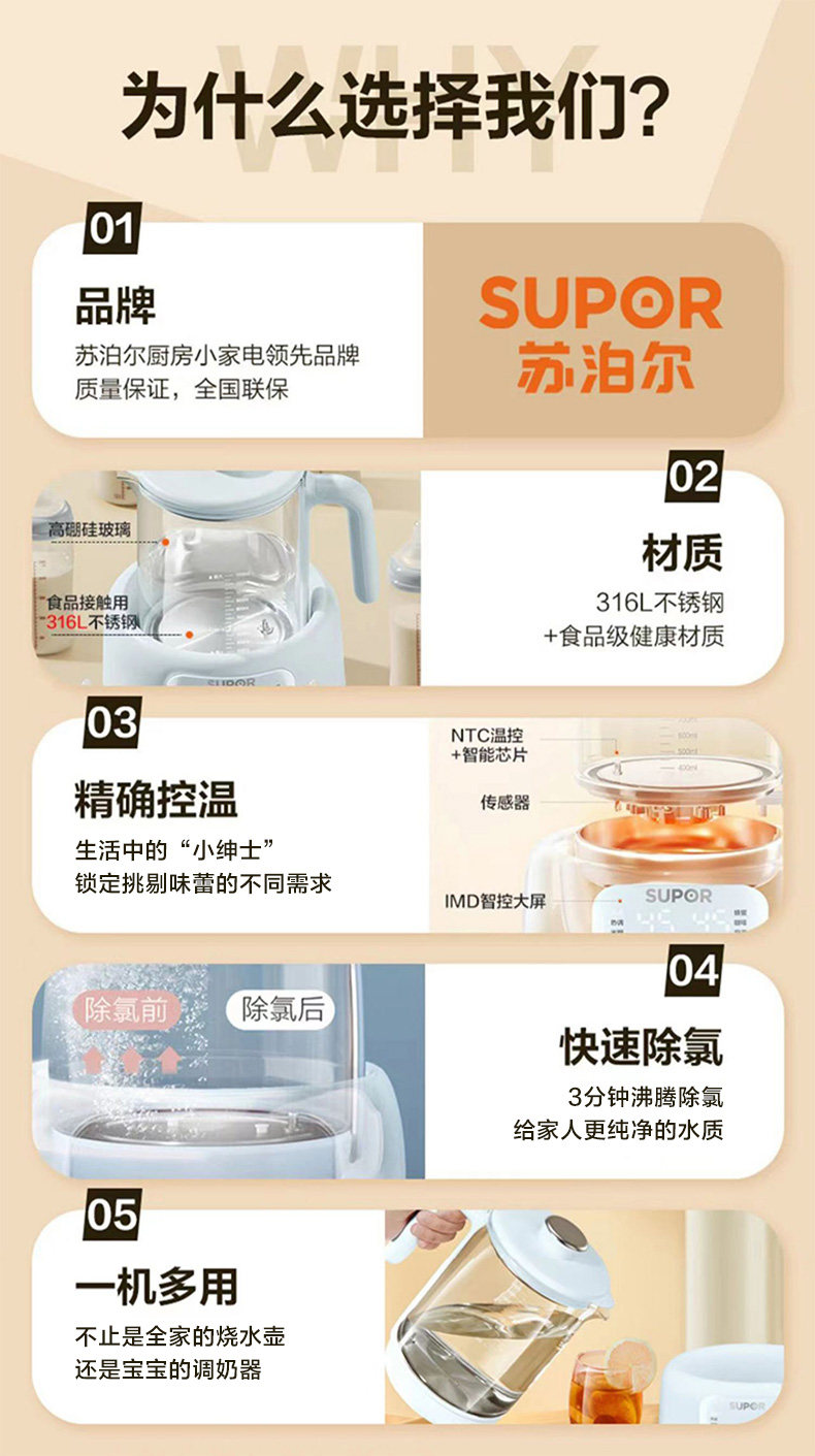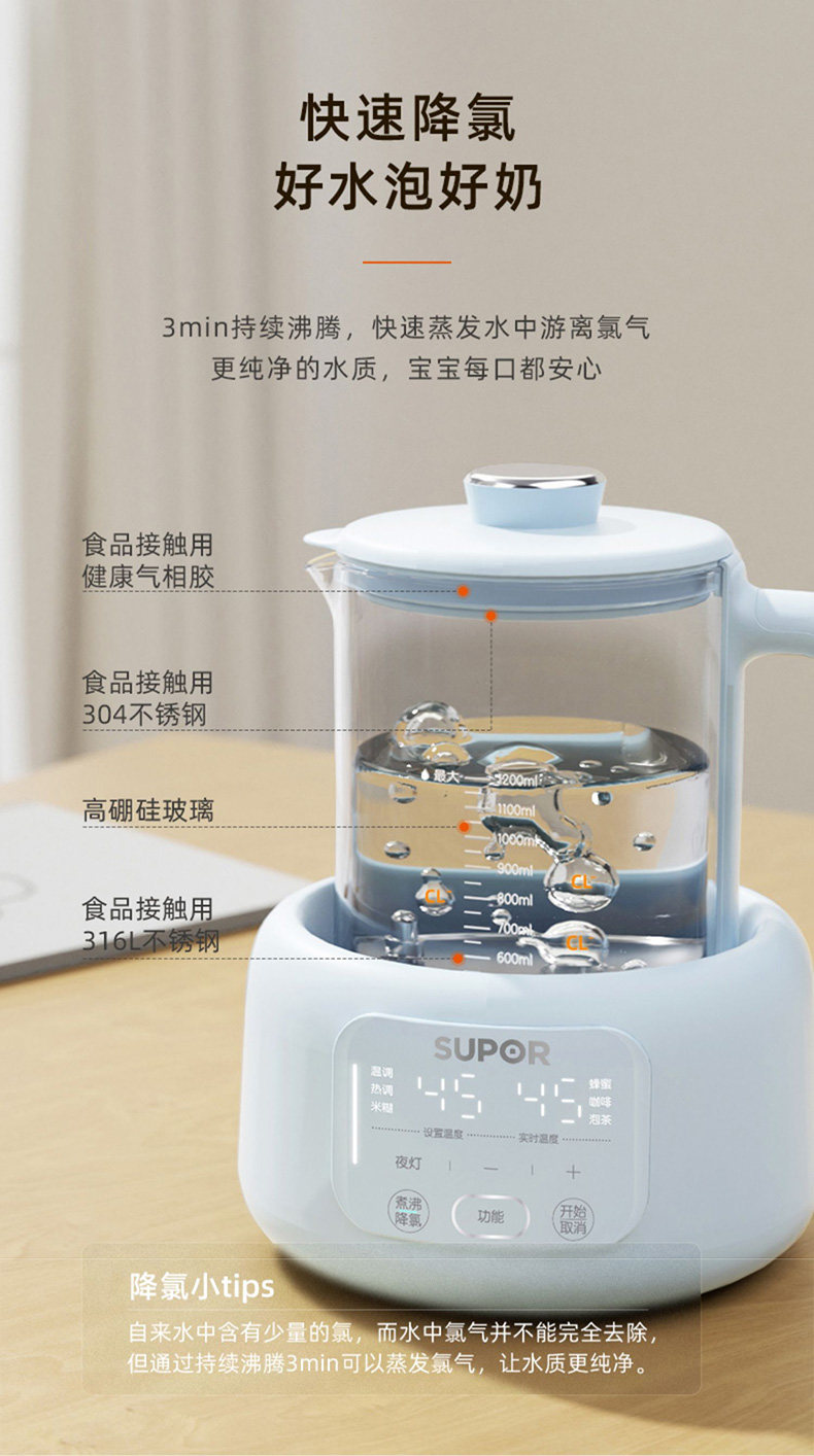 Supor Electric Kettle with Constant Temperature, Smart Hot Water Kettle for Home Use, New Model for Babies, Health-Preserving Kettle