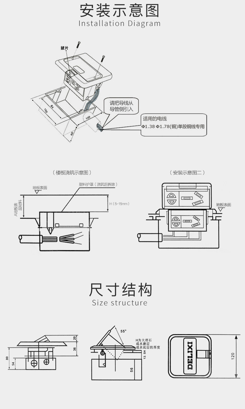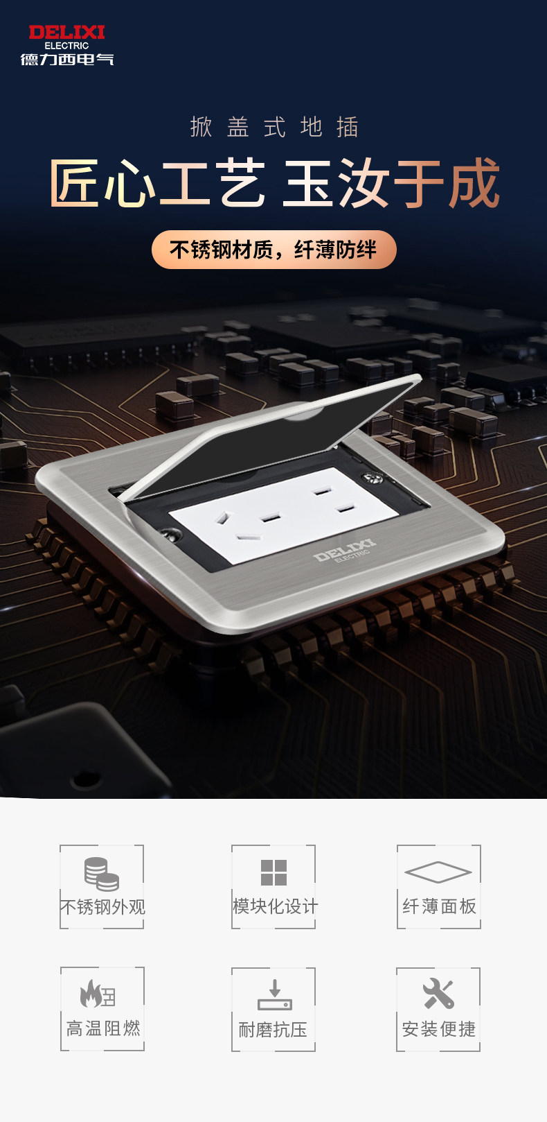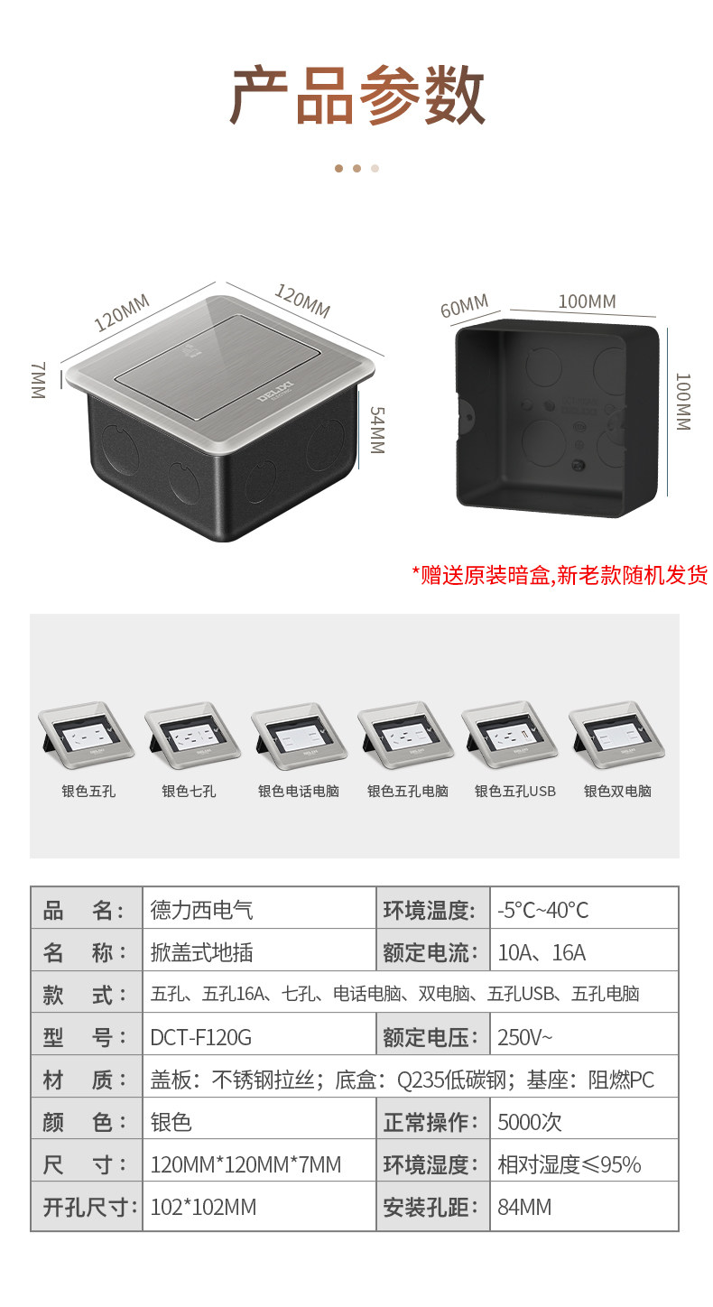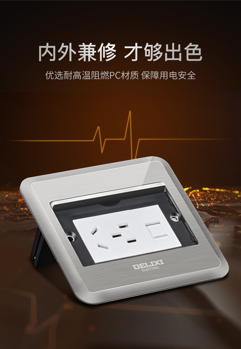 Delixi Ground Socket Invisible Embedded Ultra-Thin Hidden Floor Socket Stainless Steel Network Waterproof