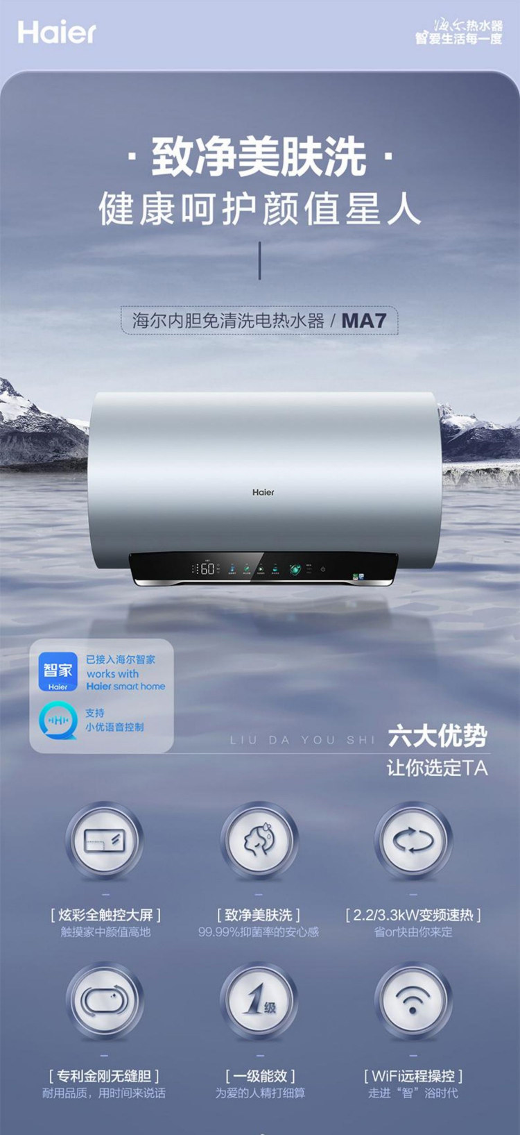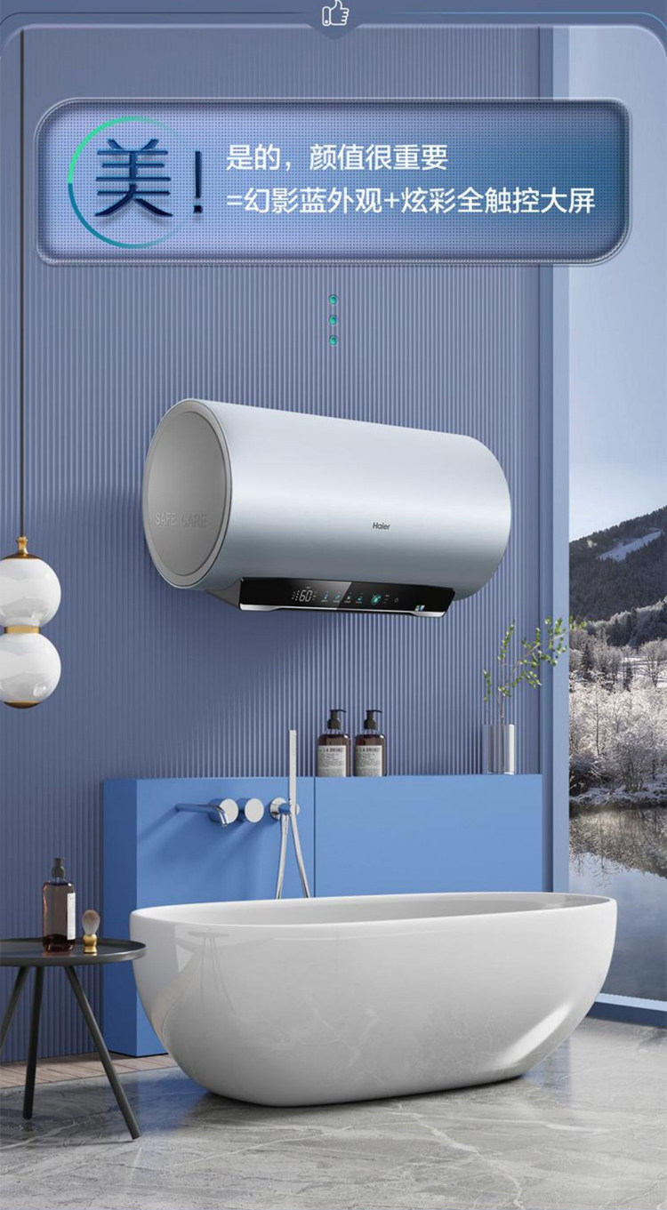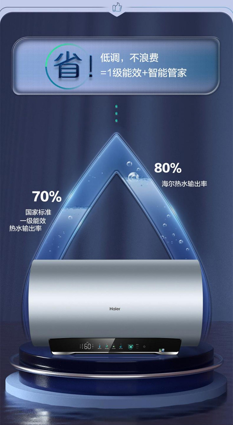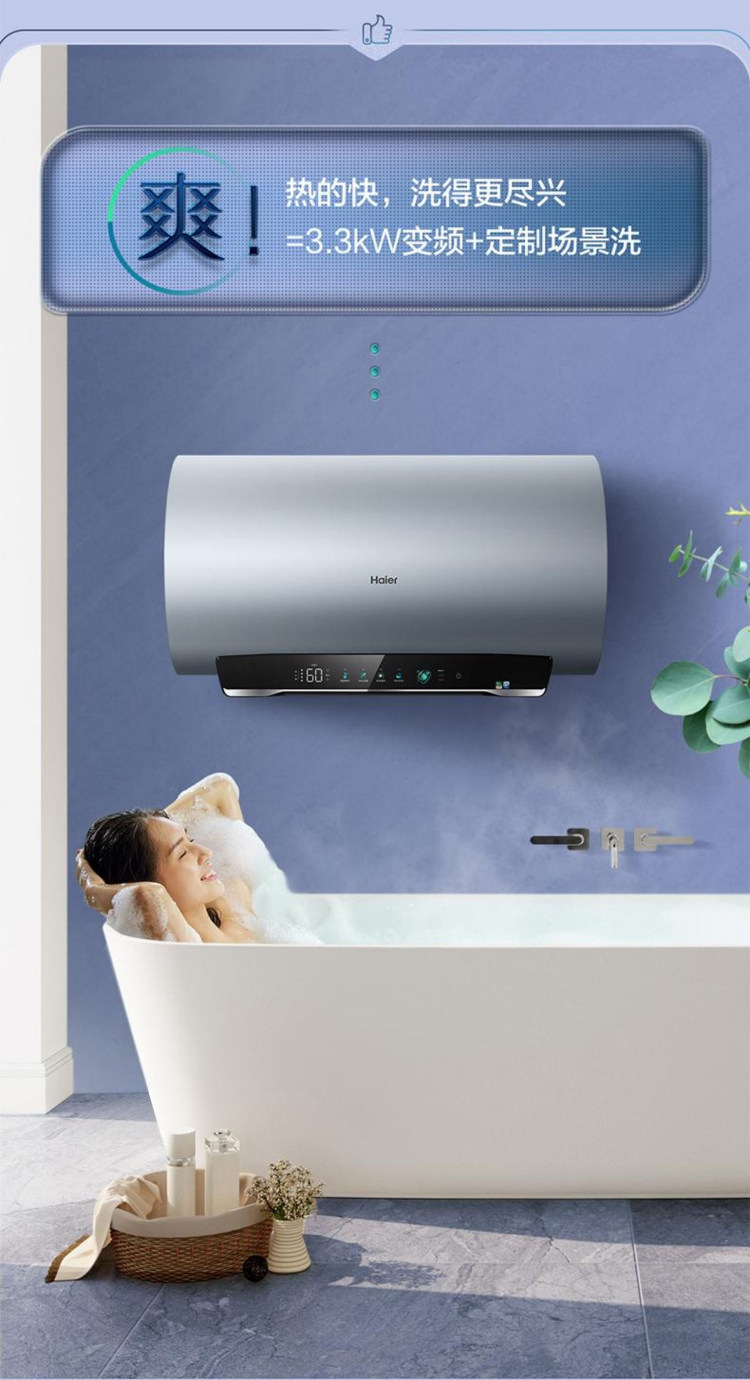 Haier Electric Water Heater for Home Bathroom Shower, Variable Frequency, Fast Heating, 60L/80L, First-Class Energy Efficiency, Ma7, Large Capacity