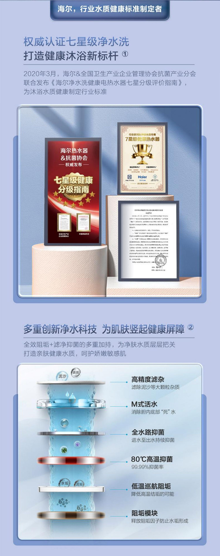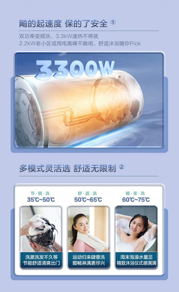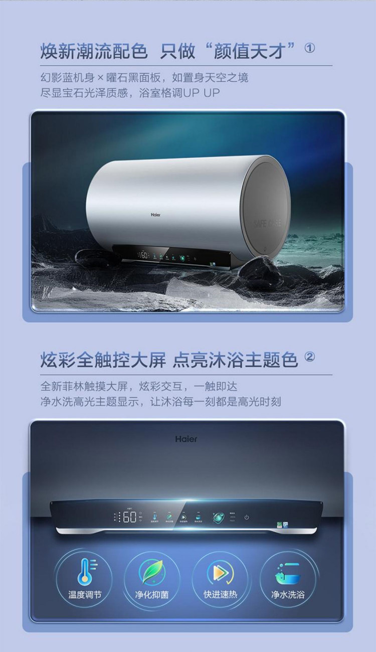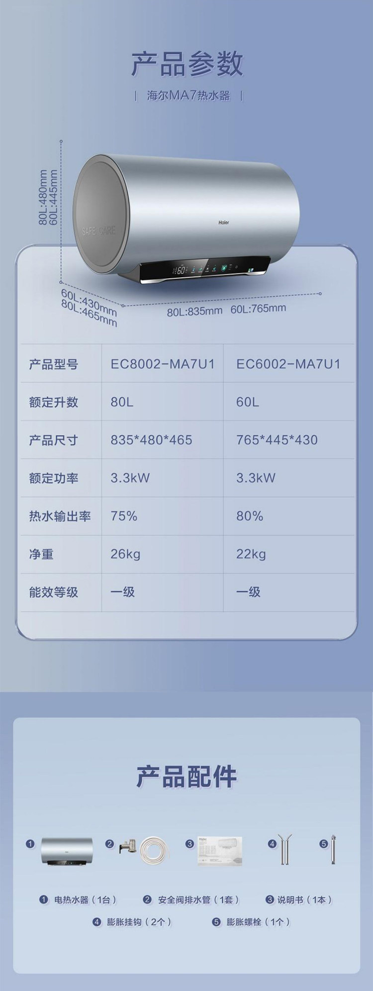 Haier Electric Water Heater for Home Bathroom Shower, Variable Frequency, Fast Heating, 60L/80L, First-Class Energy Efficiency, Ma7, Large Capacity